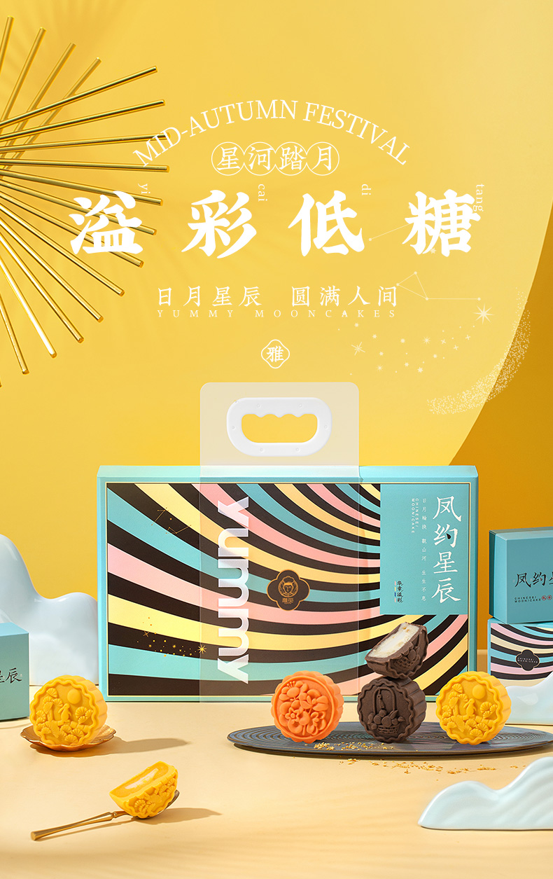 【低糖月饼 健康选择】雅觅2025 星河踏月 凤约星辰低糖月饼礼盒 配料干净 入口无负担 皮薄馅足 造型精致 送礼佳品