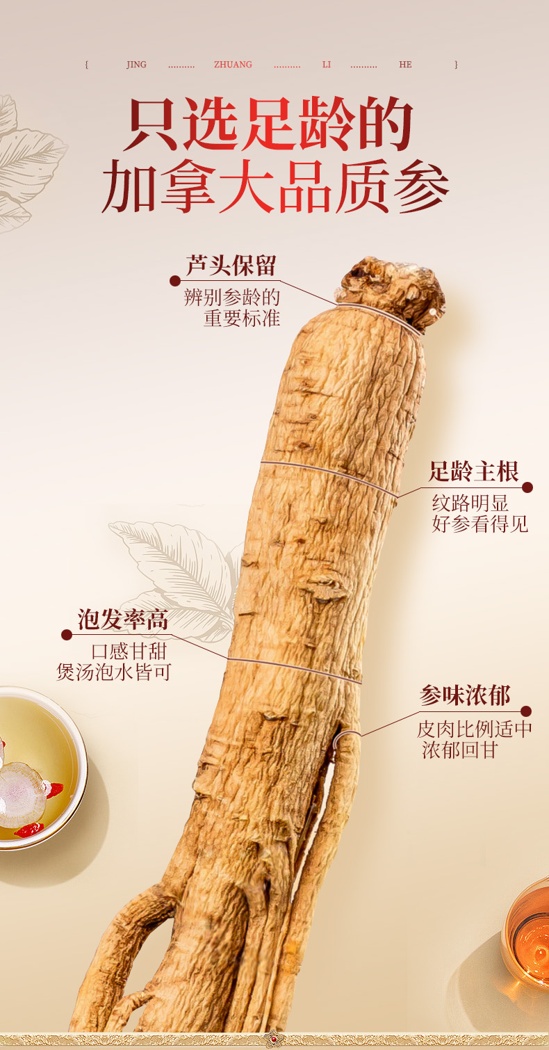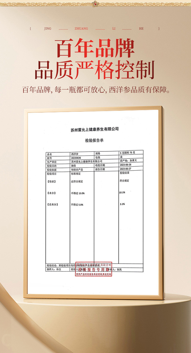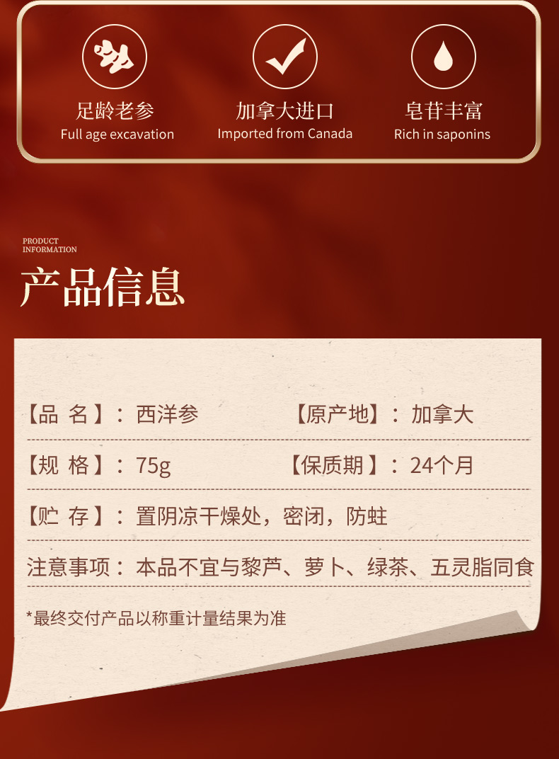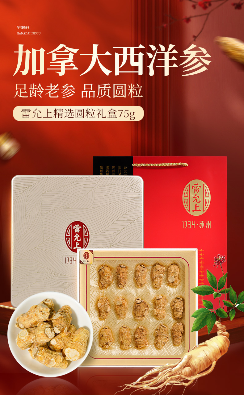 雷允上直营|加拿大进口西洋参段75g/礼盒(5g圆粒)进口加拿大品质人参皂苷丰富