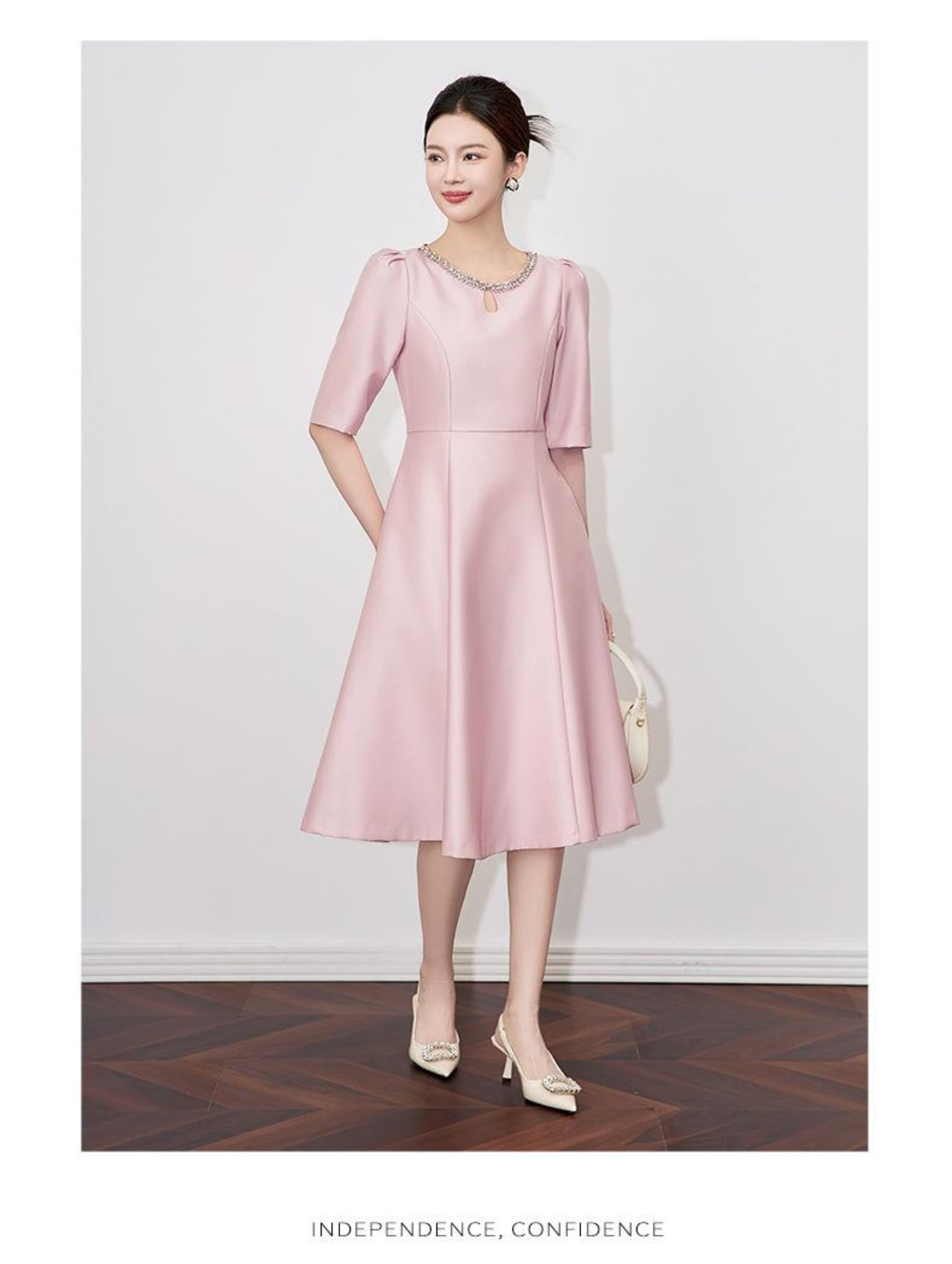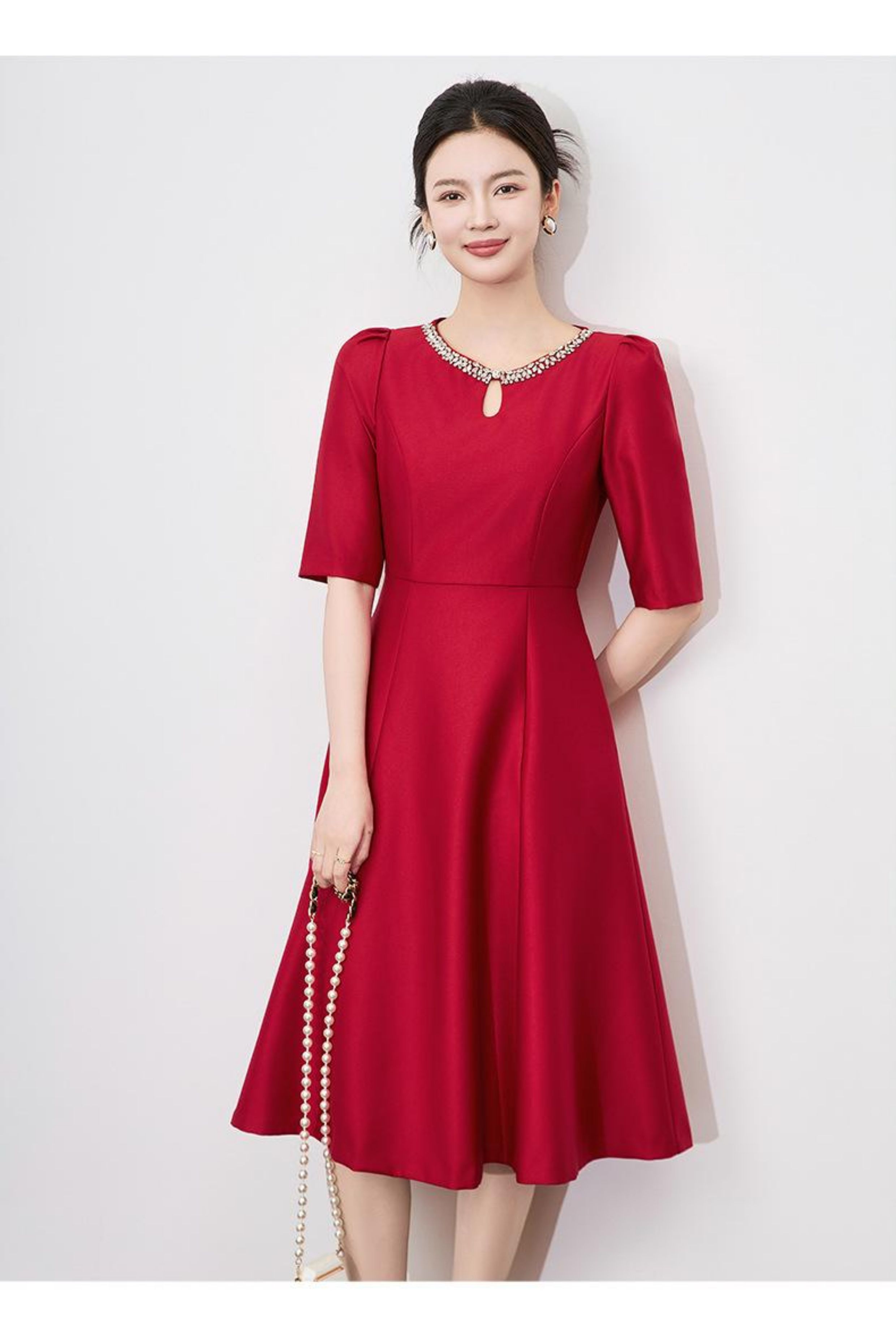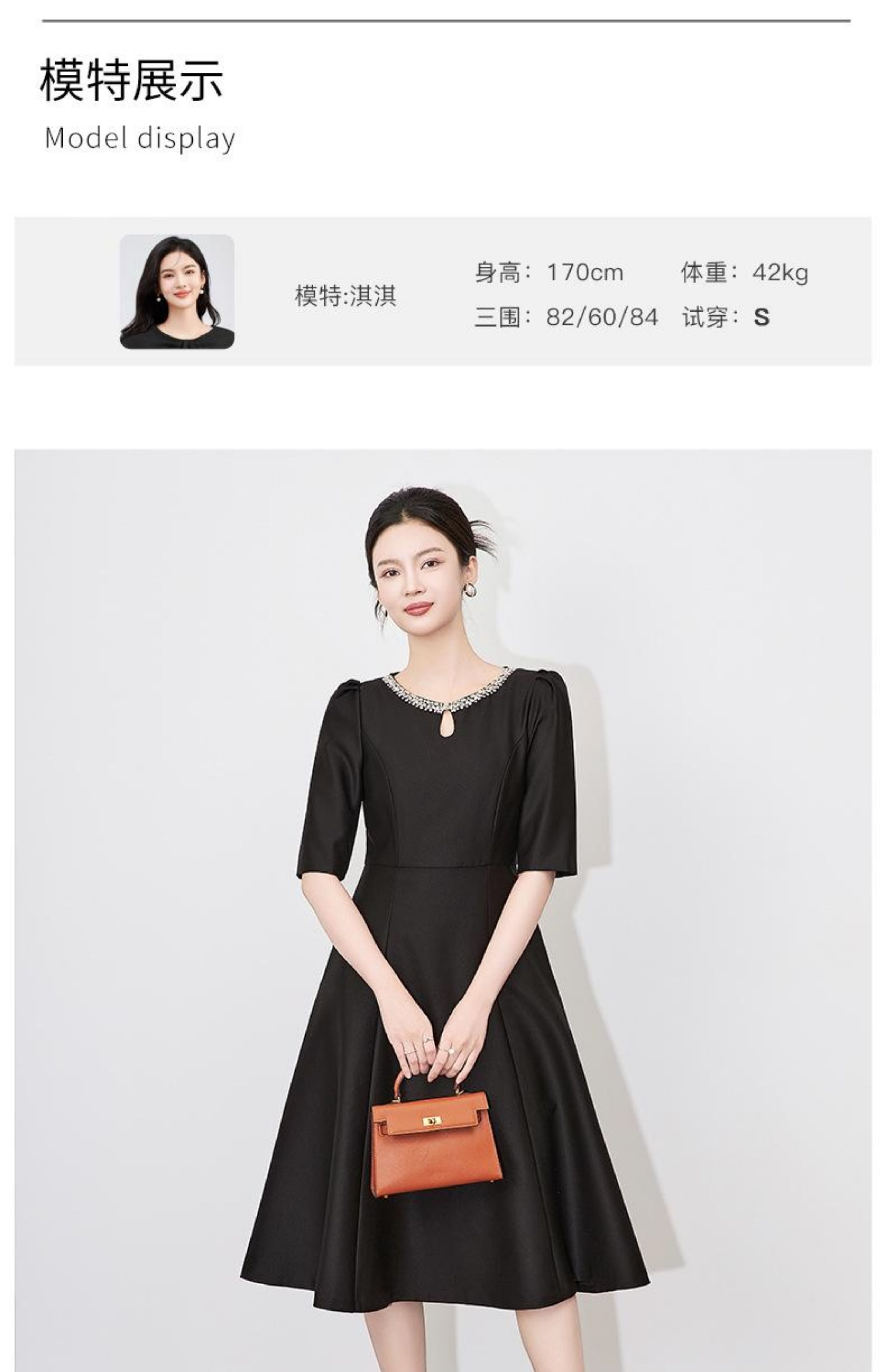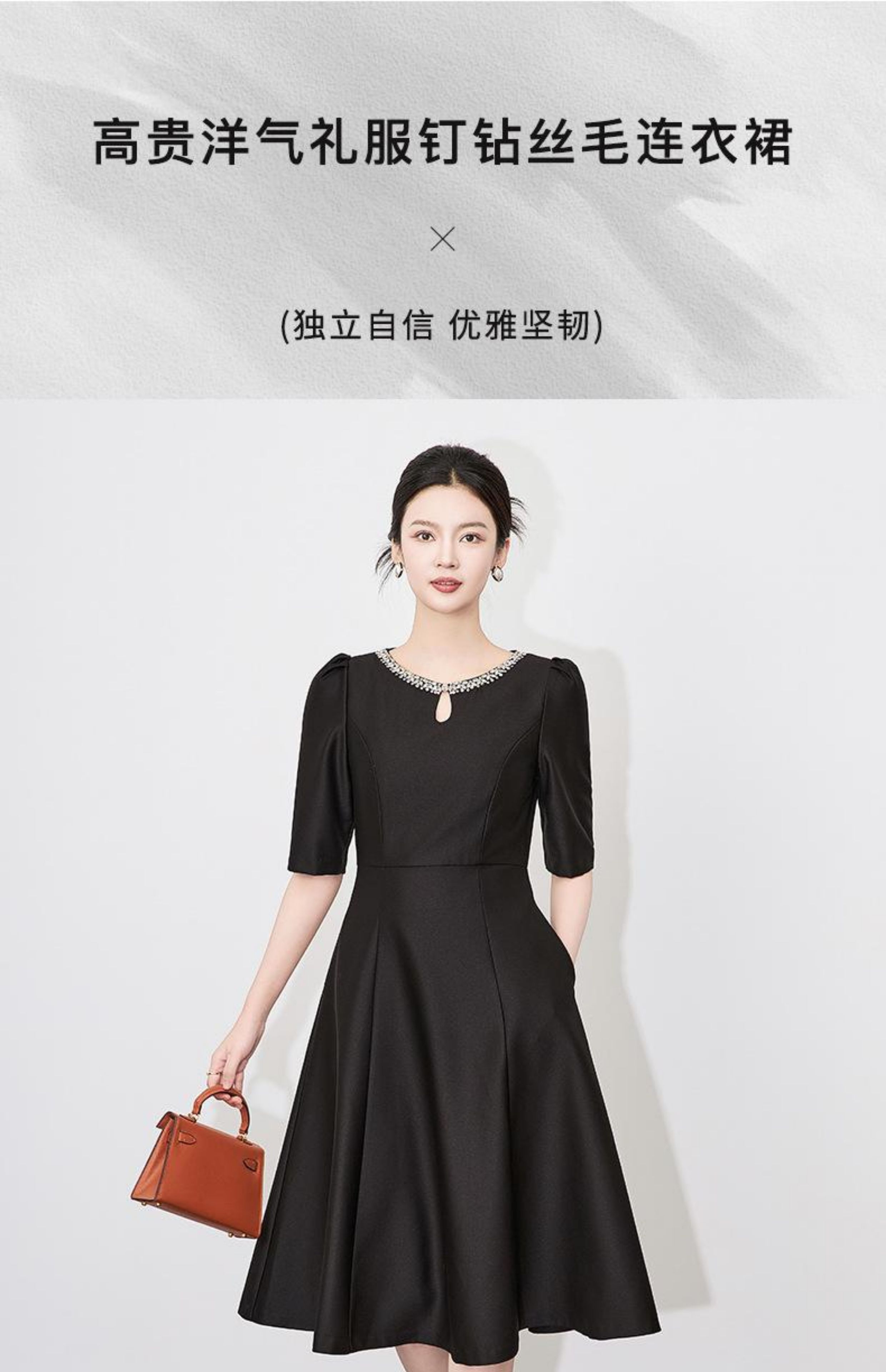 【高货wl】全新升级【铂金会员330/天猫439/差价109】(22057)洛诗琳新款春夏时尚高品质气质礼服裙钉钻圆领名媛连衣裙