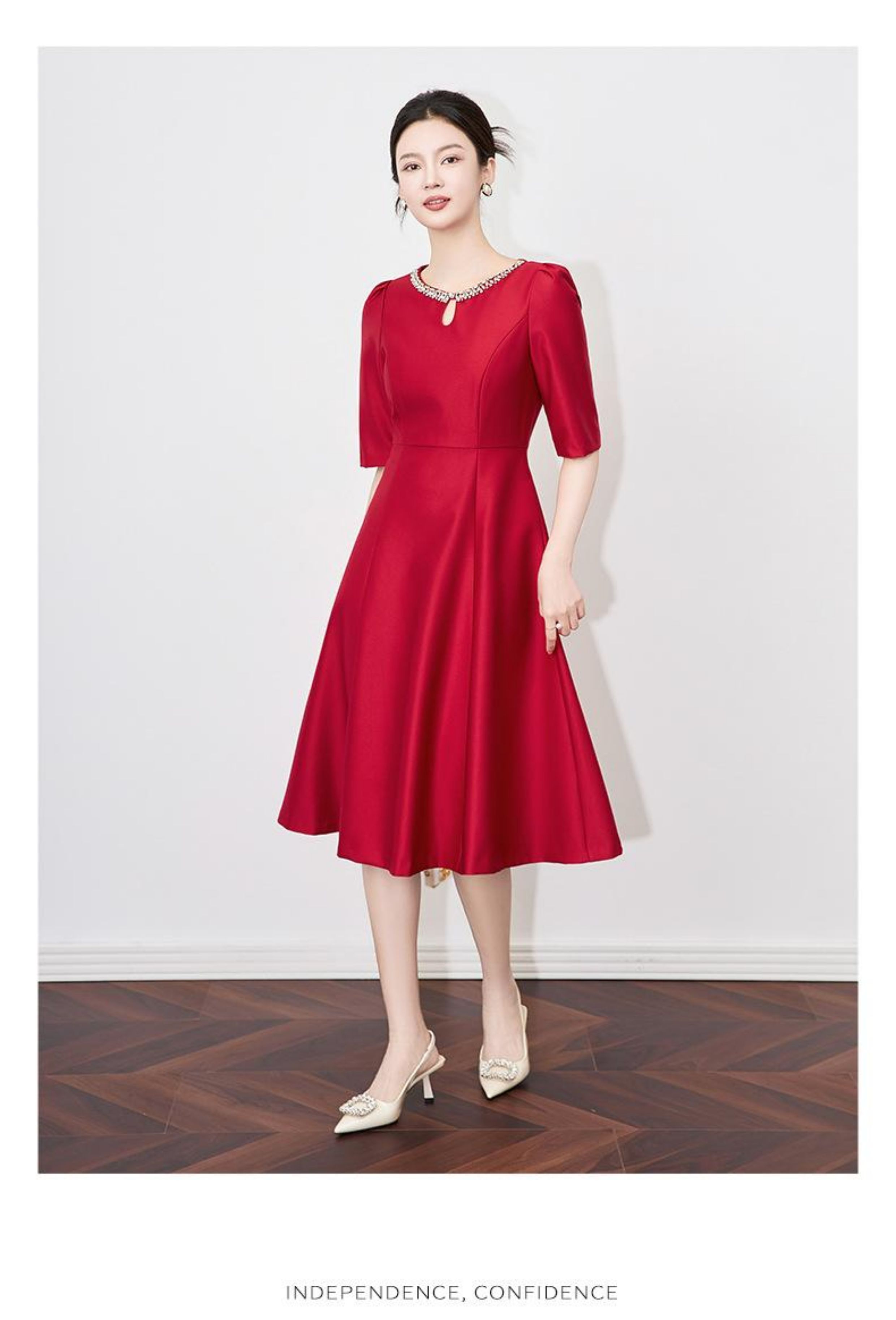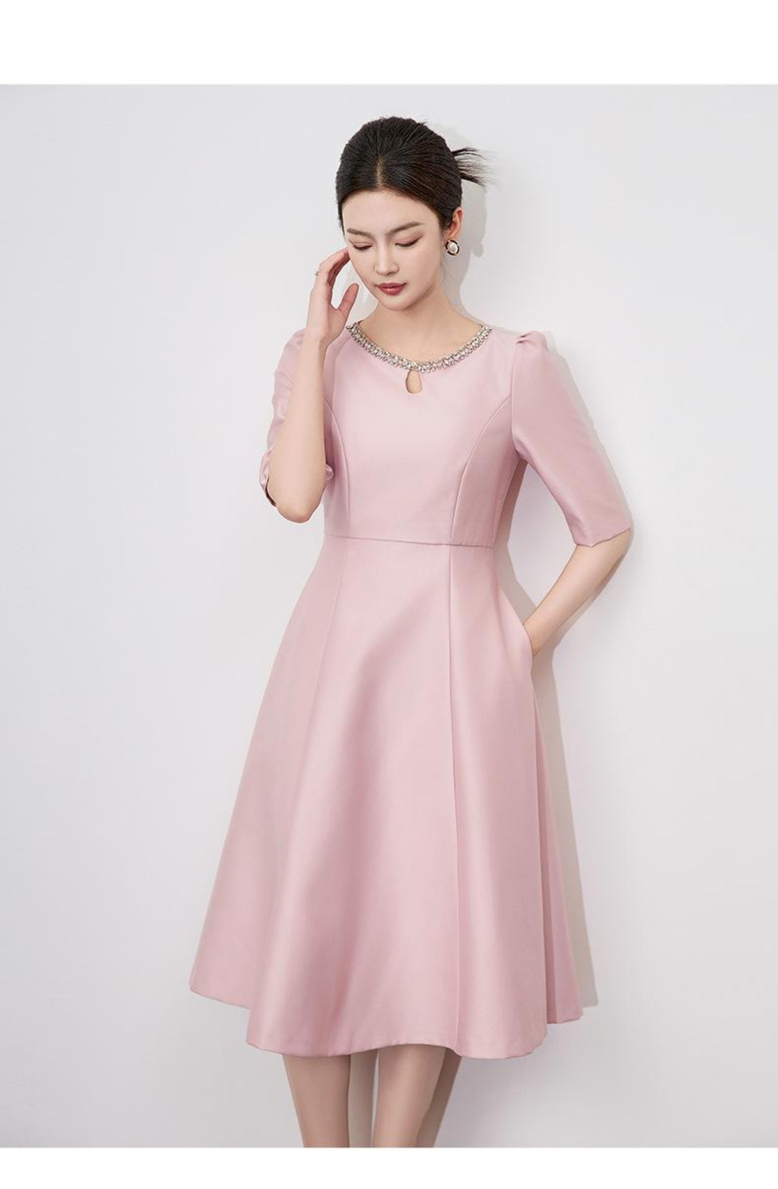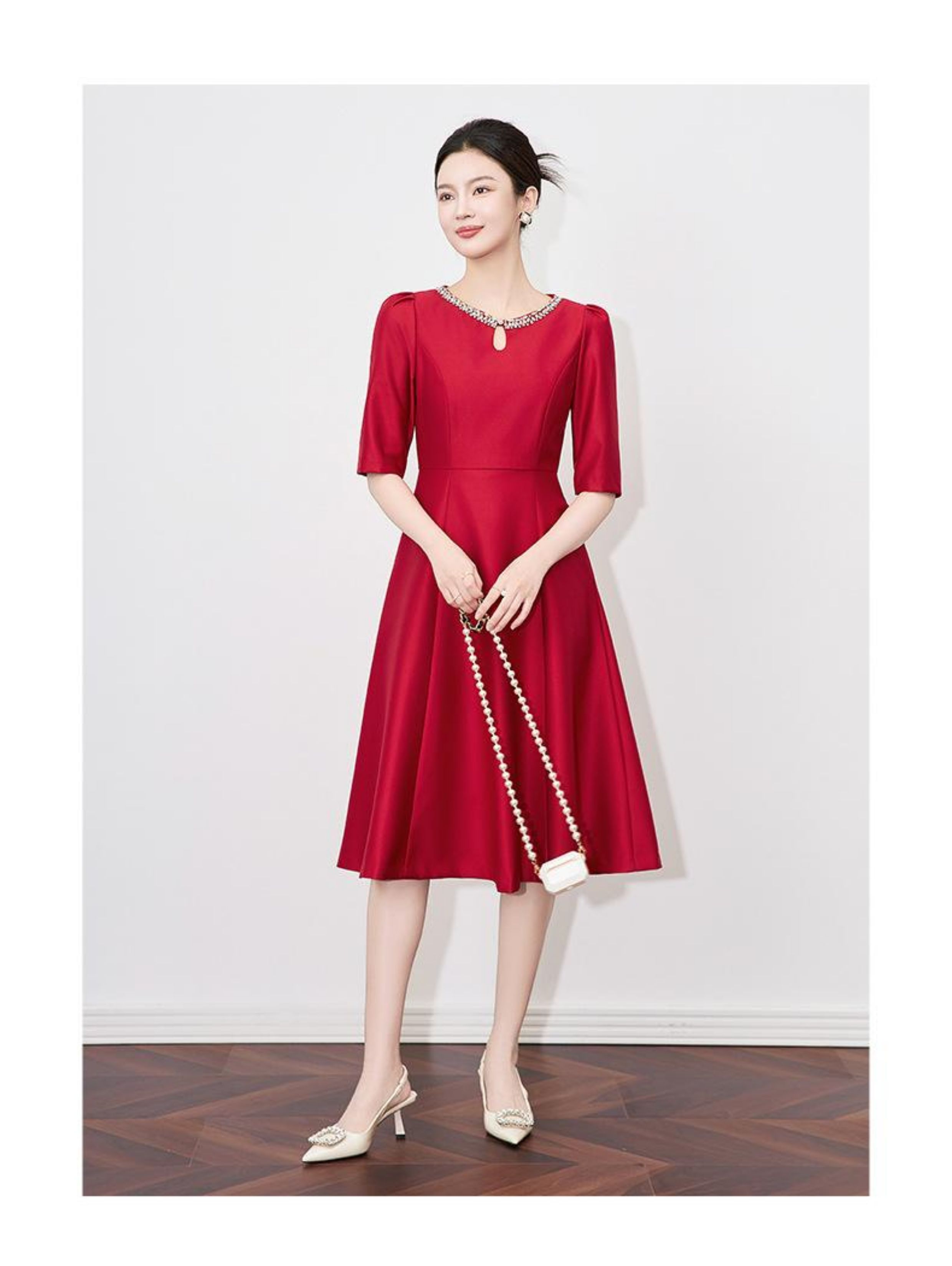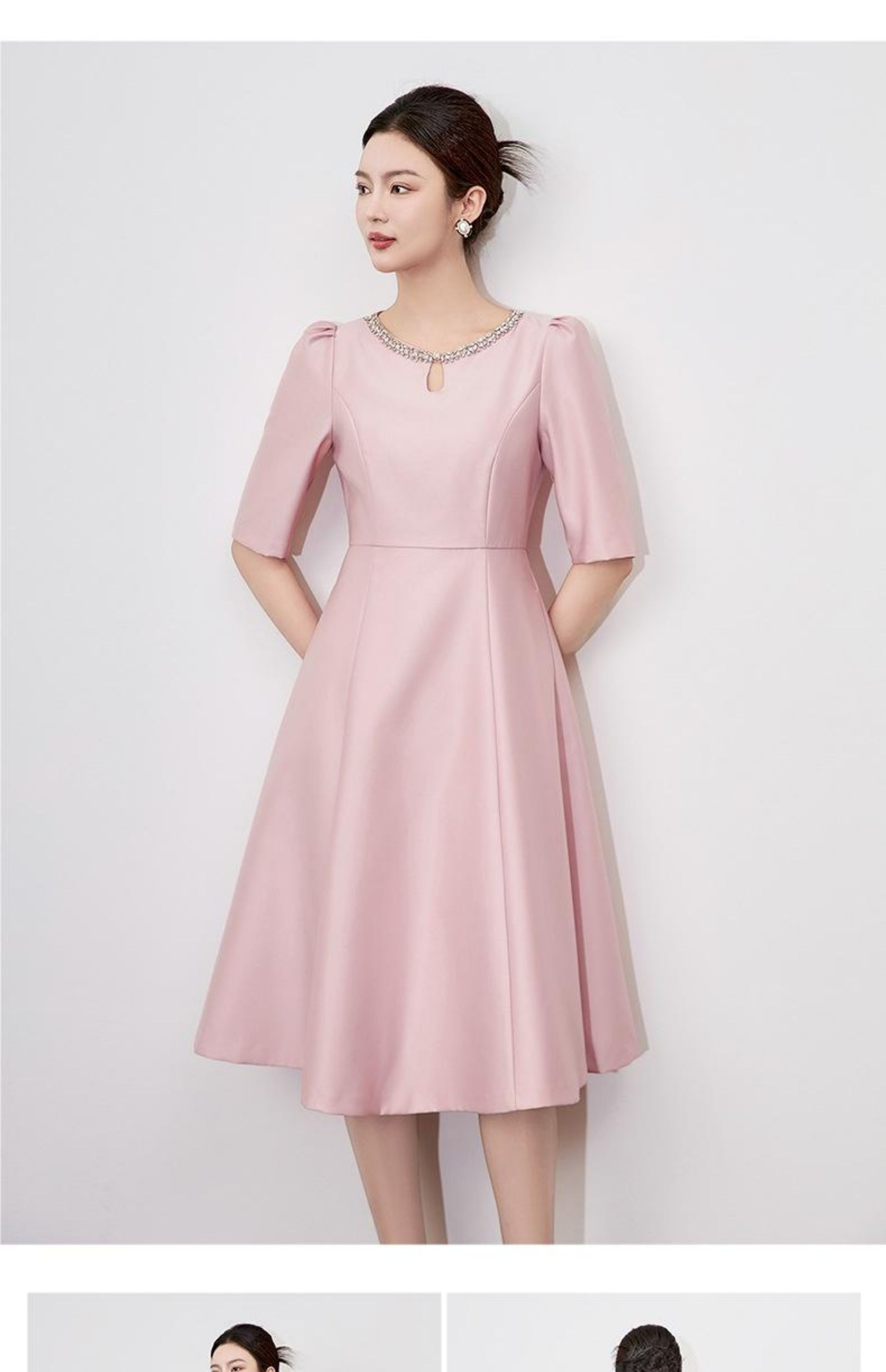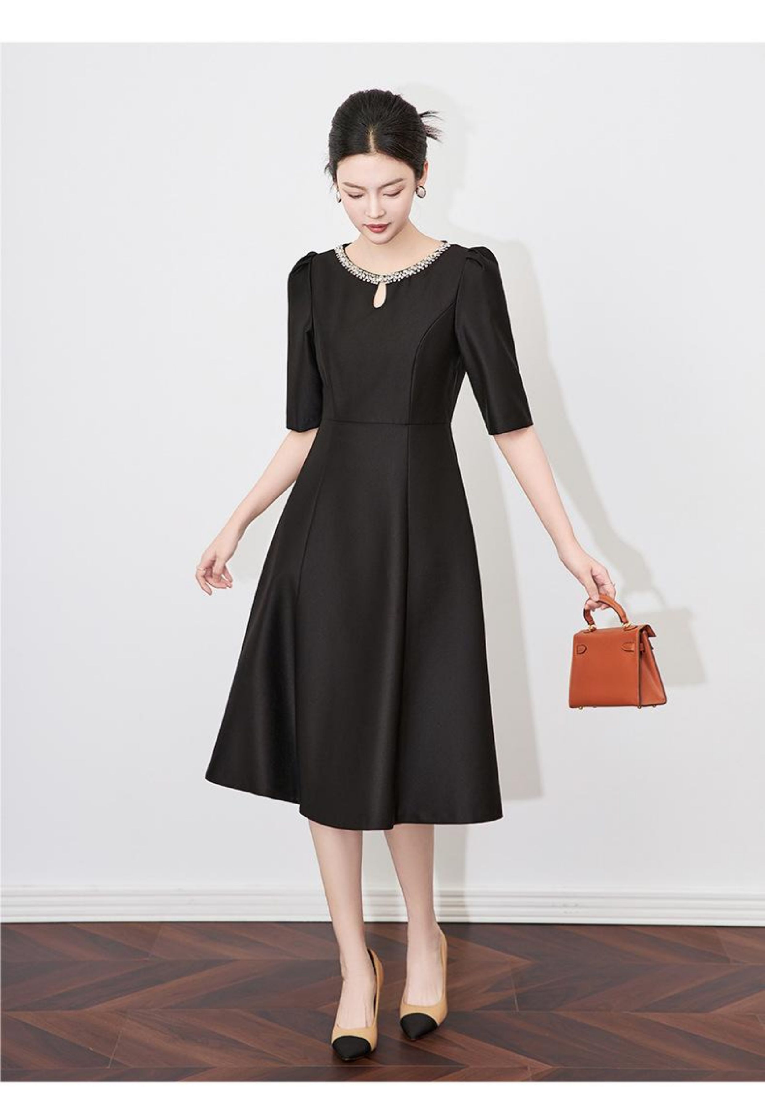 【高货wl】全新升级【铂金会员330/天猫439/差价109】(22057)洛诗琳新款春夏时尚高品质气质礼服裙钉钻圆领名媛连衣裙
