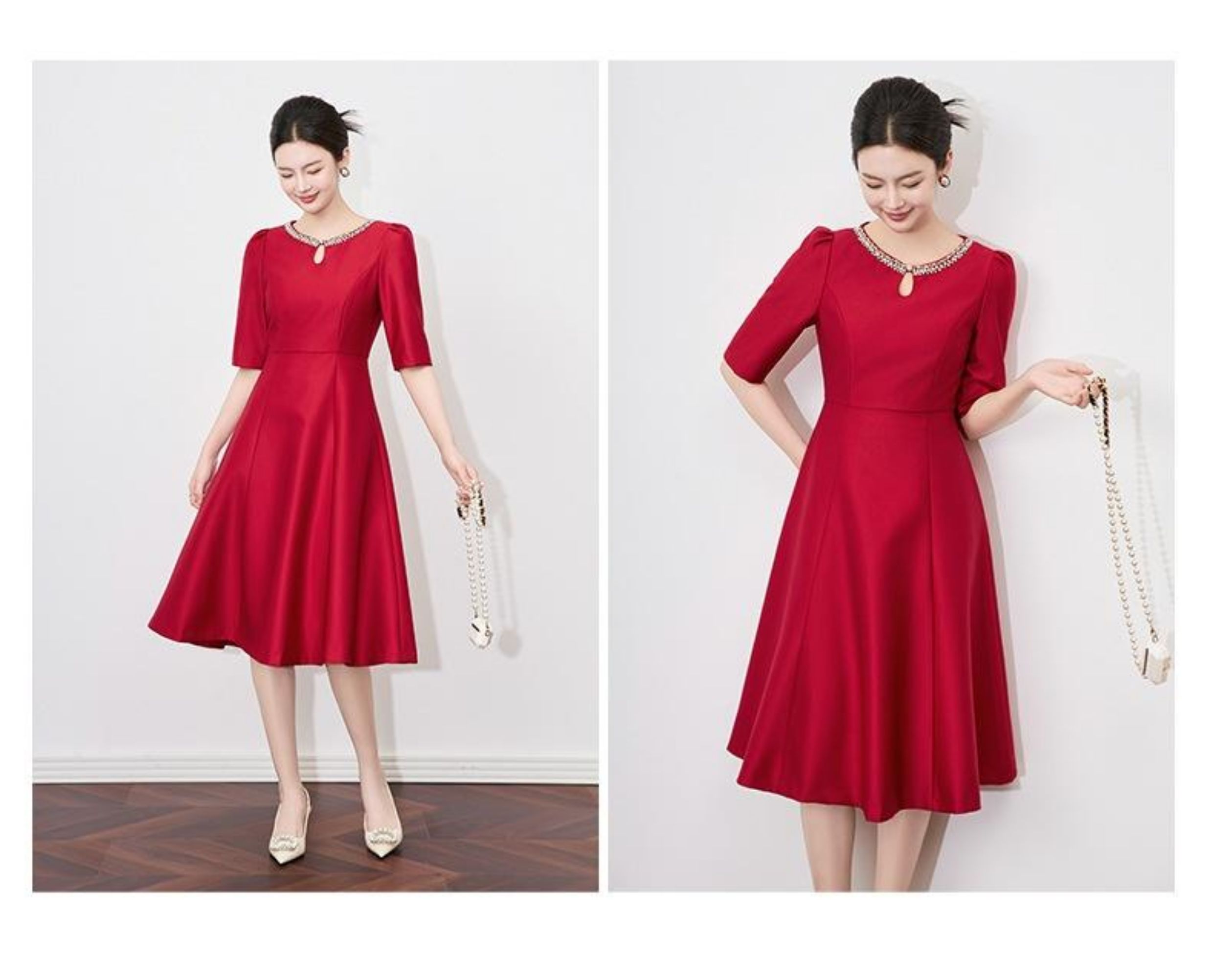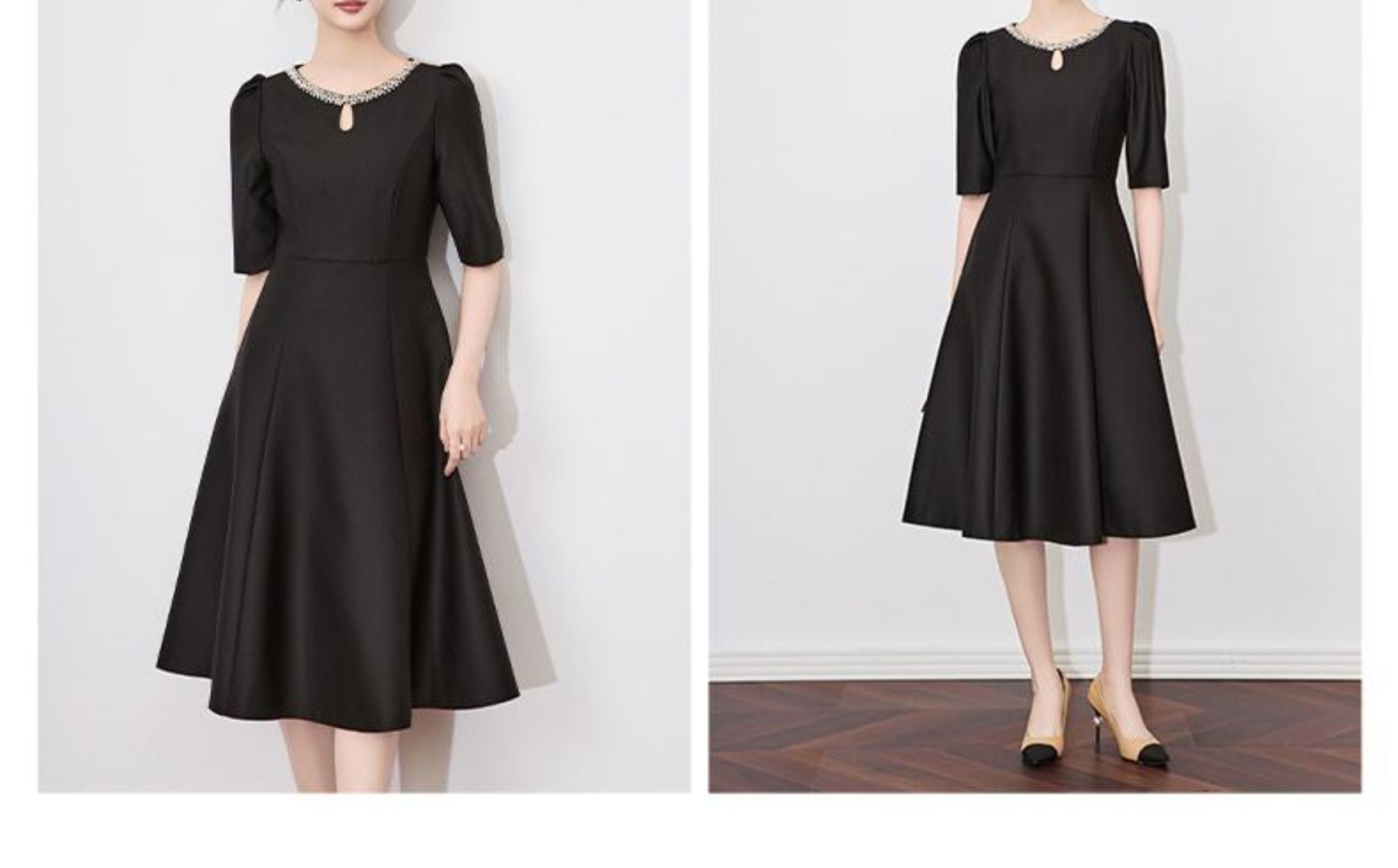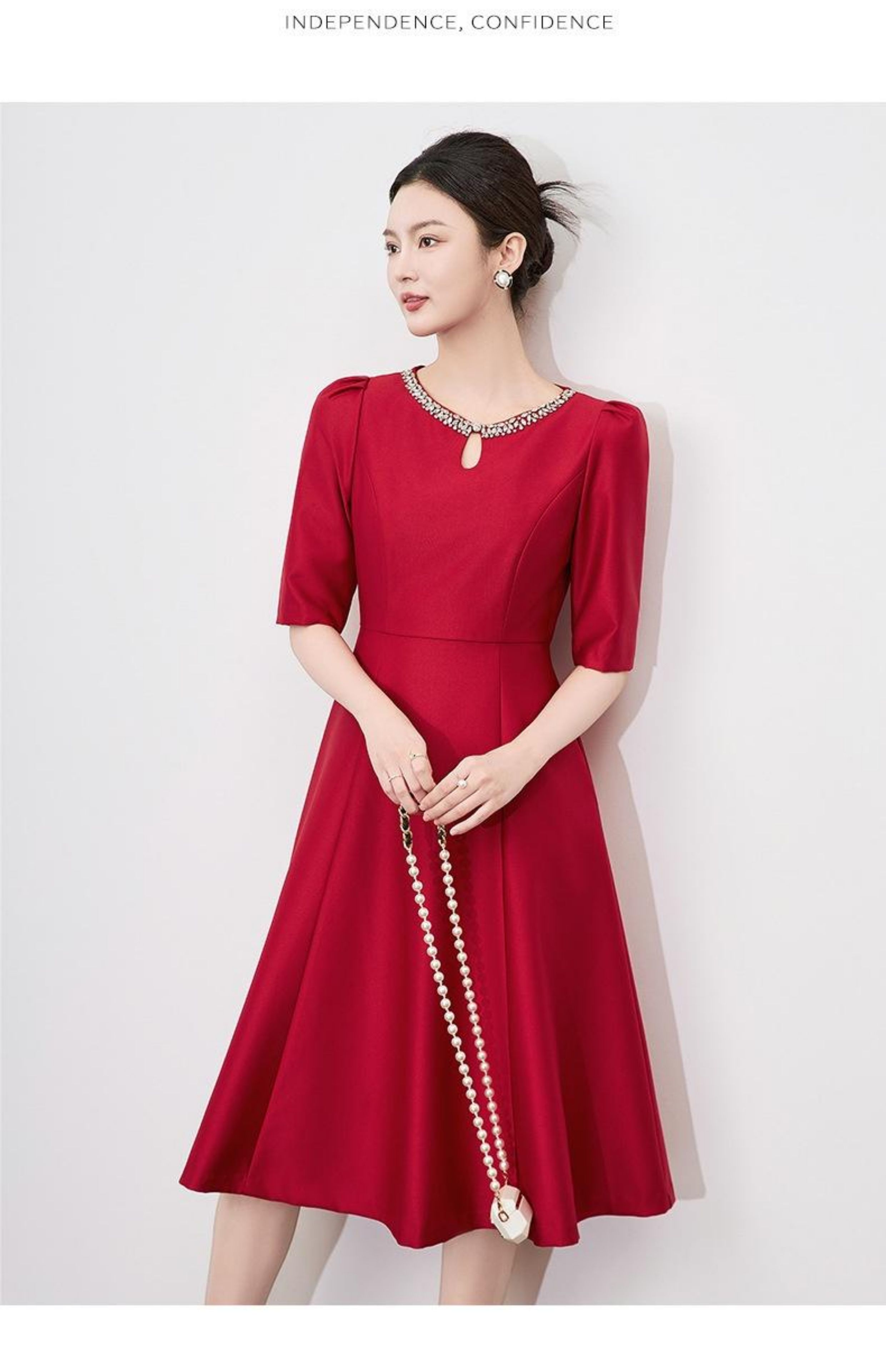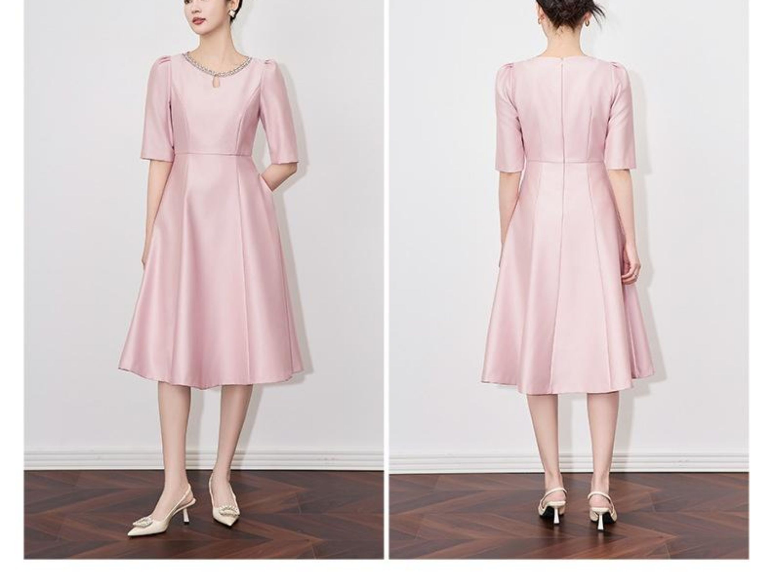 【高货wl】全新升级【铂金会员330/天猫439/差价109】(22057)洛诗琳新款春夏时尚高品质气质礼服裙钉钻圆领名媛连衣裙