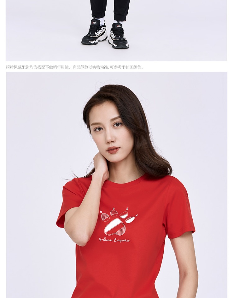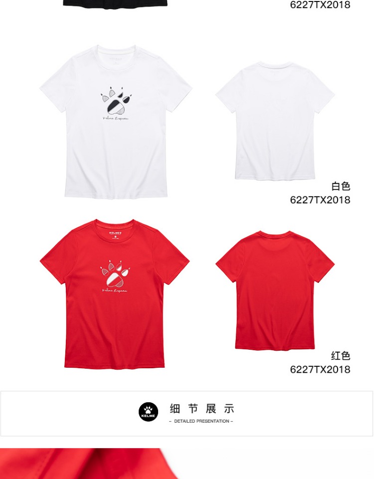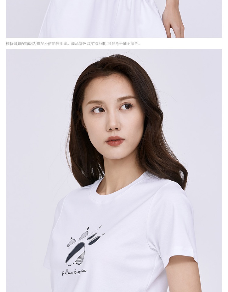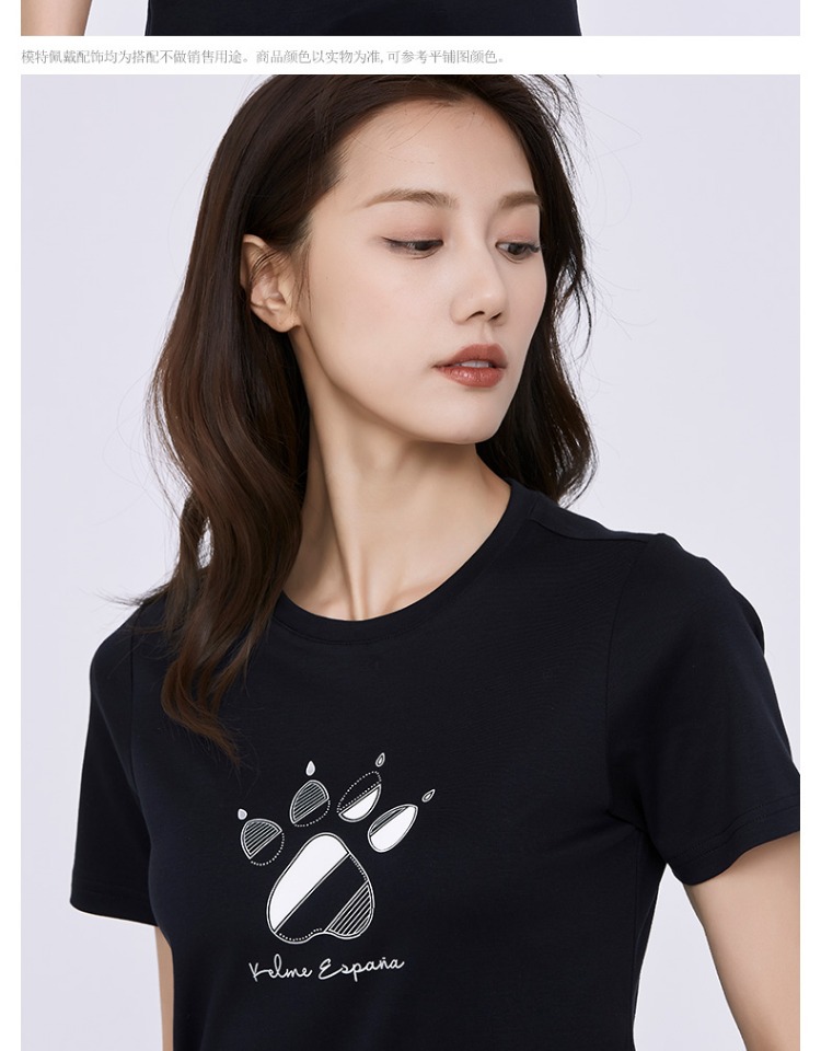 卡尔美短袖女新款夏季品牌LOGO休闲运动时尚透气纯棉T恤女款