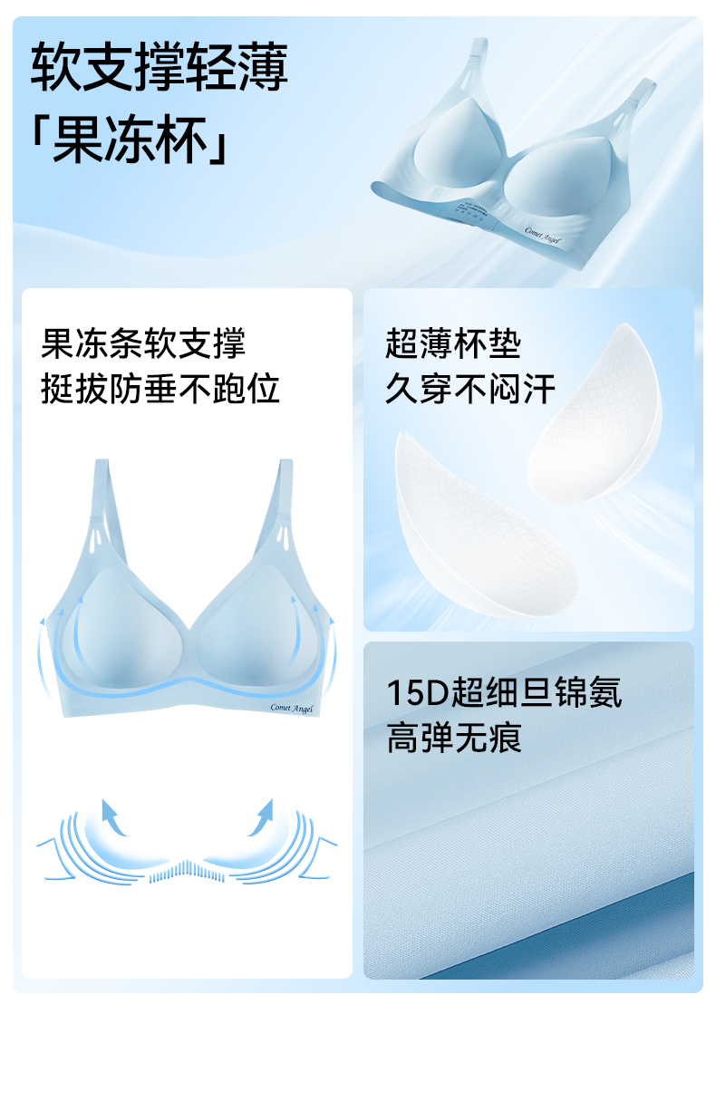 香港【彗星天使】15D液态锦氨隐形排扣果冻文胸大胸显小凉皮内衣2882#