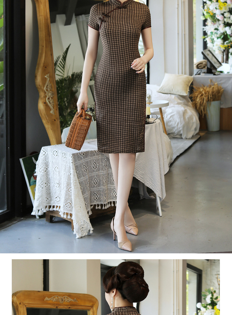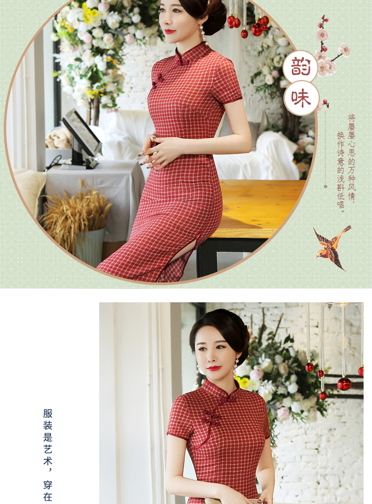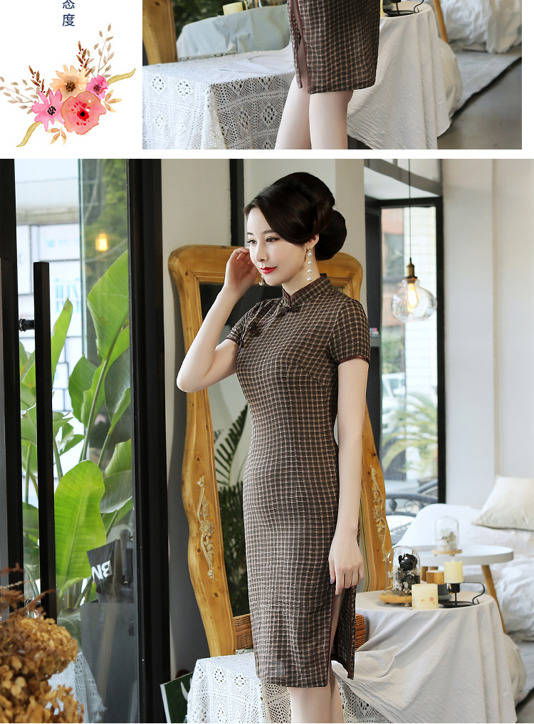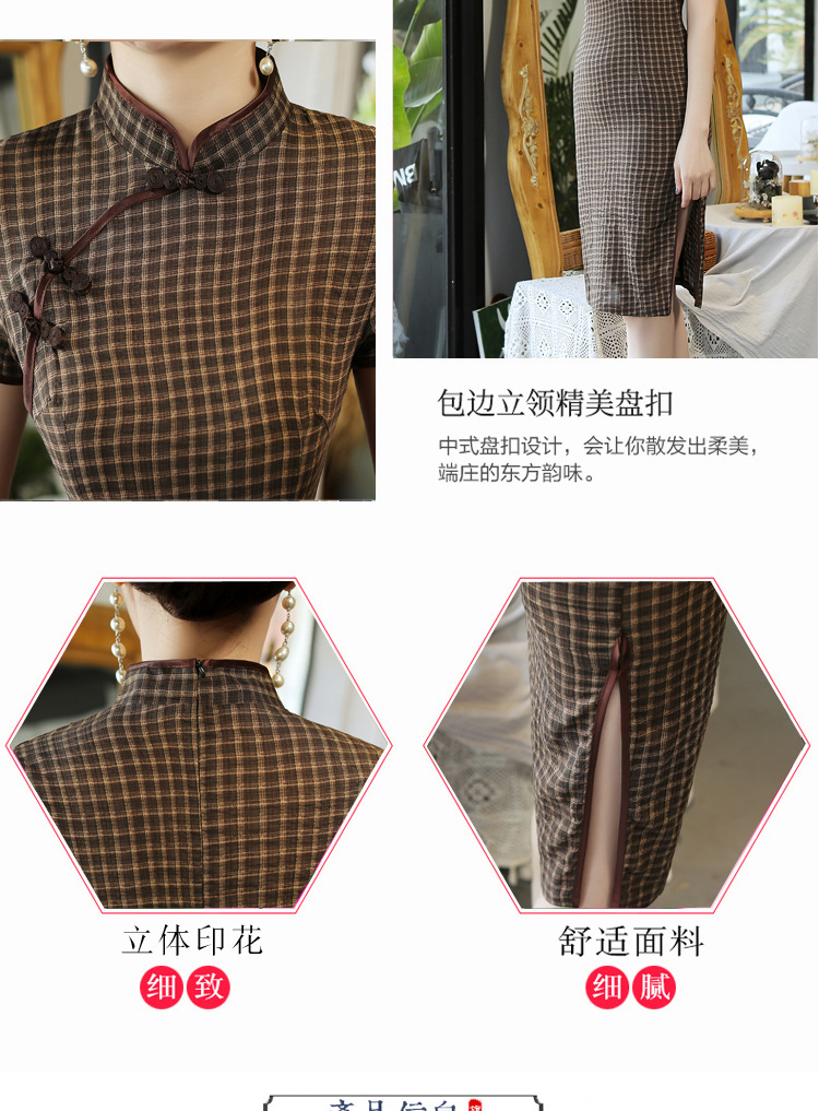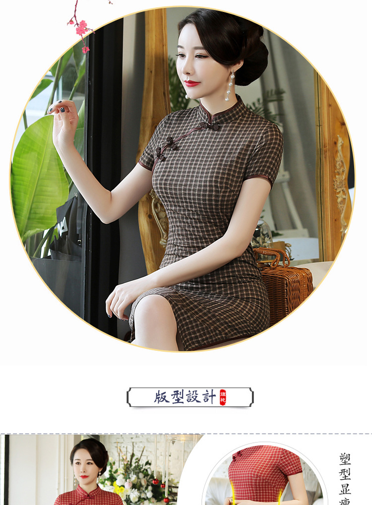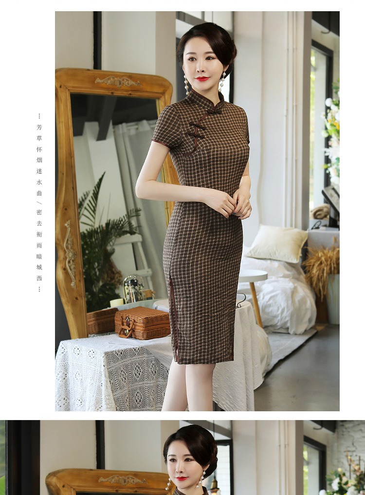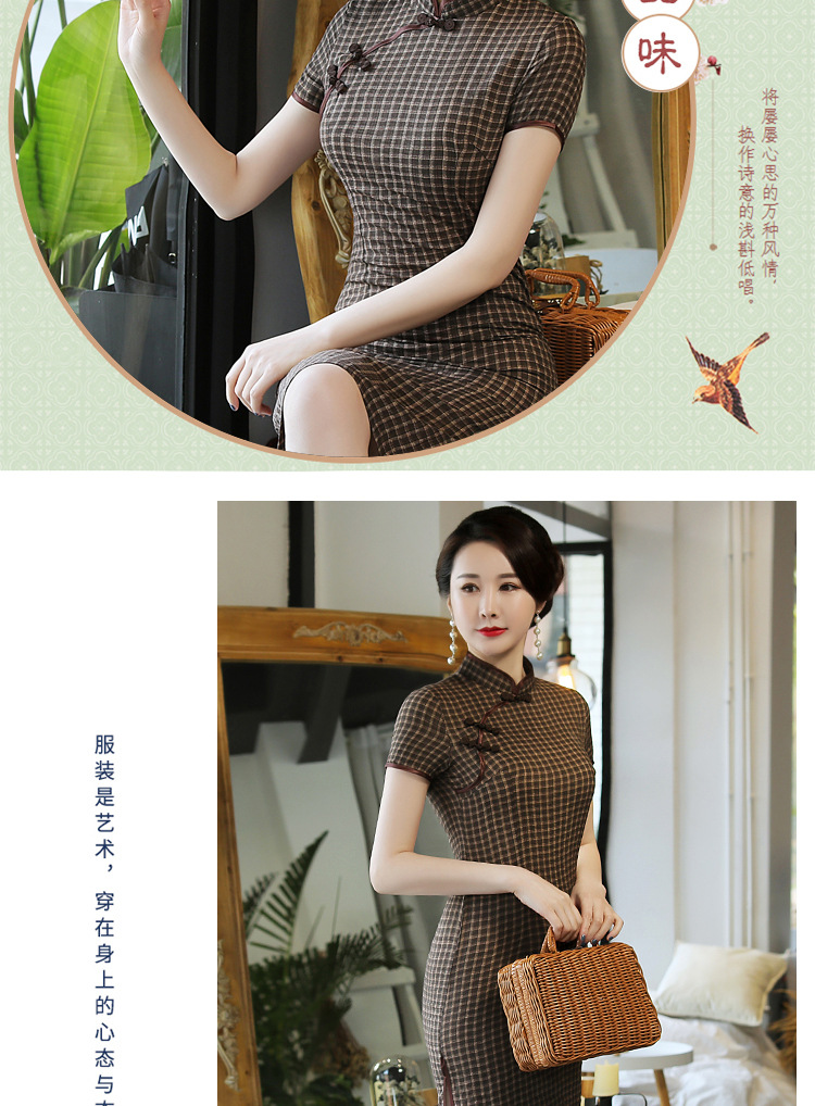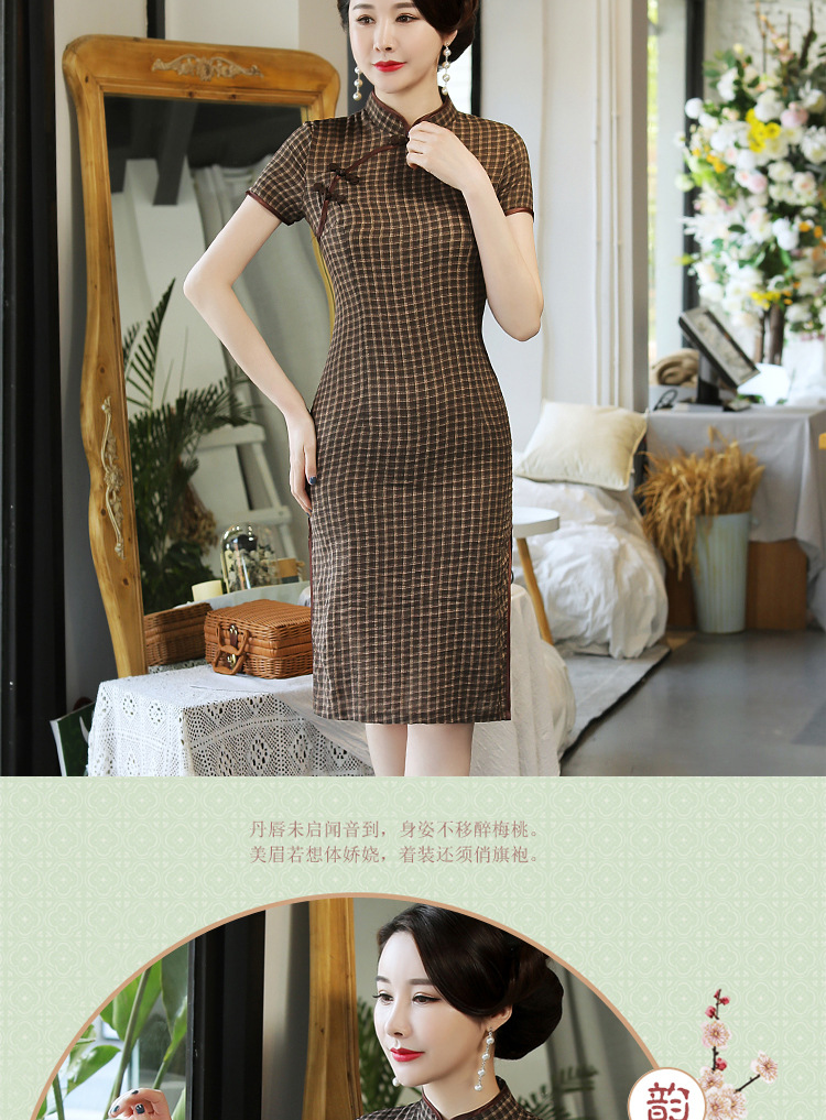 MQ-18Q327夏新款弹力格子中长款民国风改良旗袍YY