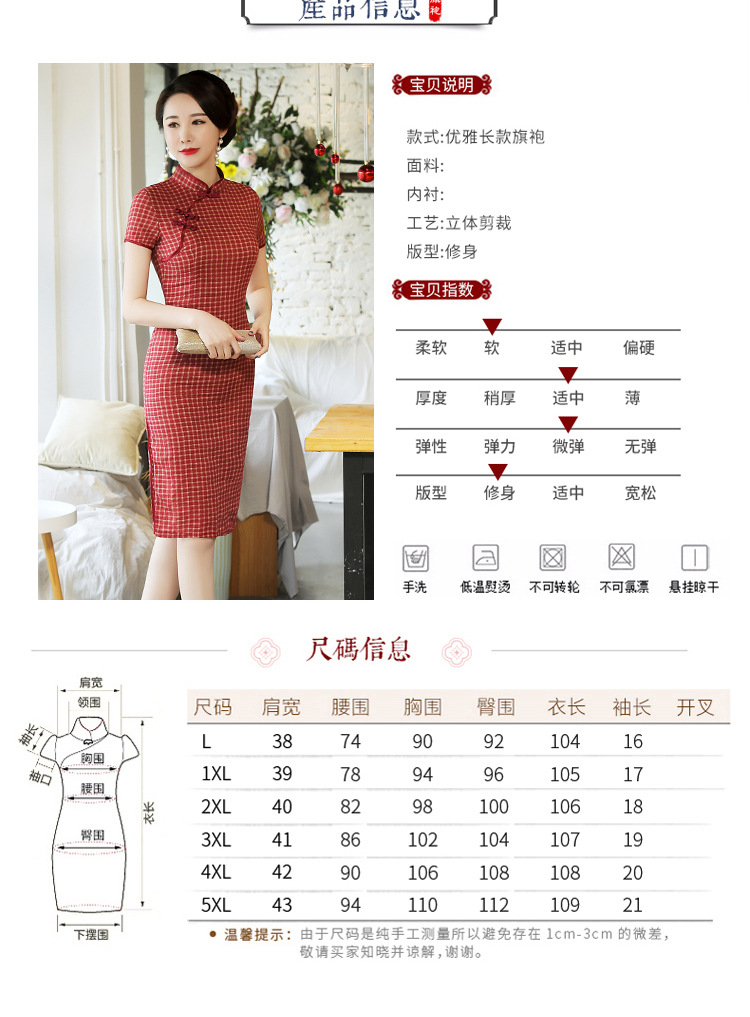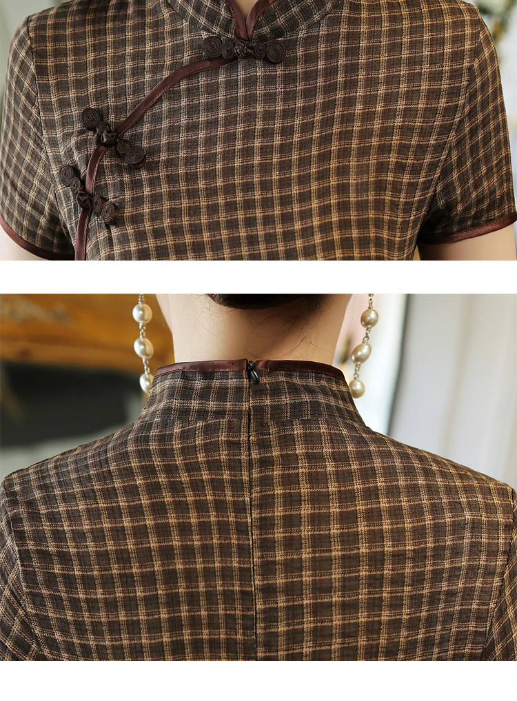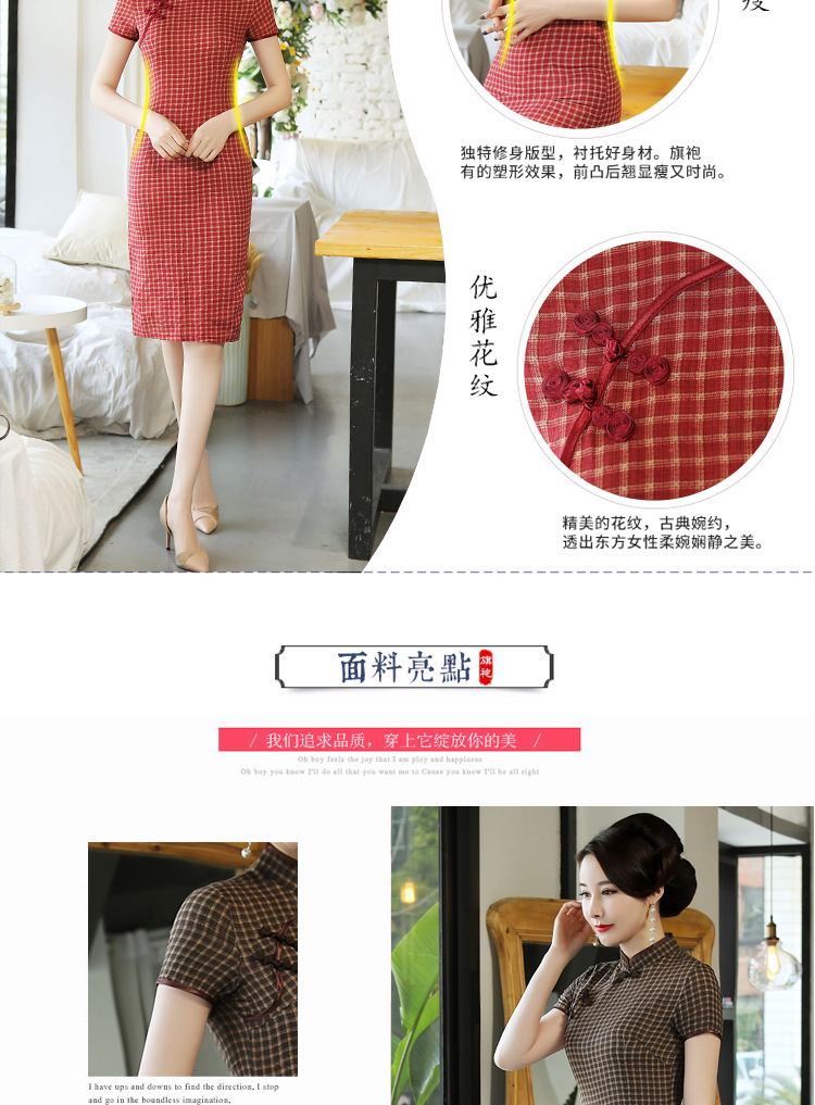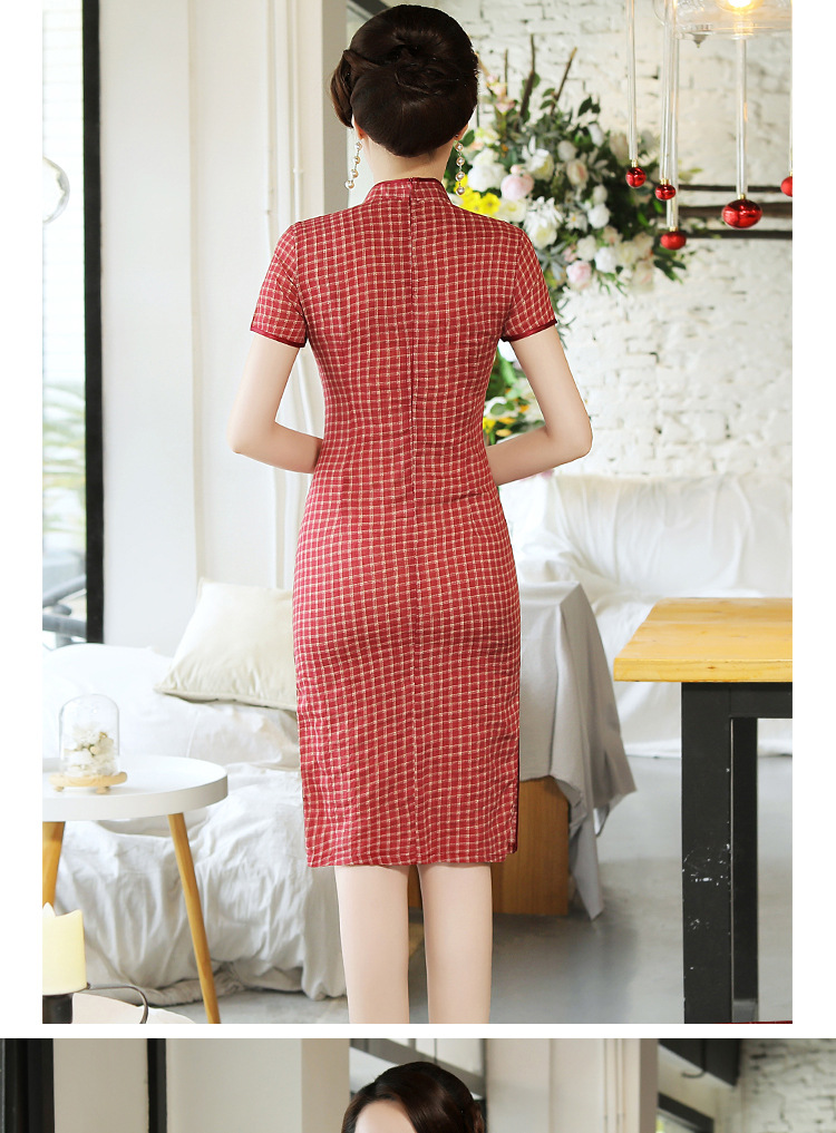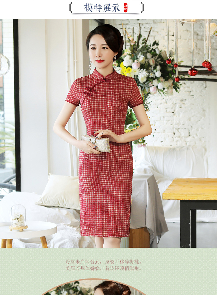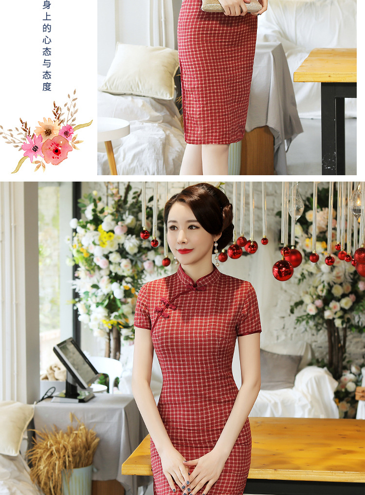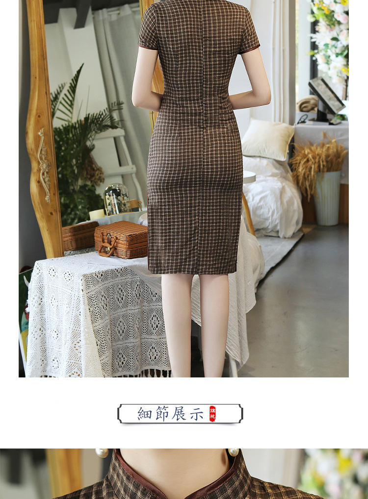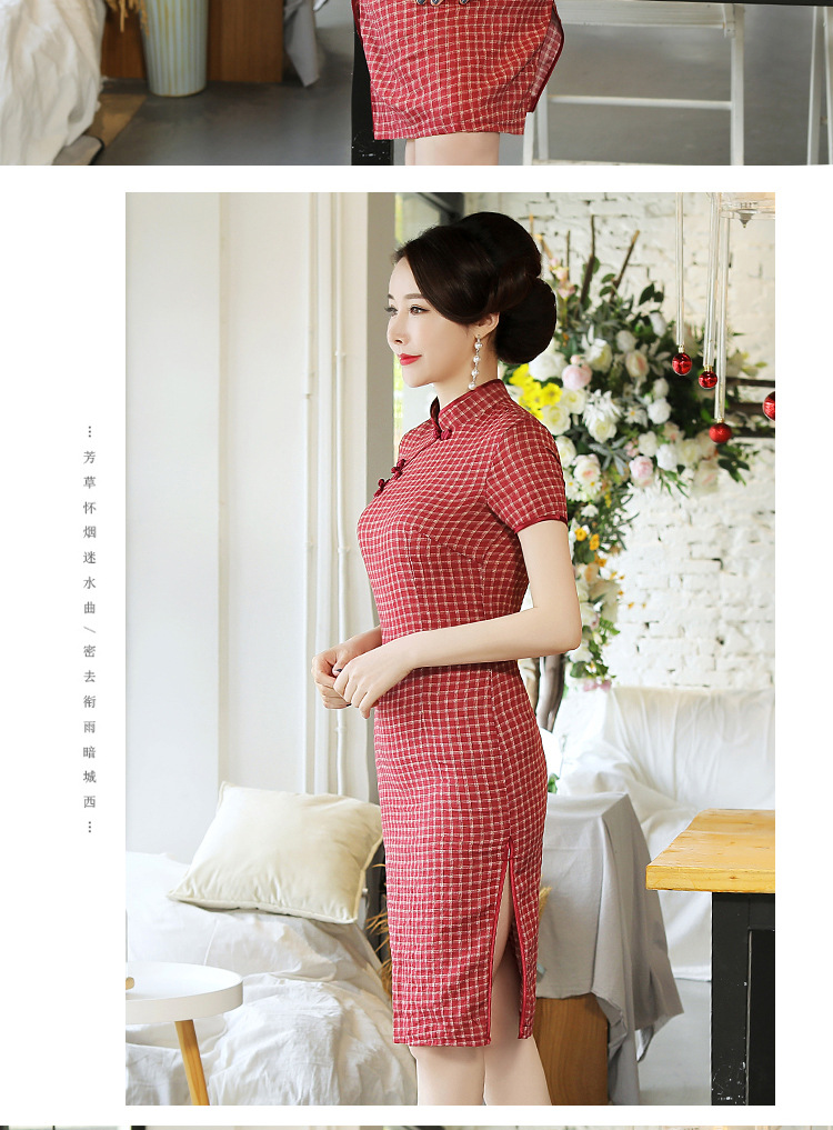 MQ-18Q327夏新款弹力格子中长款民国风改良旗袍YY