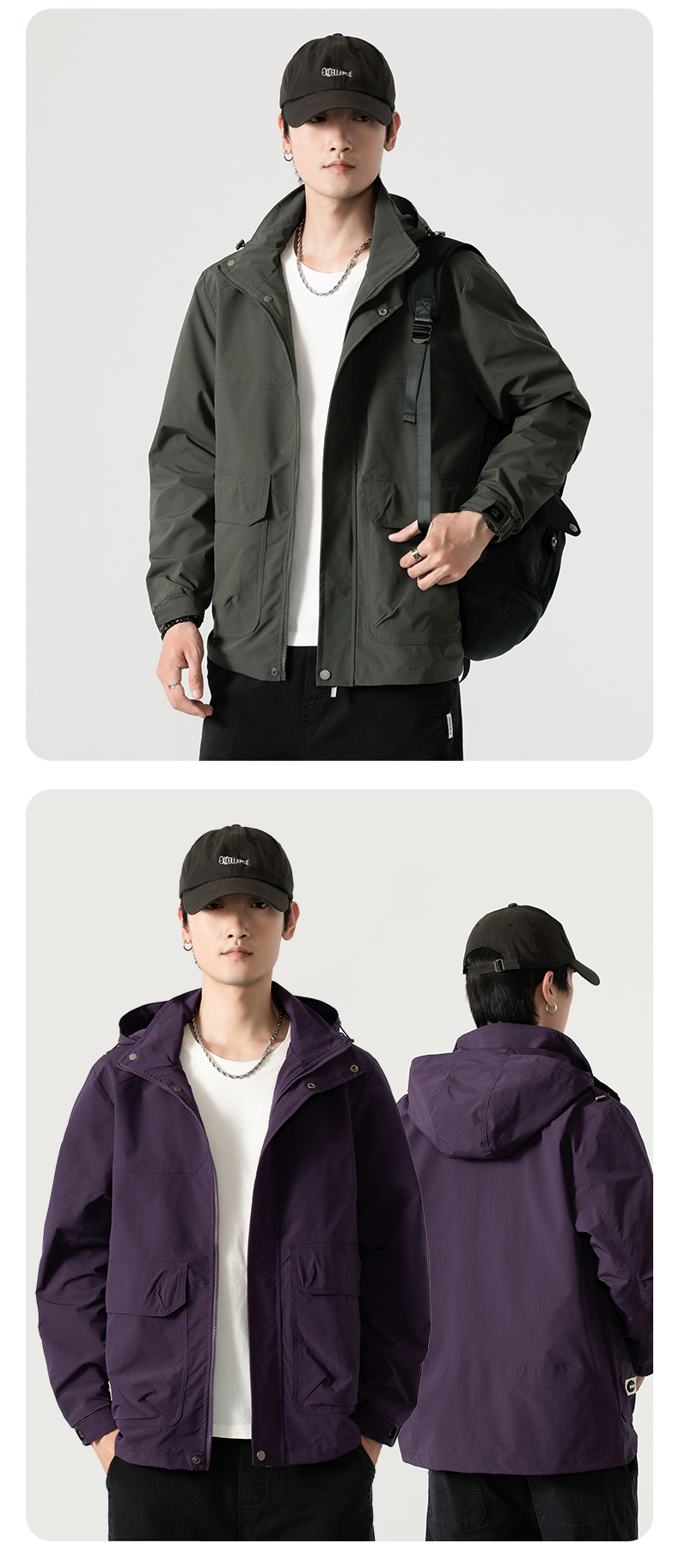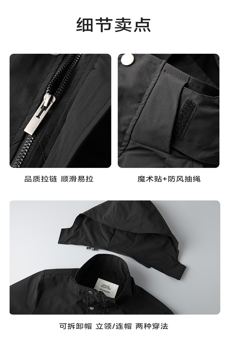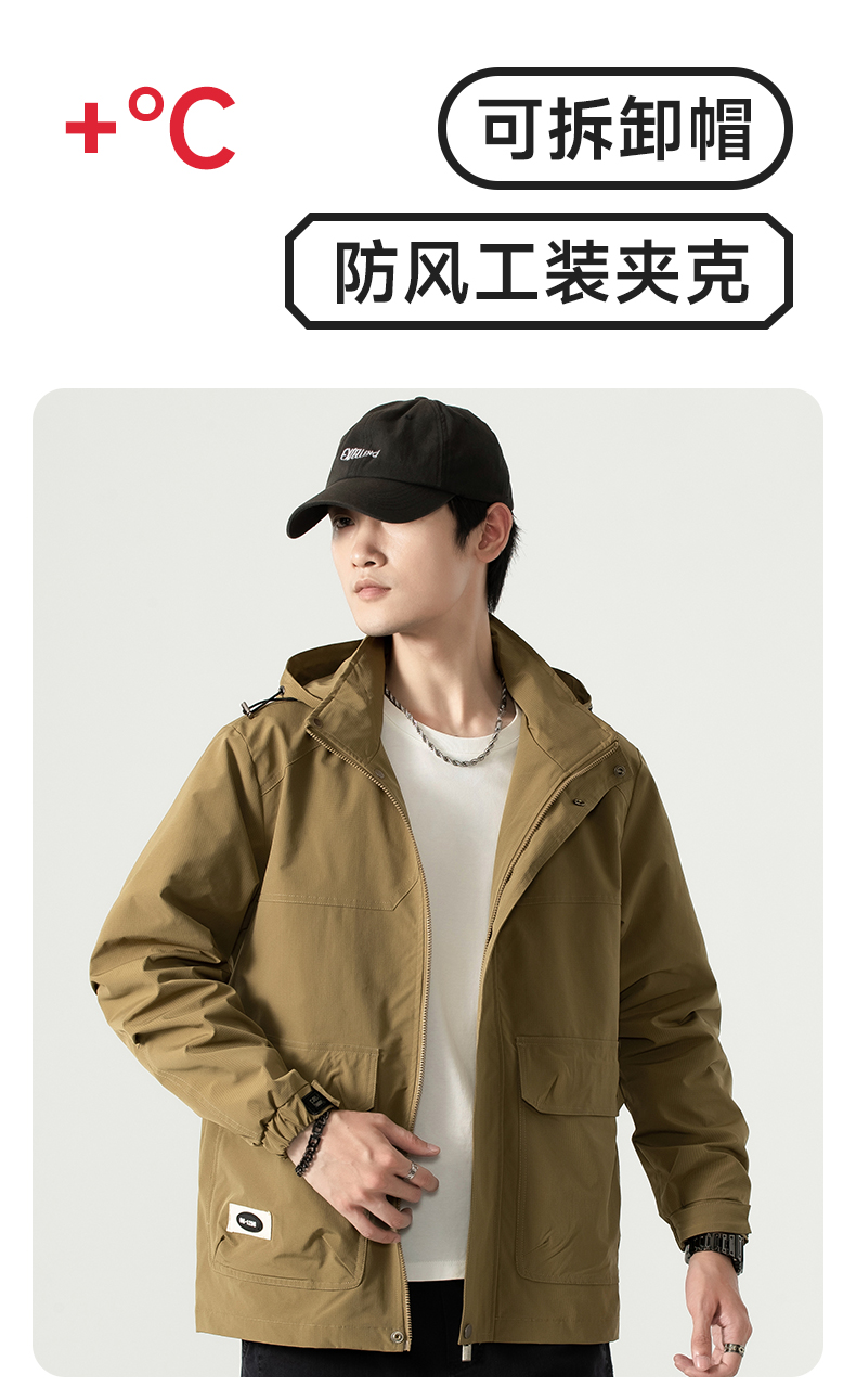 【新款DK】大依优型大码男装可拆卸帽夹克加肥加大休闲夹克胖子宽松弹力运动外套上衣