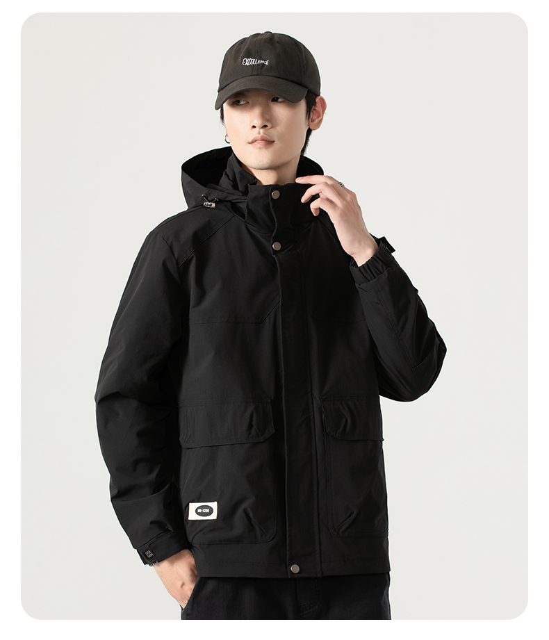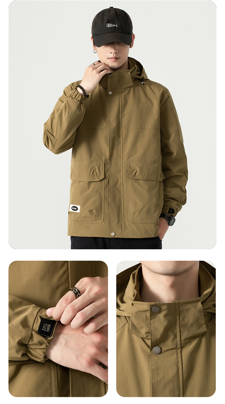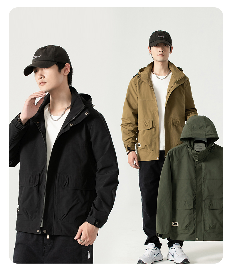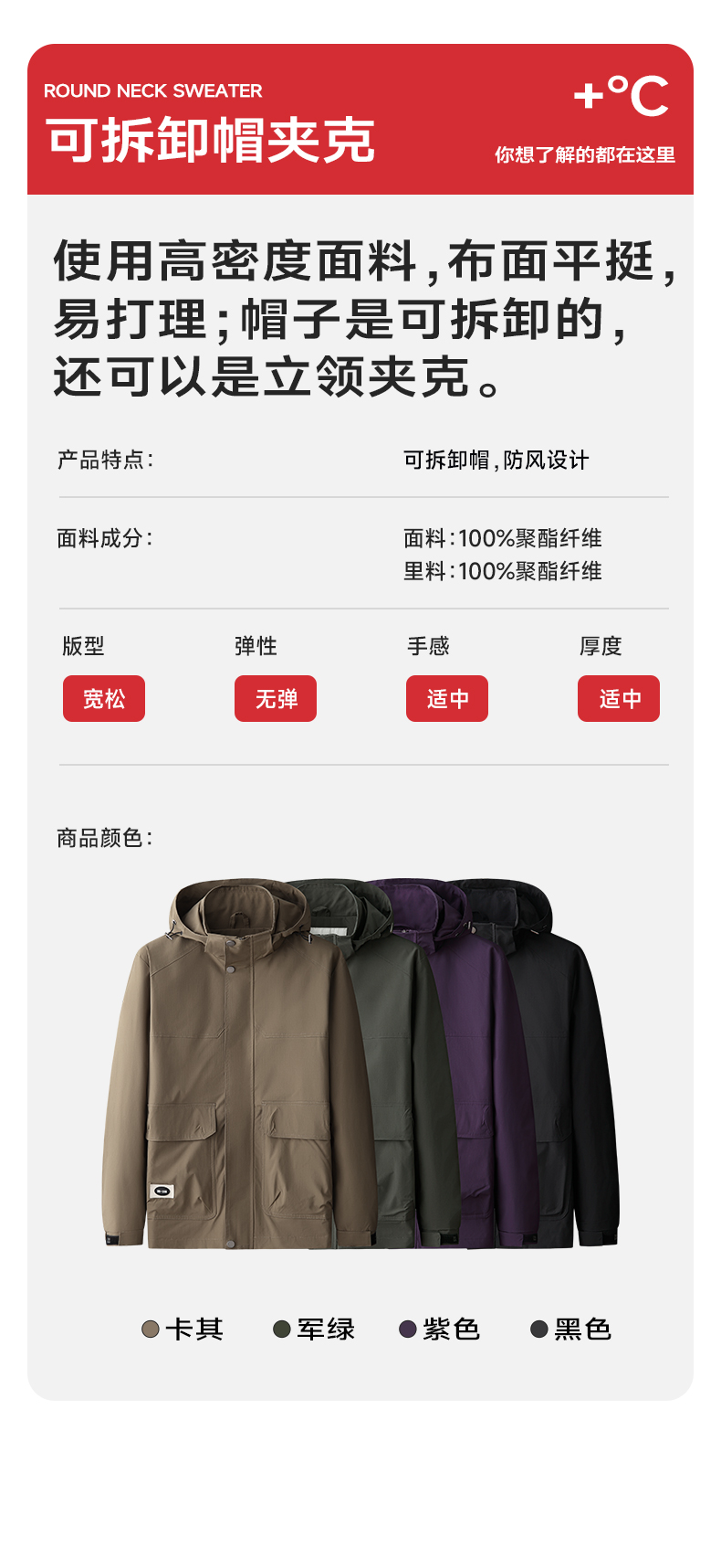 【新款DK】大依优型大码男装可拆卸帽夹克加肥加大休闲夹克胖子宽松弹力运动外套上衣