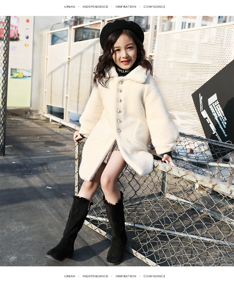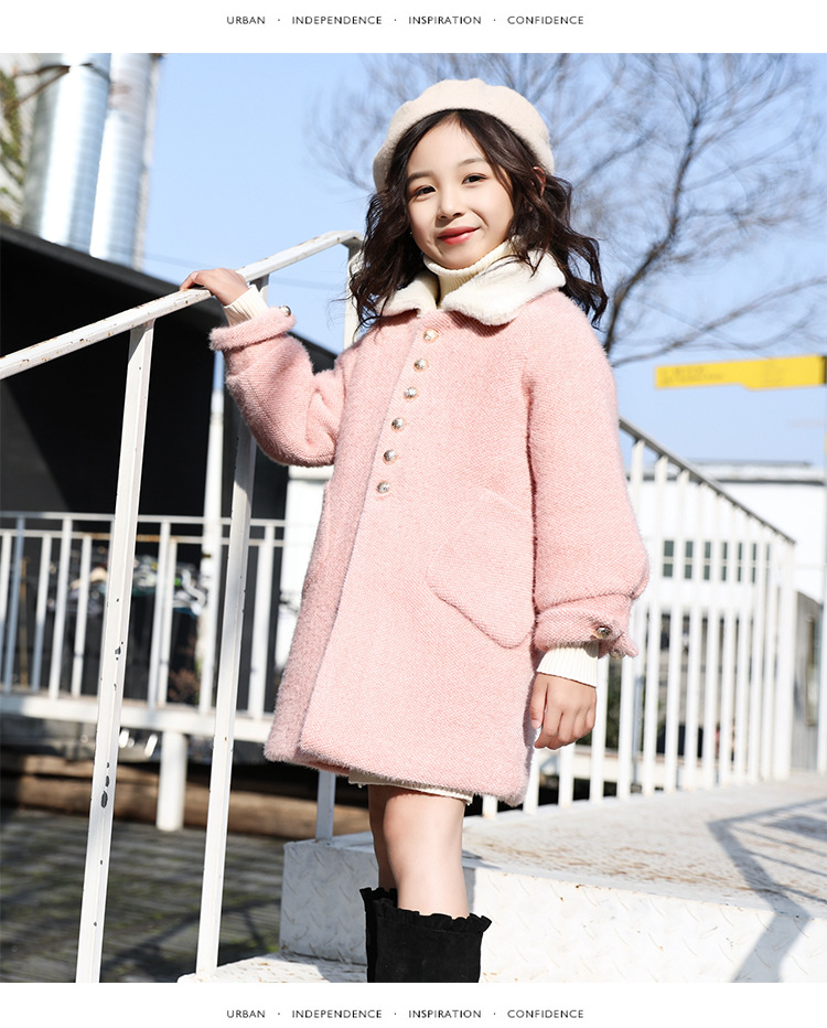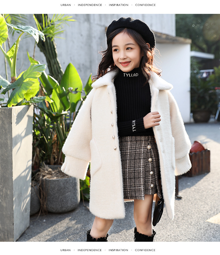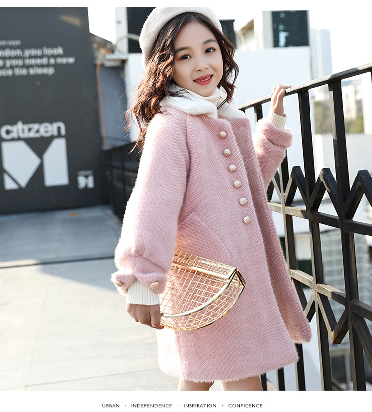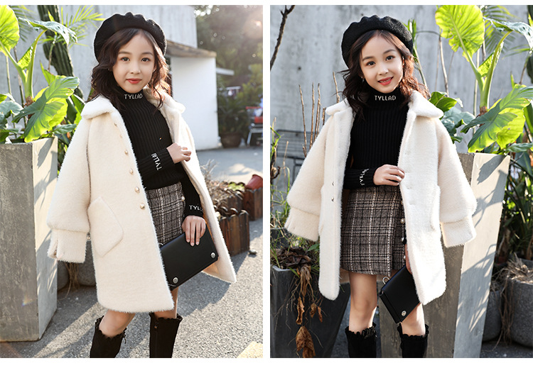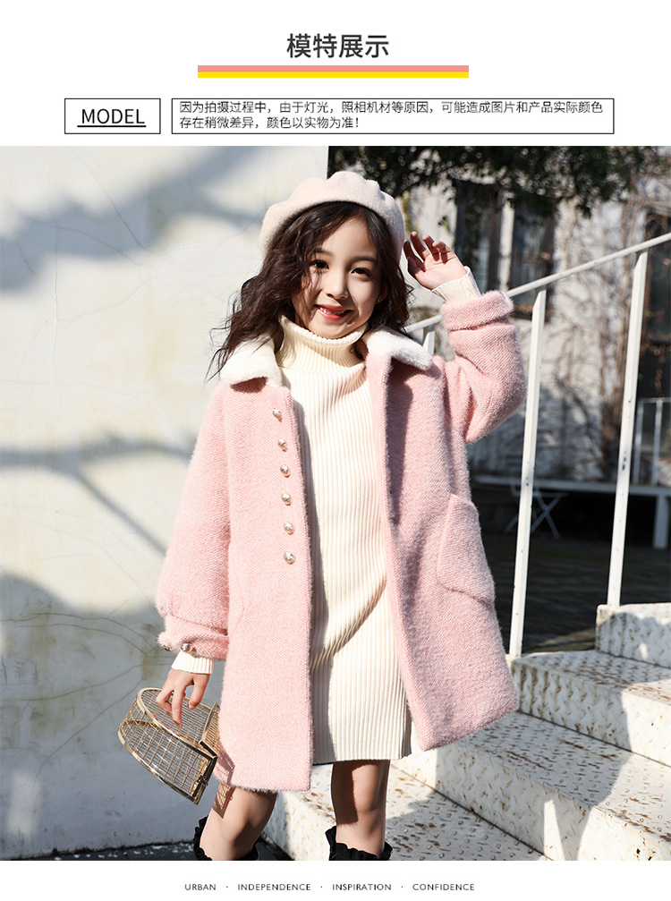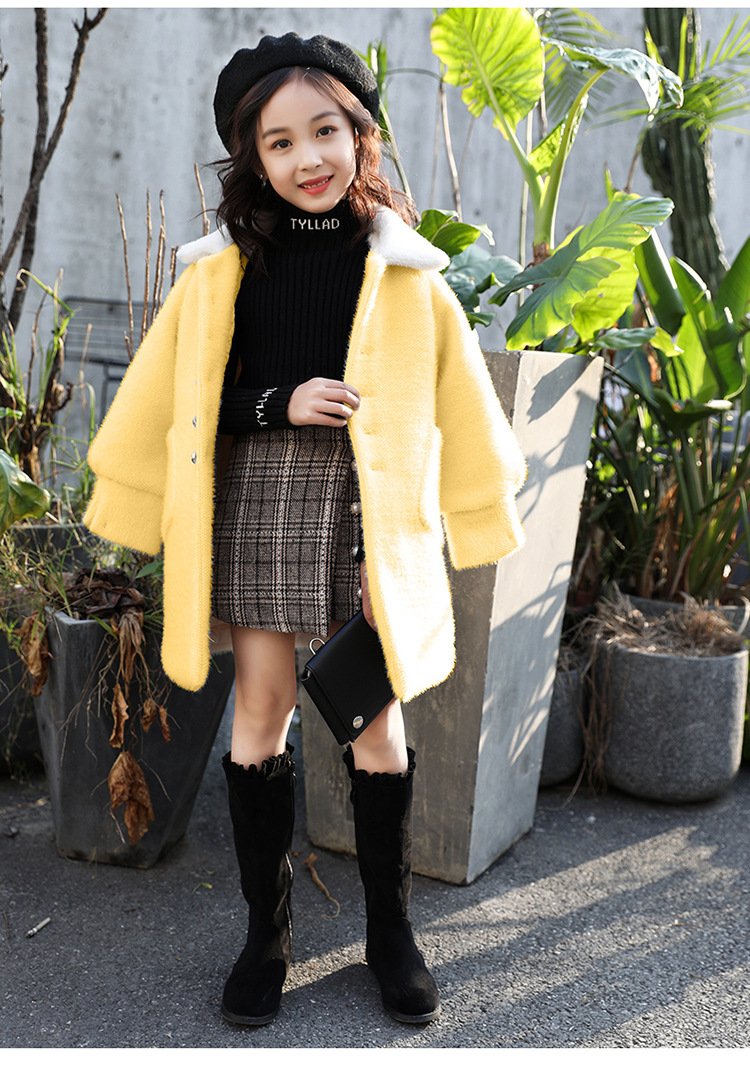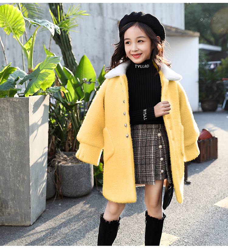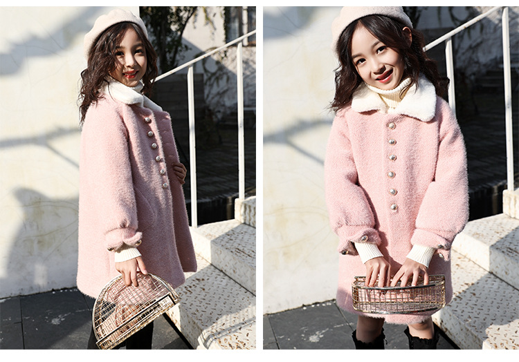 JSL-84-2女童中大童水貂绒呢子中长款大衣