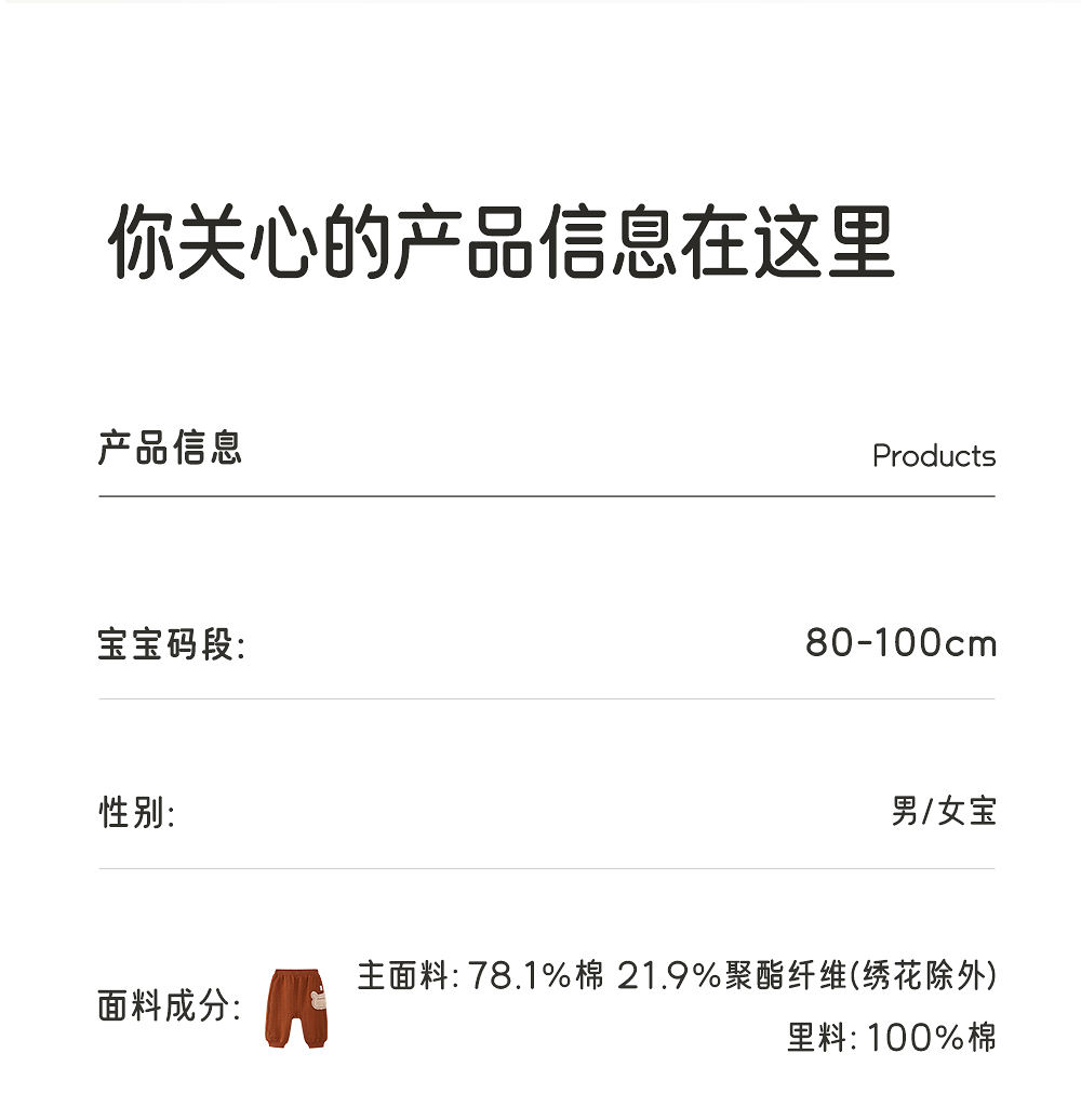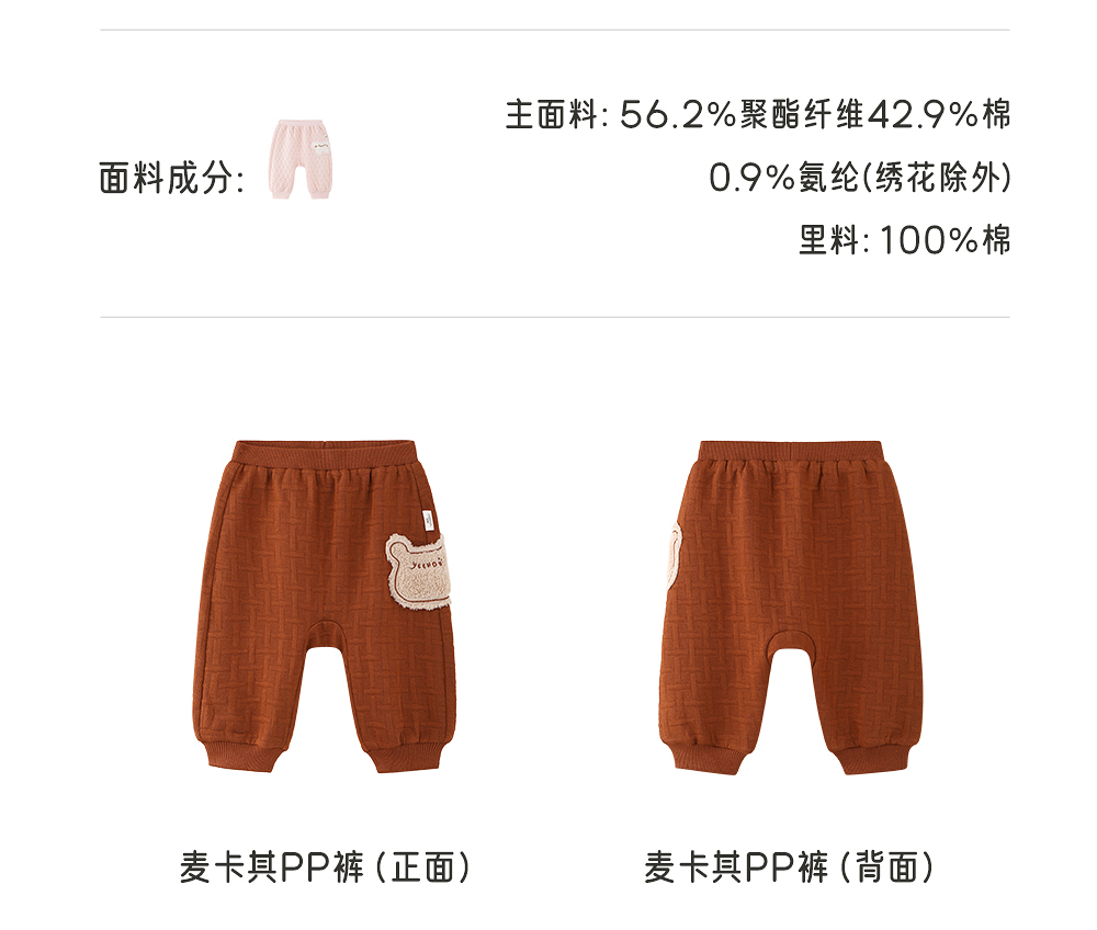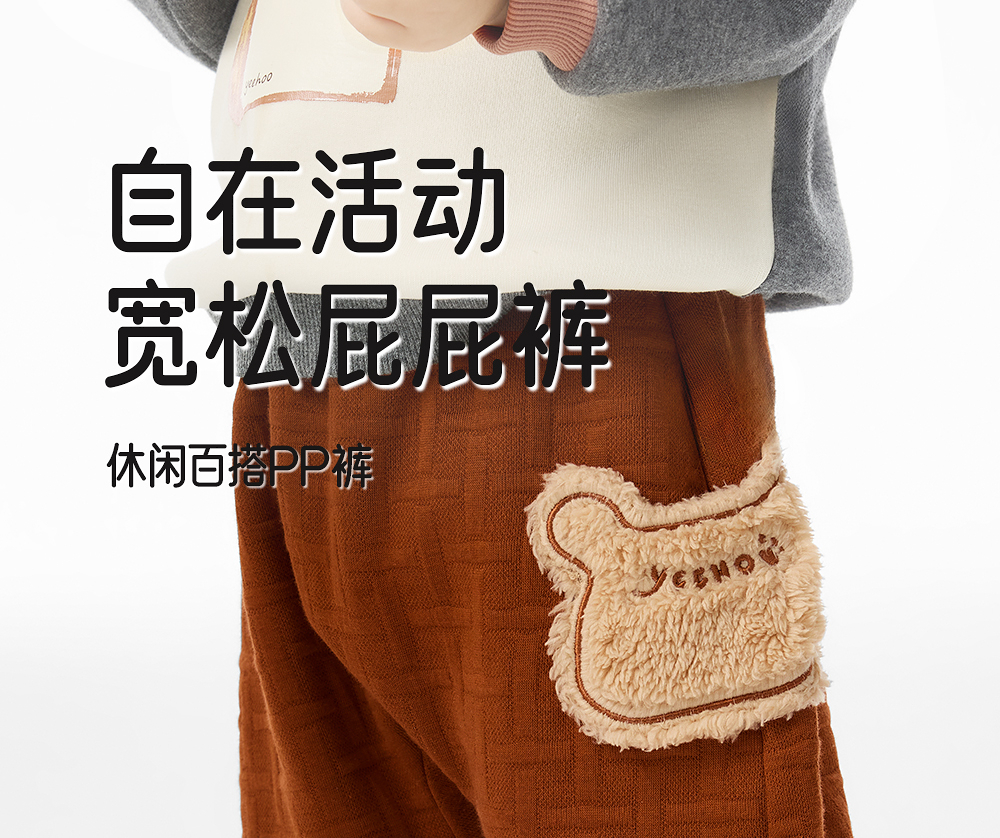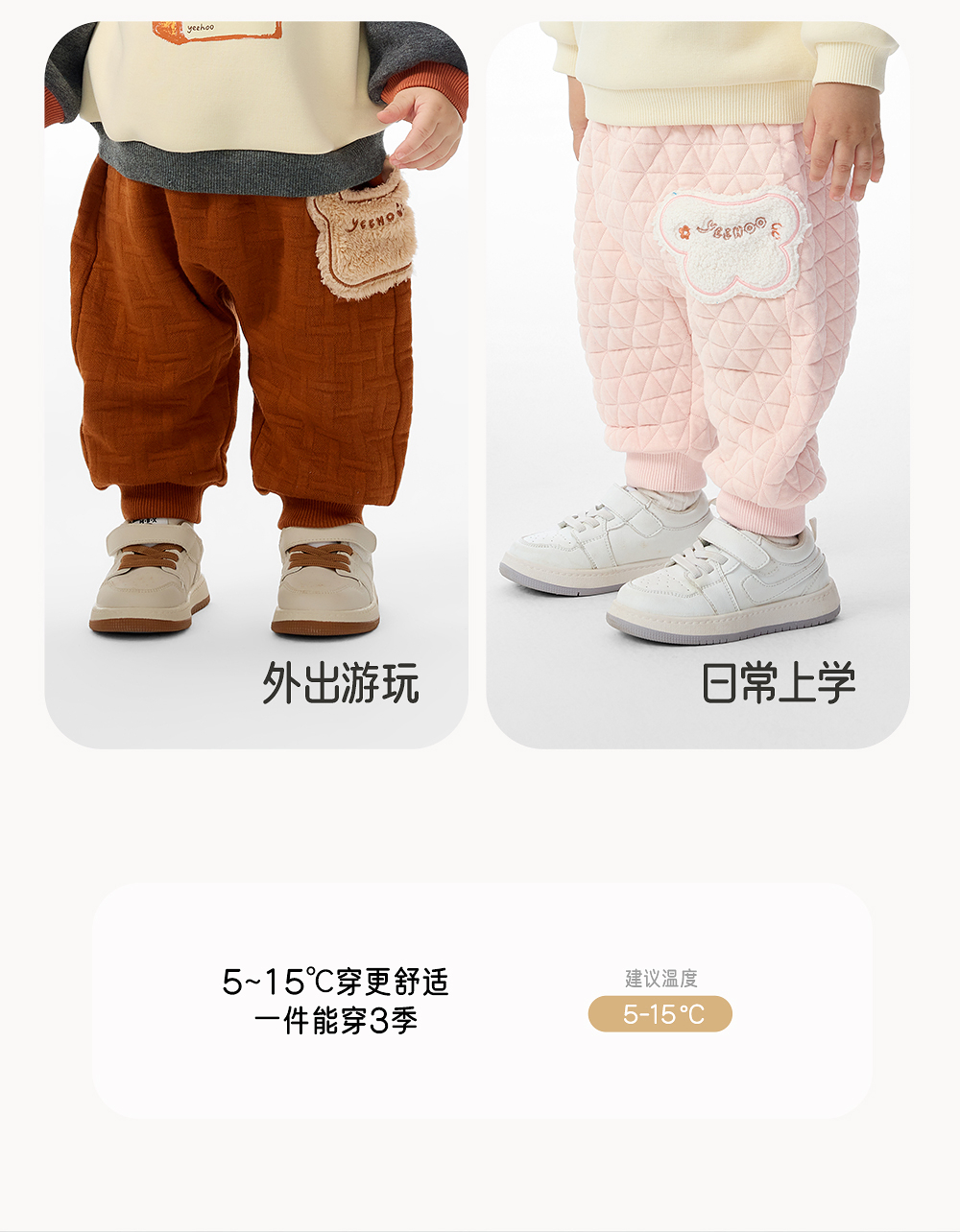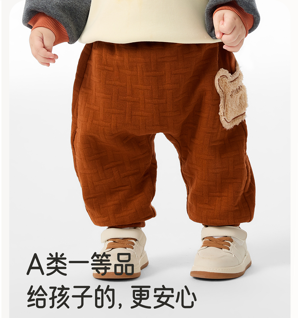 英氏儿童裤子秋冬保暖男宝屁屁裤小童外出防寒束脚裤女宝秋冬裤子