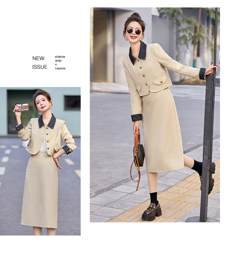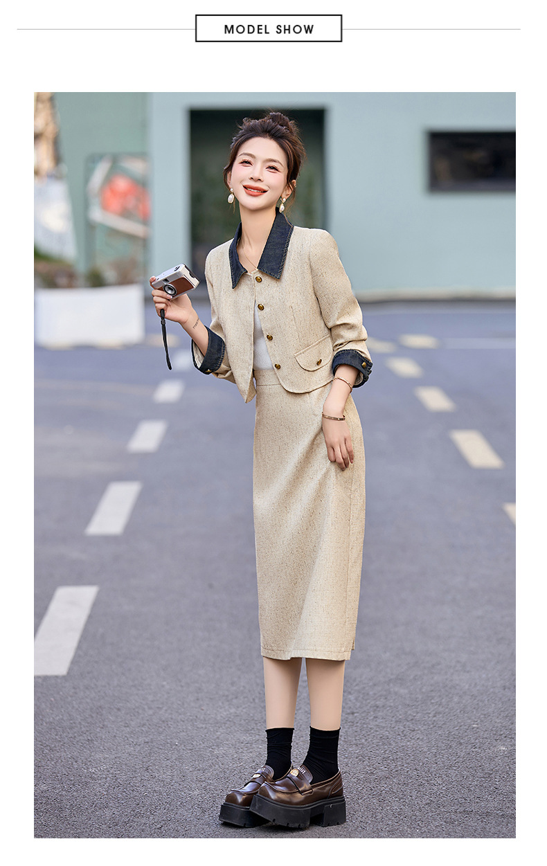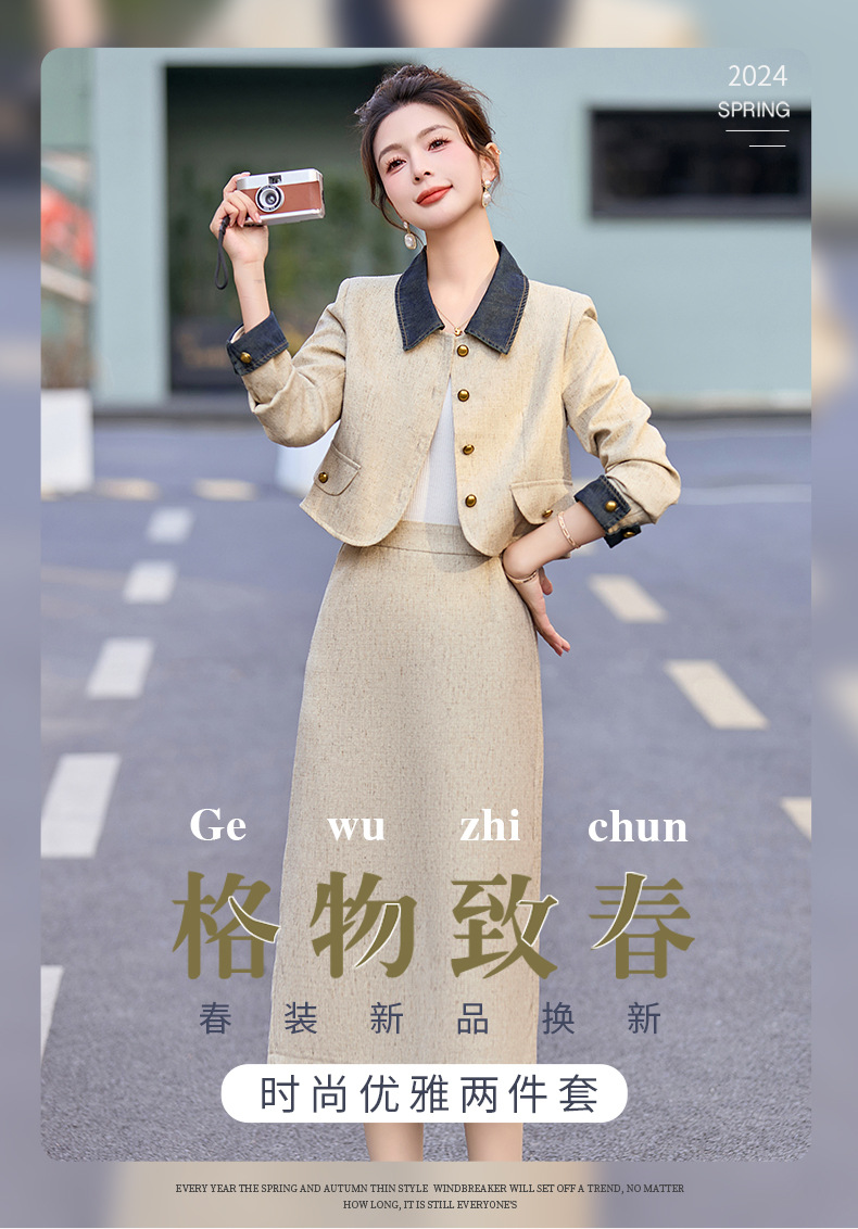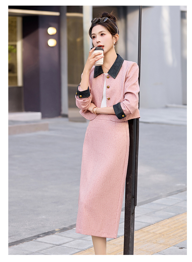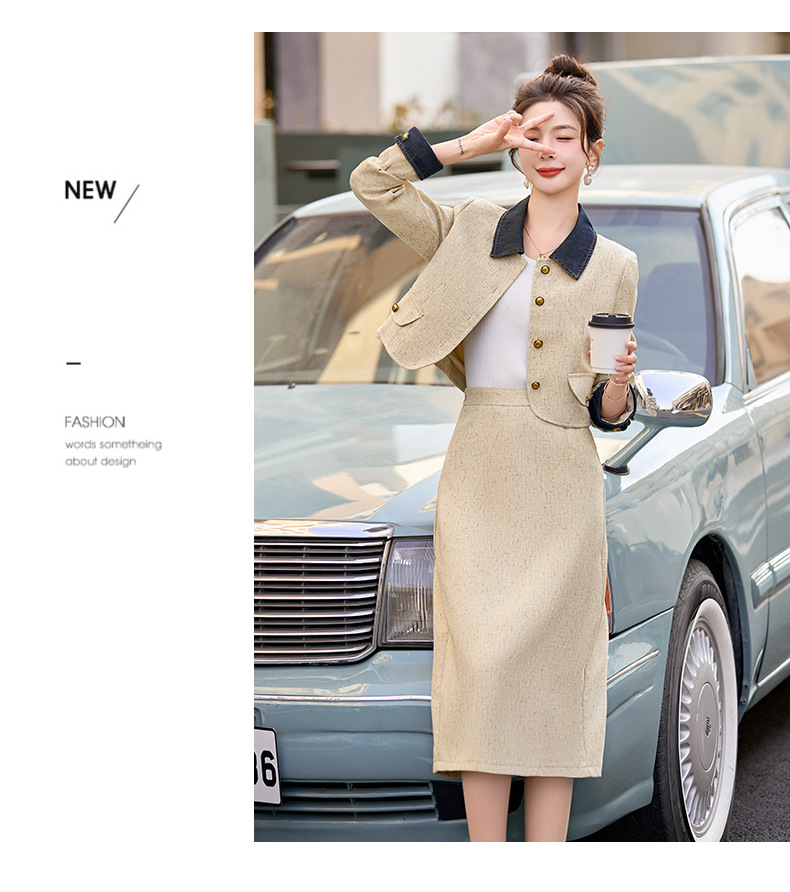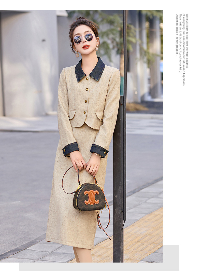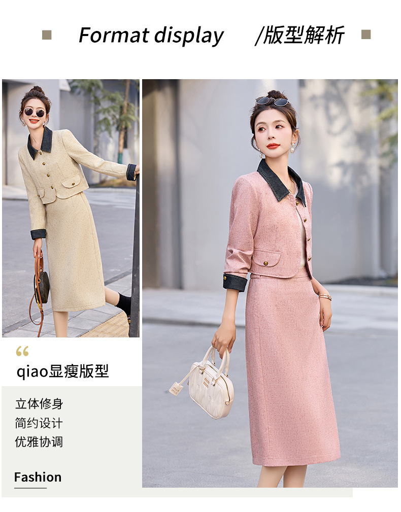 小香风撞色外套,半身裙两件套套装HR-CPYY8012