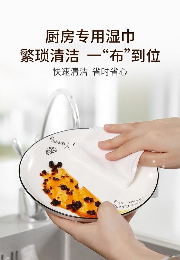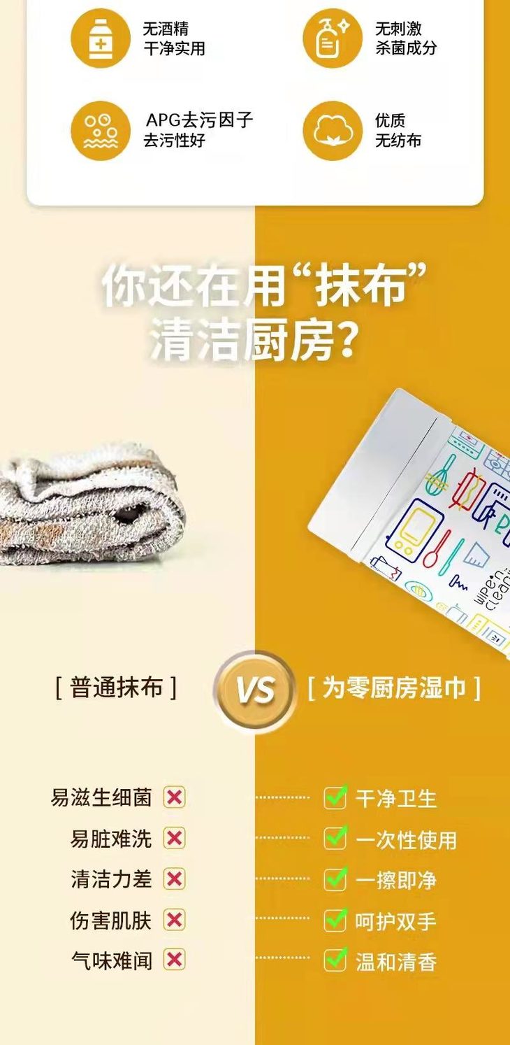 以前厨房都是用抹布,油污残留,气味恶心,擦完都留下味道,这款厨房湿巾含有柠檬清香,厨房餐具都是香香的。