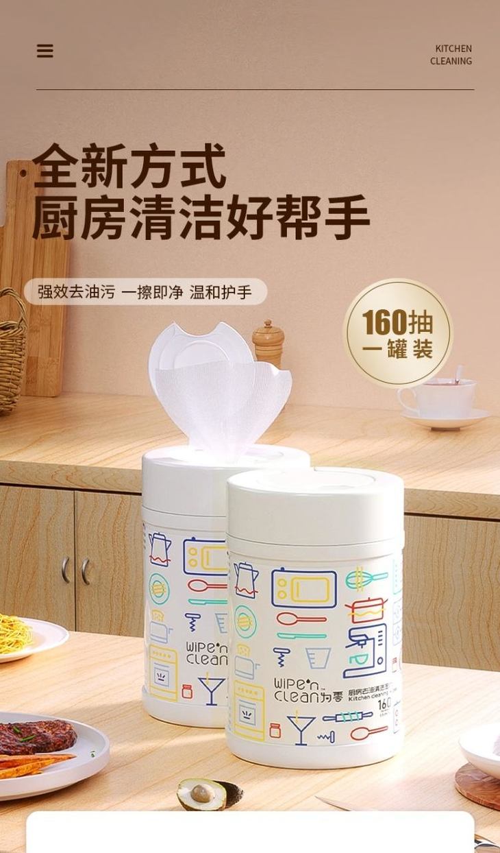 【19.6到手3桶】厨房去油清洁湿巾 高颜值,精美设计,超大尺寸,160抽/桶超级划算 基地直邮