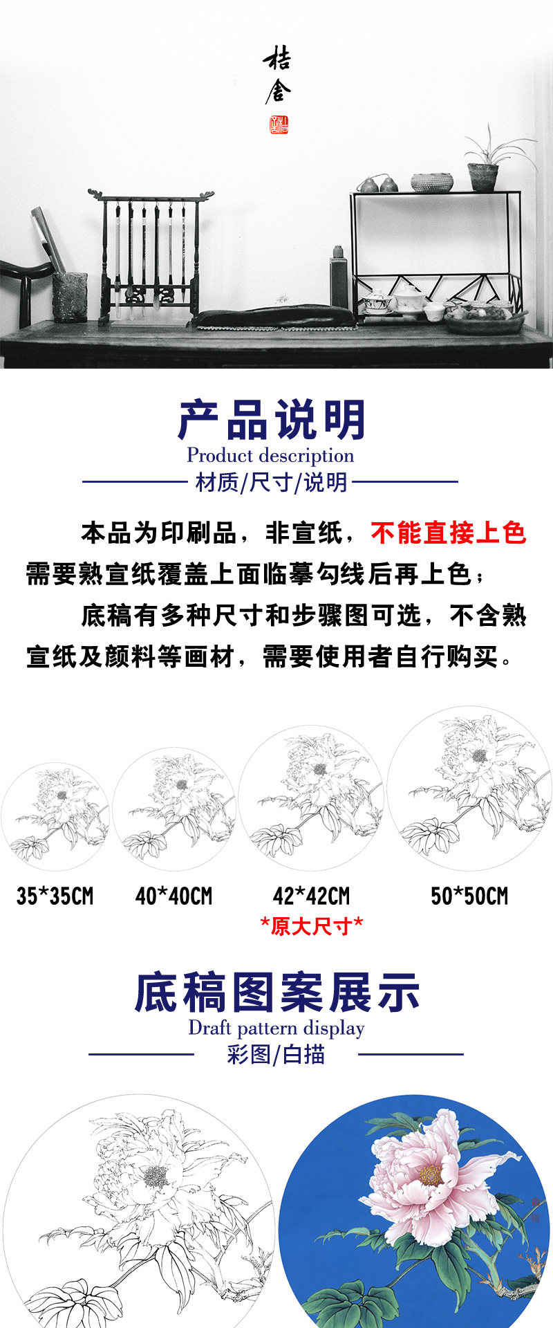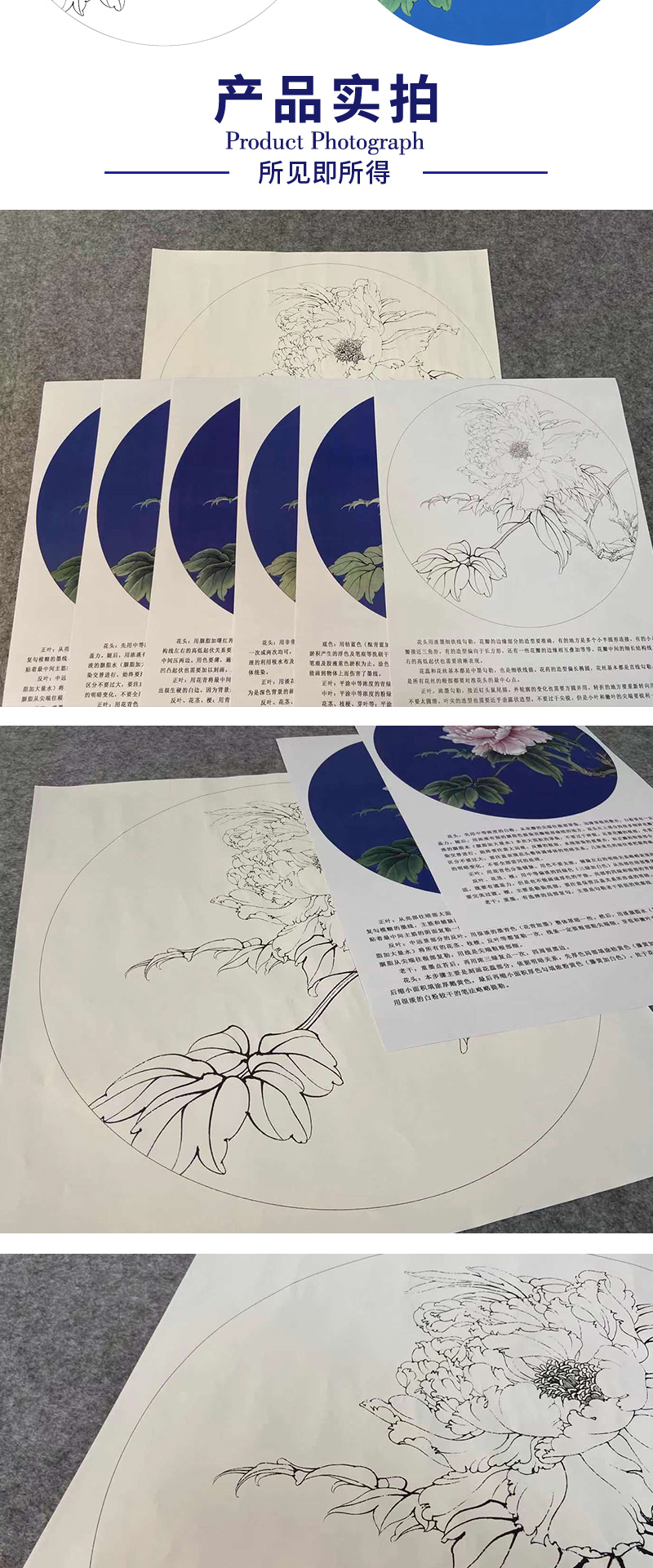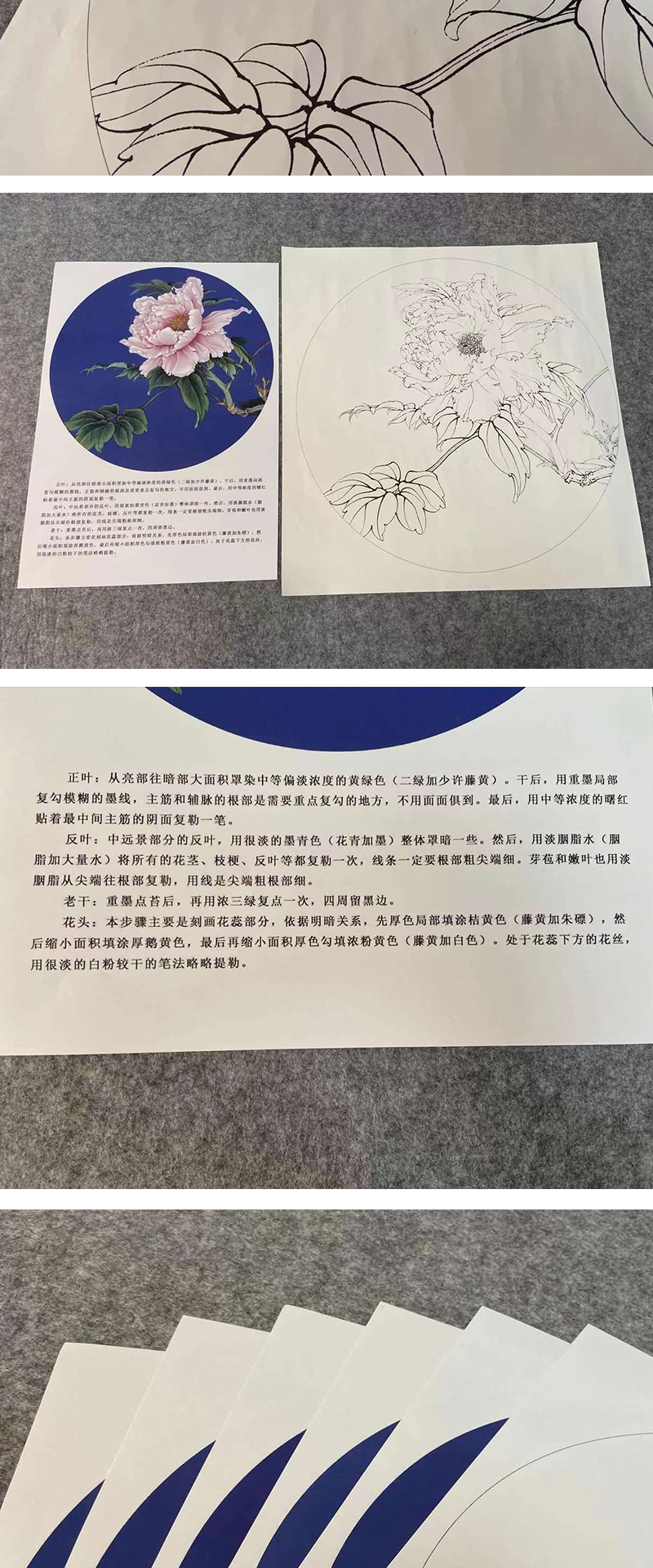 【有步骤、大彩图】李晓明工笔画白描底稿小品《胜葛巾》牡丹花鸟线稿KG20