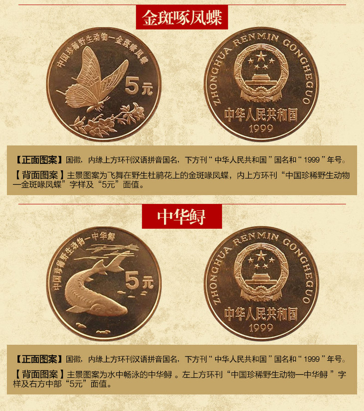 注:铜制纪念币由于制作材料的自然规律,随着时间的长短 只要见光就会不可避免的多多少少的发生氧化现象。特别是早期制作生产的铜制币【比如10大动物】由于光洁度不如现代的,更是如此。有的能看到轻微的黯淡斑痕,那是因为纪念币在出厂包装的时候,每枚币之间抹上一层油,经过长时间的渗透浸染和干化形成的。