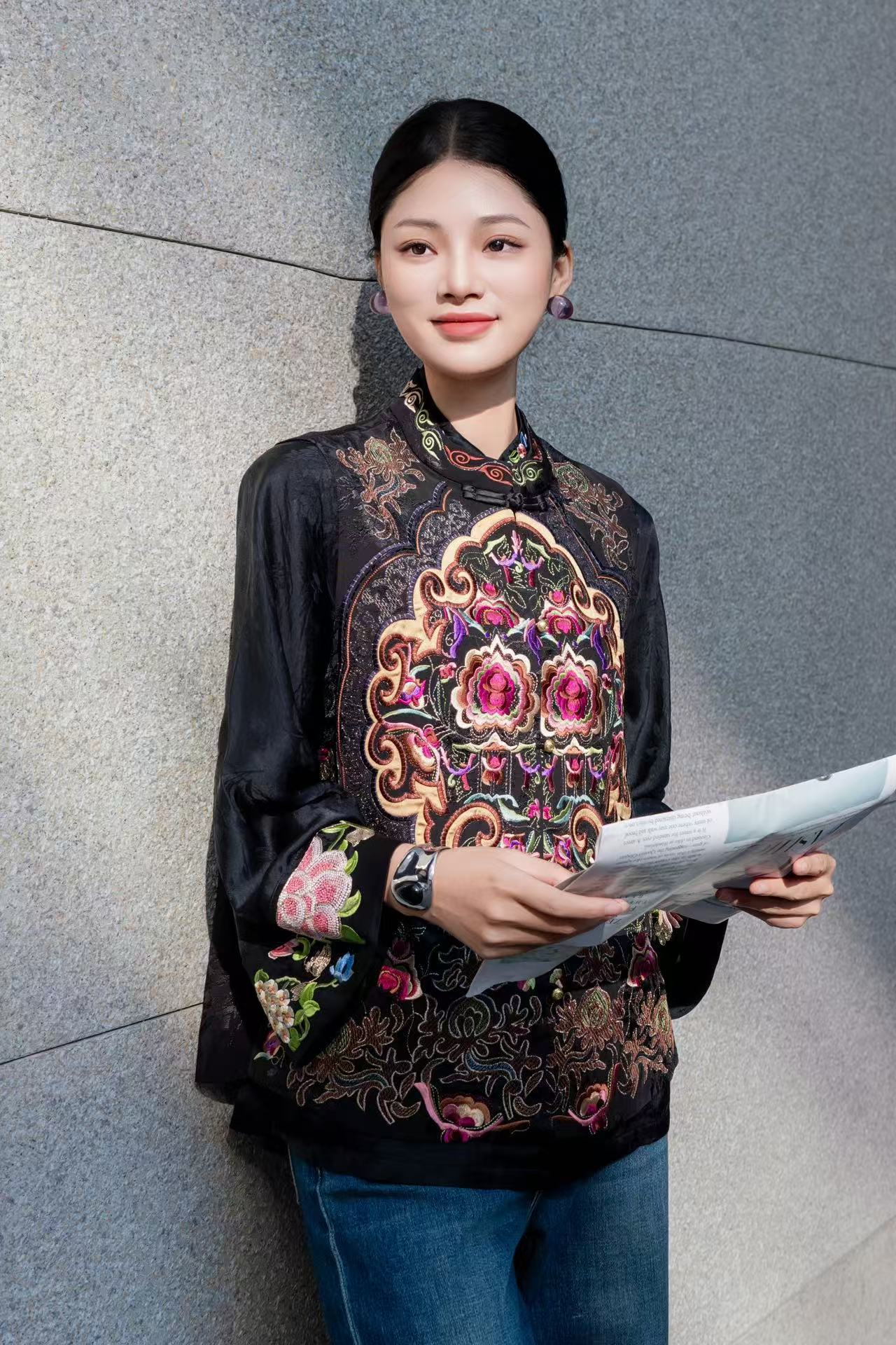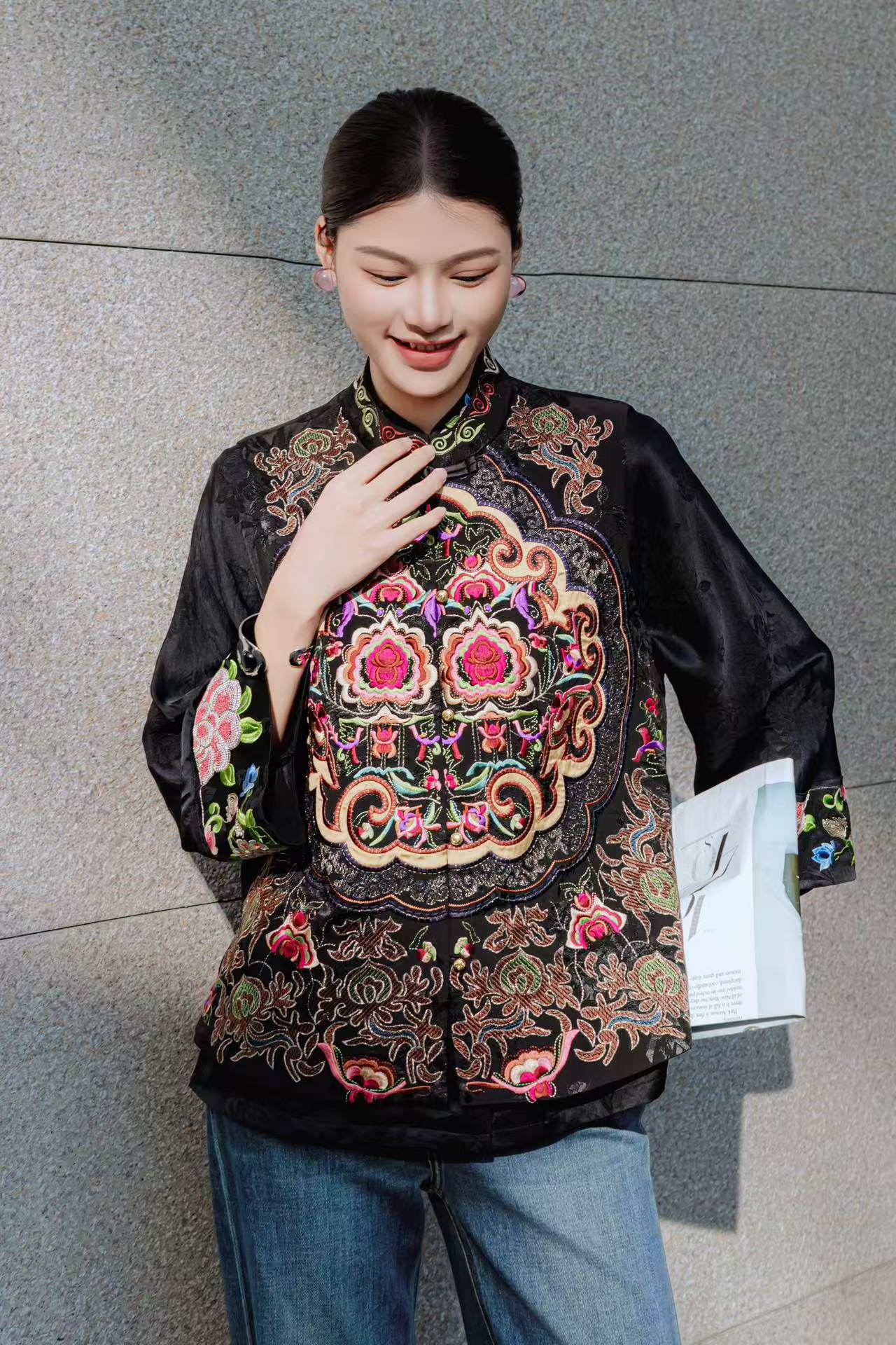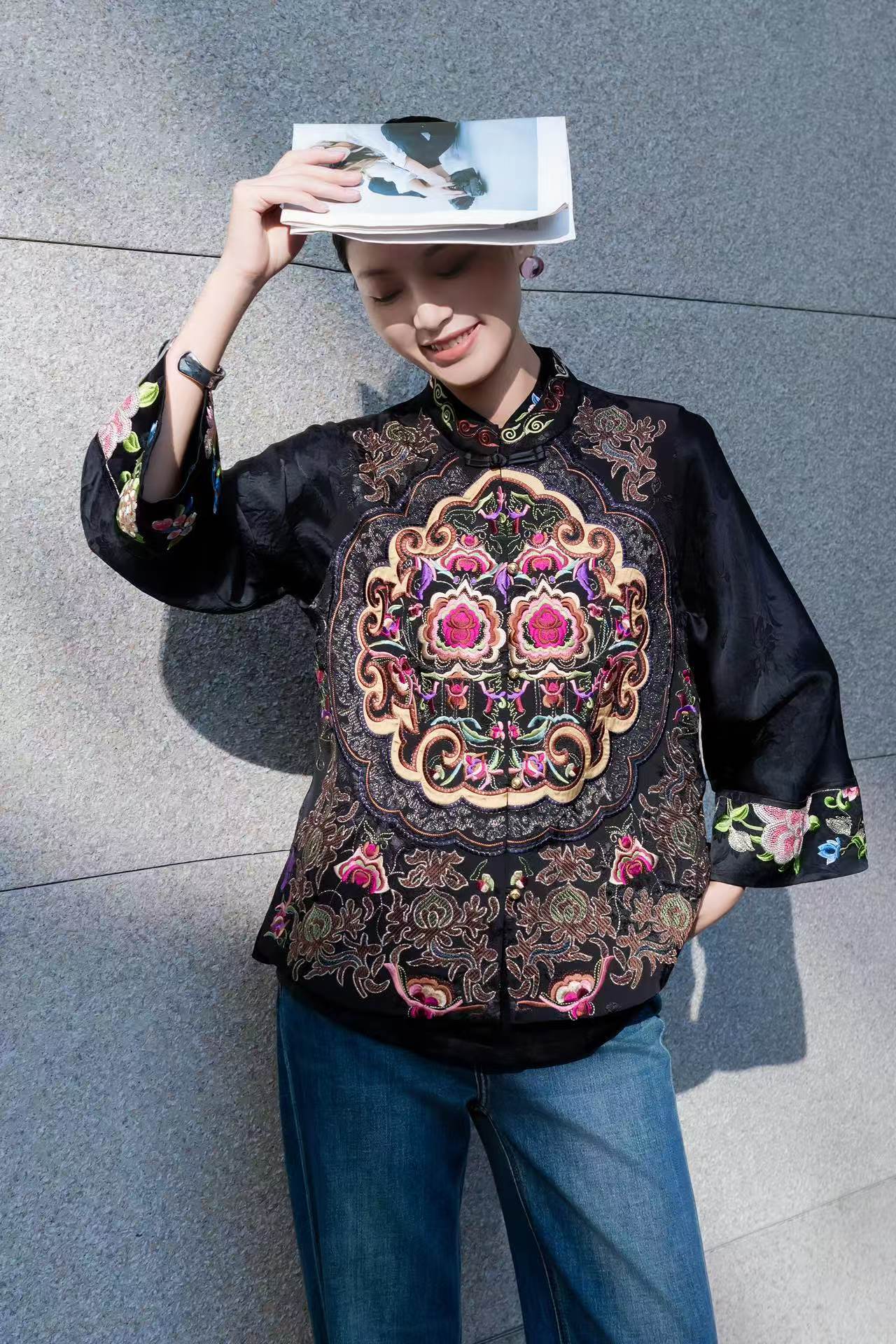 KDS-2632小众中国民族风重工刺绣马甲深圳南油女装2025春季新款立领马夹