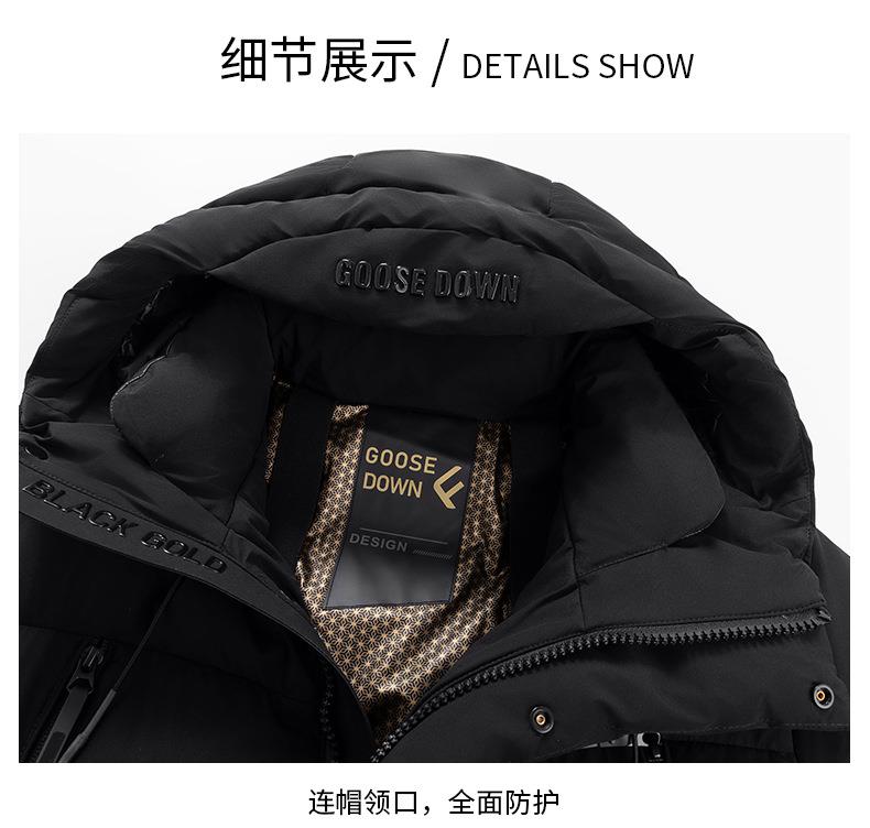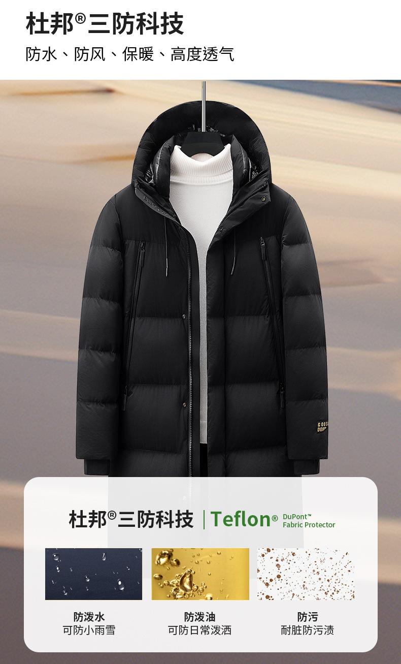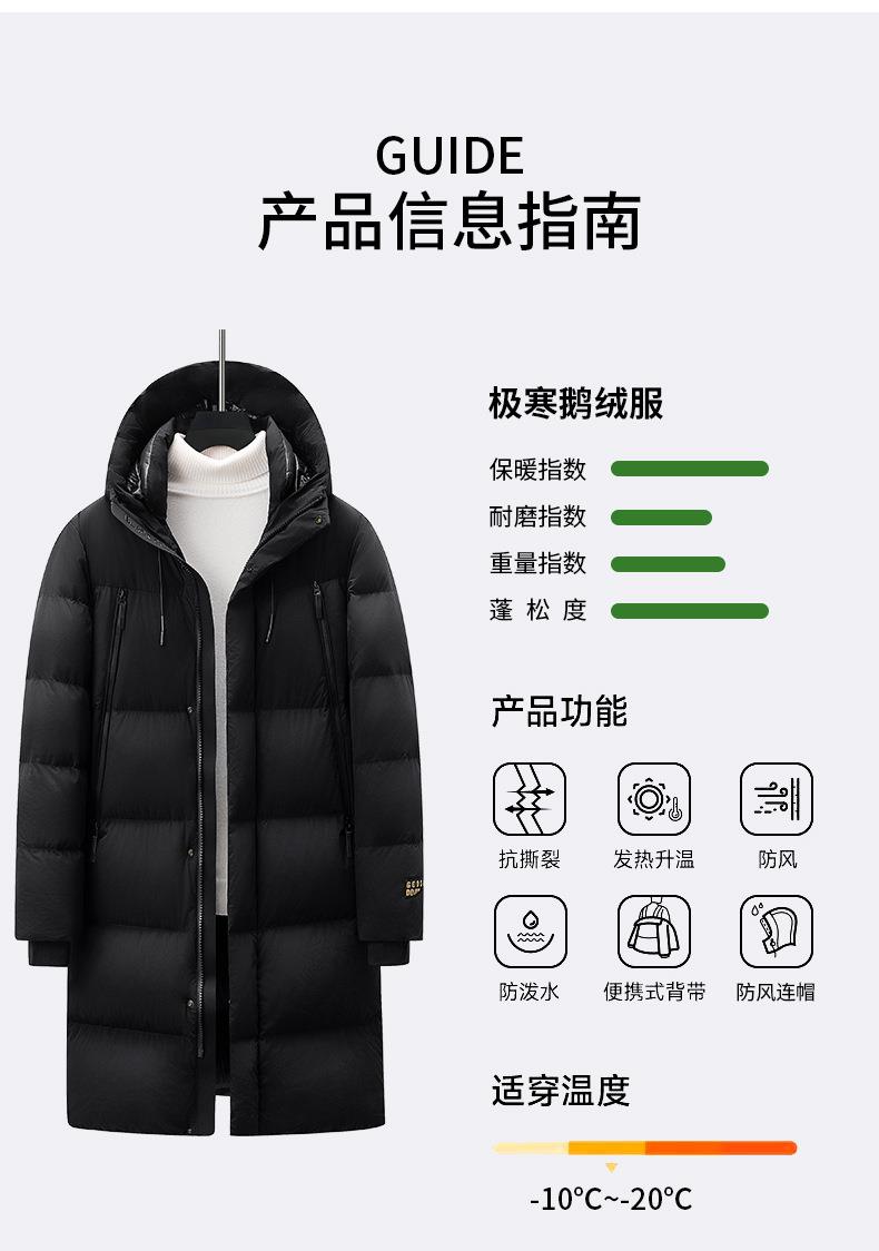 【300克白鹅绒】-30℃极寒男士冬季特厚中长款白鹅绒三防羽绒服潮