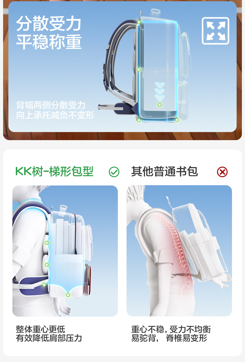 【梯形包型设计❗重心更低】KK树儿童书包男小学生一到六年级女孩轻便减负护脊双肩大容量背包。rg