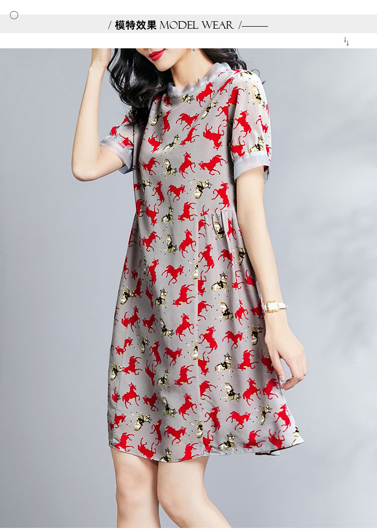 丁摩 夏季真丝连衣裙时尚宽松A字桑蚕丝裙子连衣裙Q122029