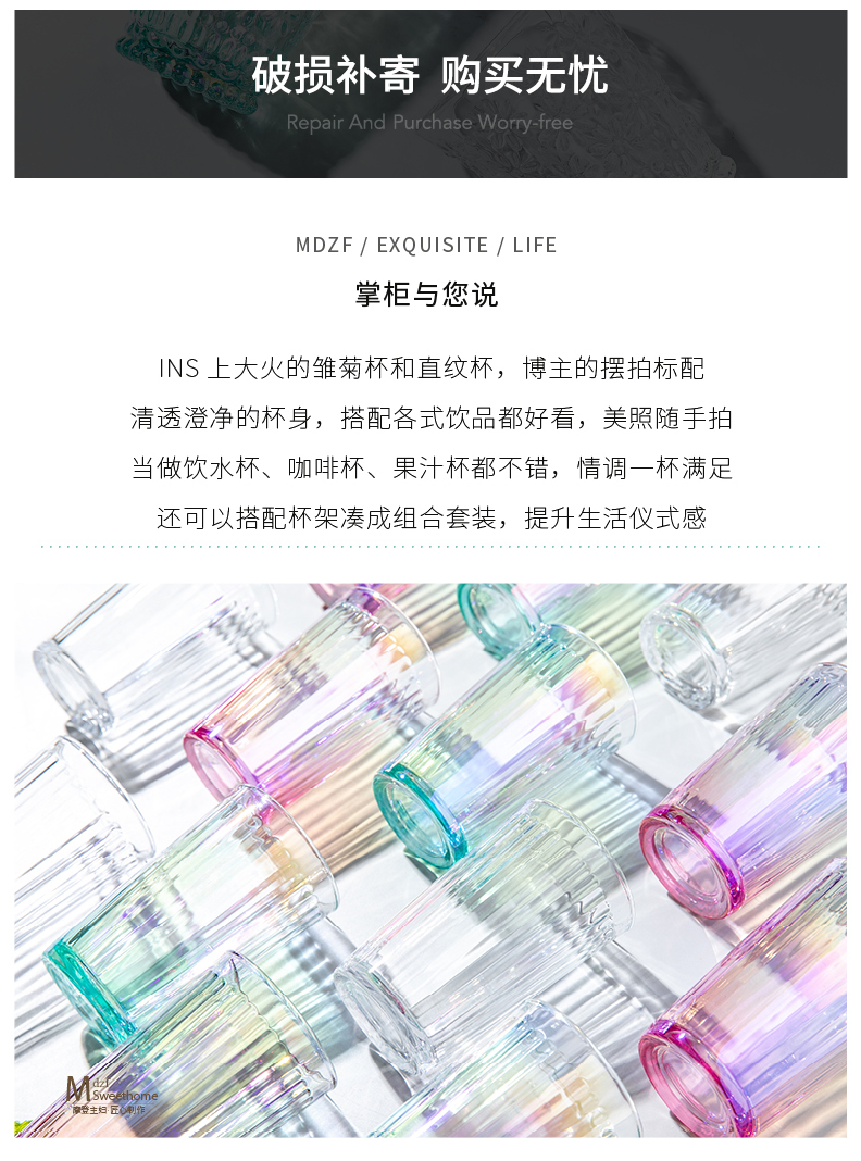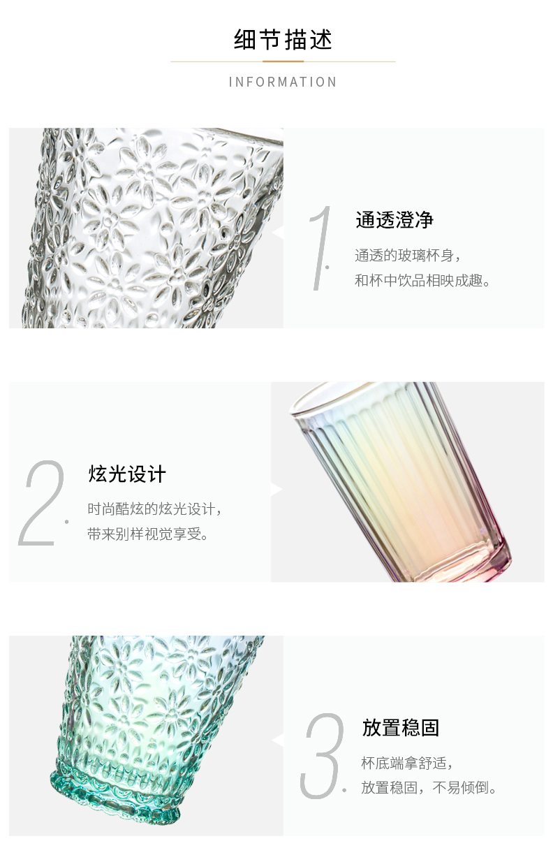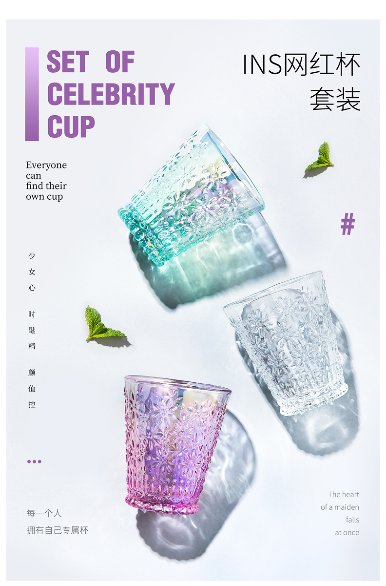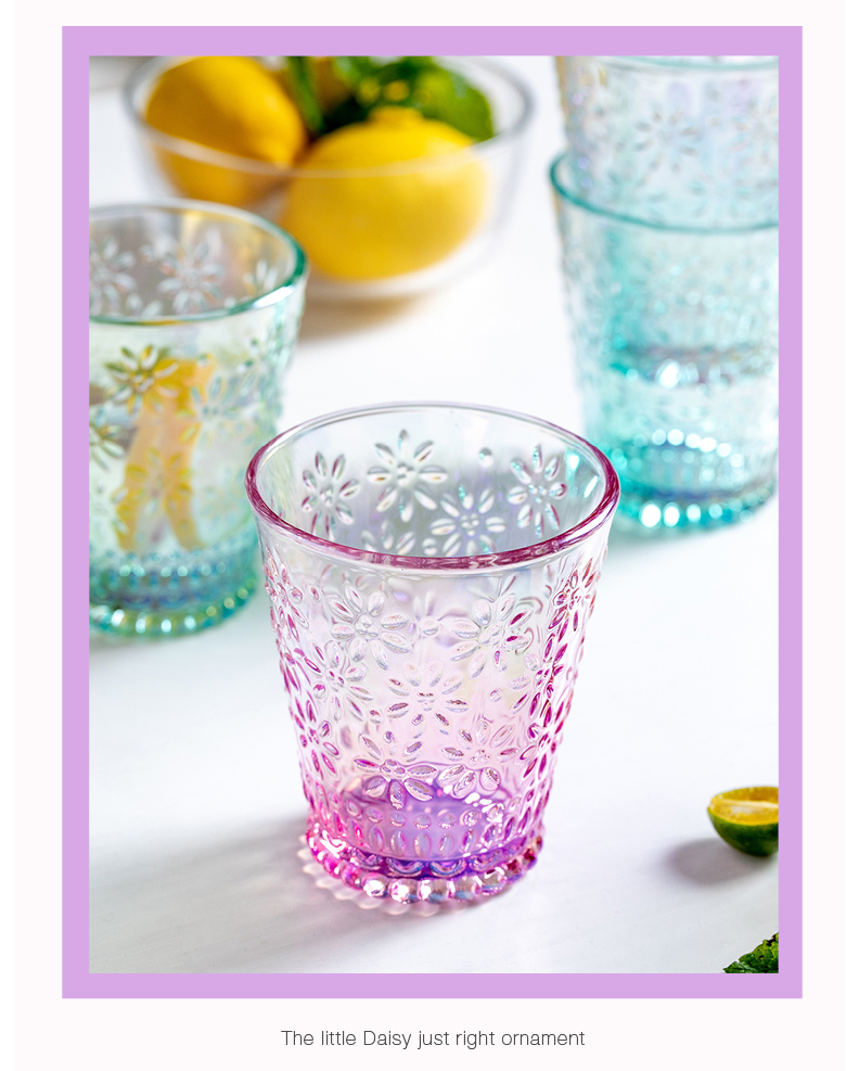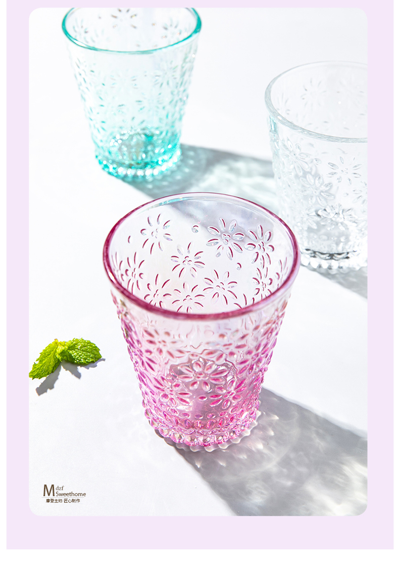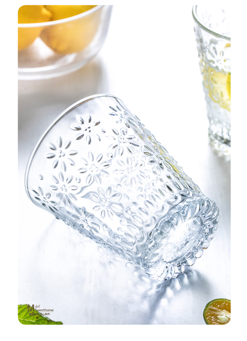 摩登主妇ins风小雏菊玻璃杯水杯家用套装网红透明杯子女可爱创意