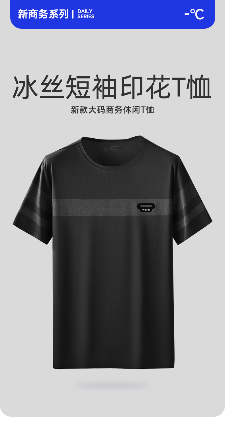 【新款DDP】大依优型大码冰丝短袖T恤加肥加大弹力透气宽松休闲男装半袖上衣