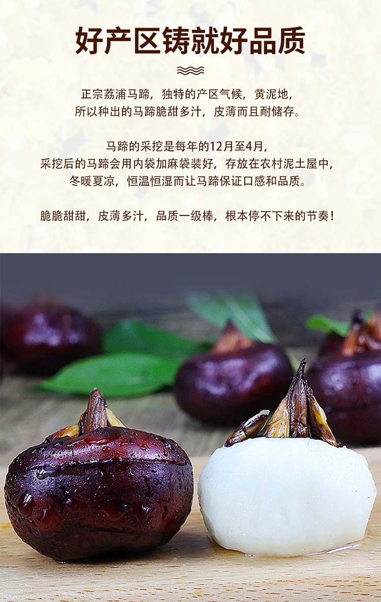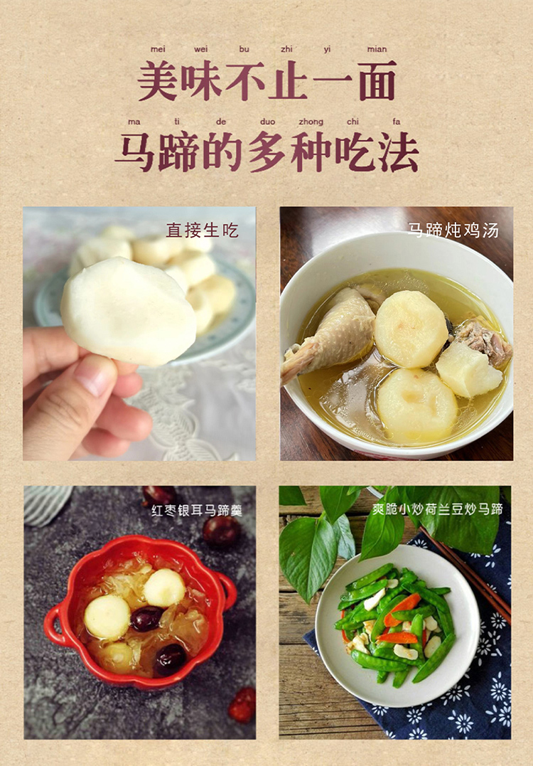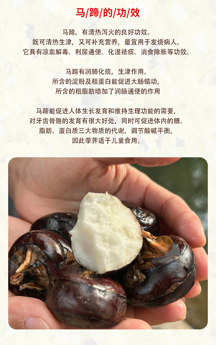 ①马蹄皮薄不能磕碰,破皮后会迅速氧化,为了易储存,发货是带泥的,介意者慎拍。