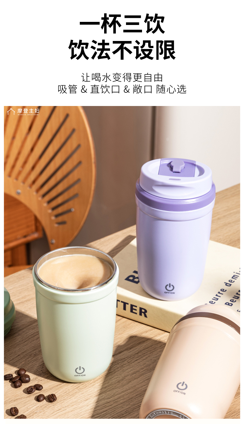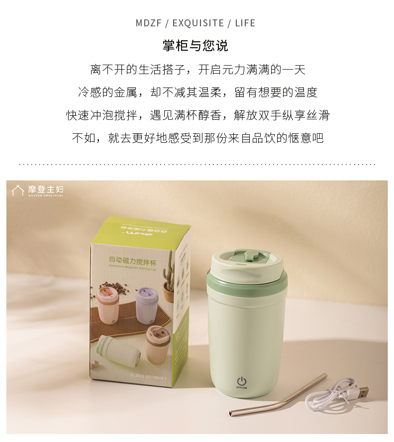 摩登主妇自动搅拌杯2024新款水杯摇摇杯电动咖啡杯子办公室豆浆杯
