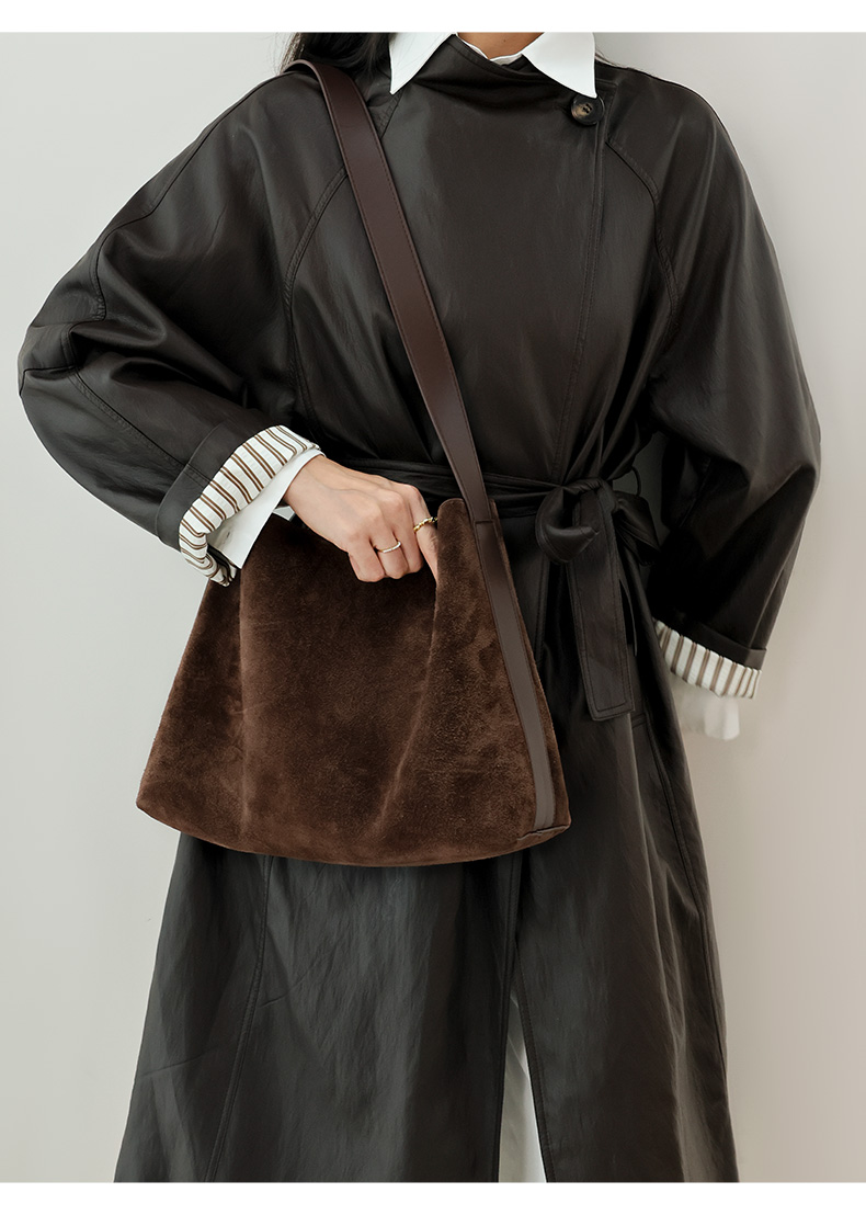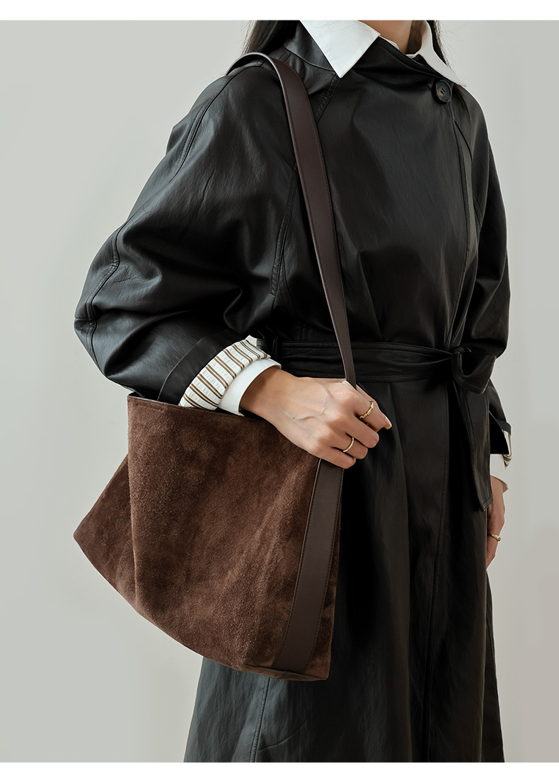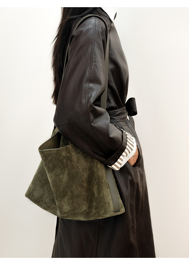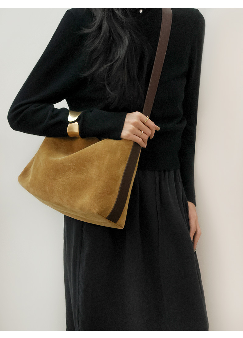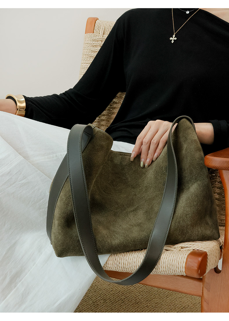 登白DENGBAI 反绒牛皮水桶包大容量包包休闲通勤单肩斜挎包