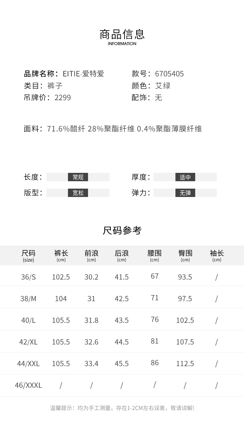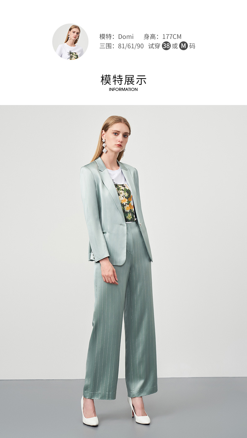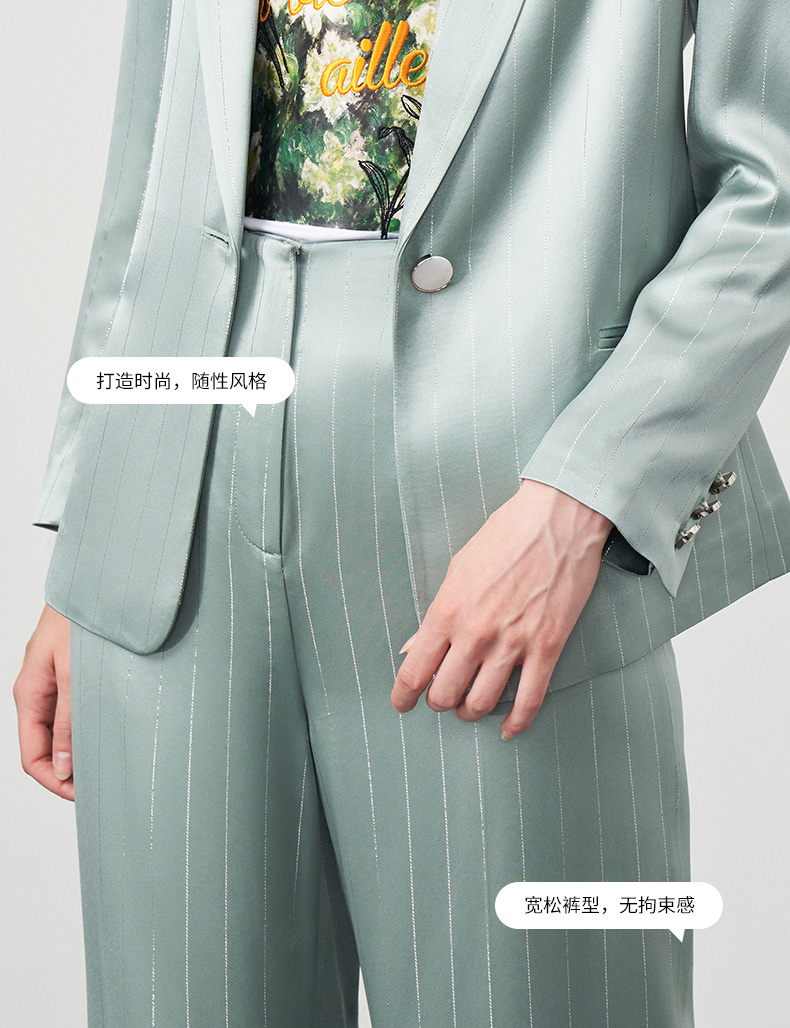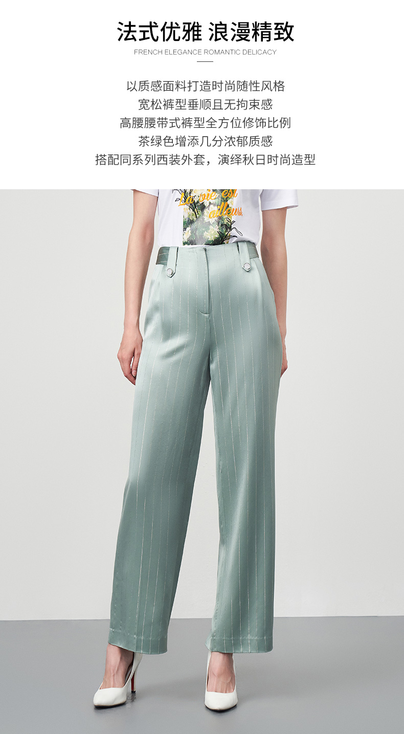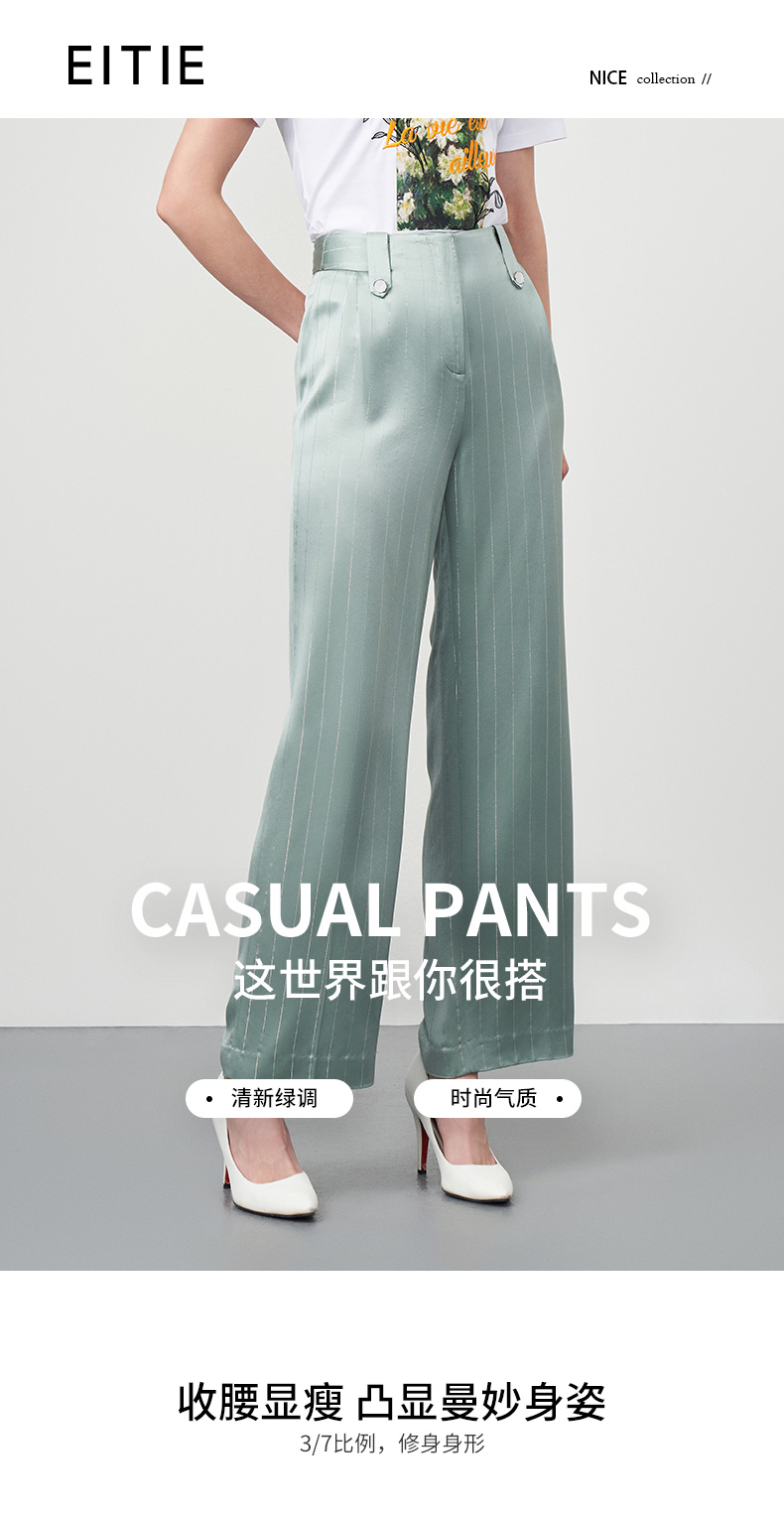 EITIE爱特爱秋季新款时尚通勤职业干练条纹显瘦长裤女6705405