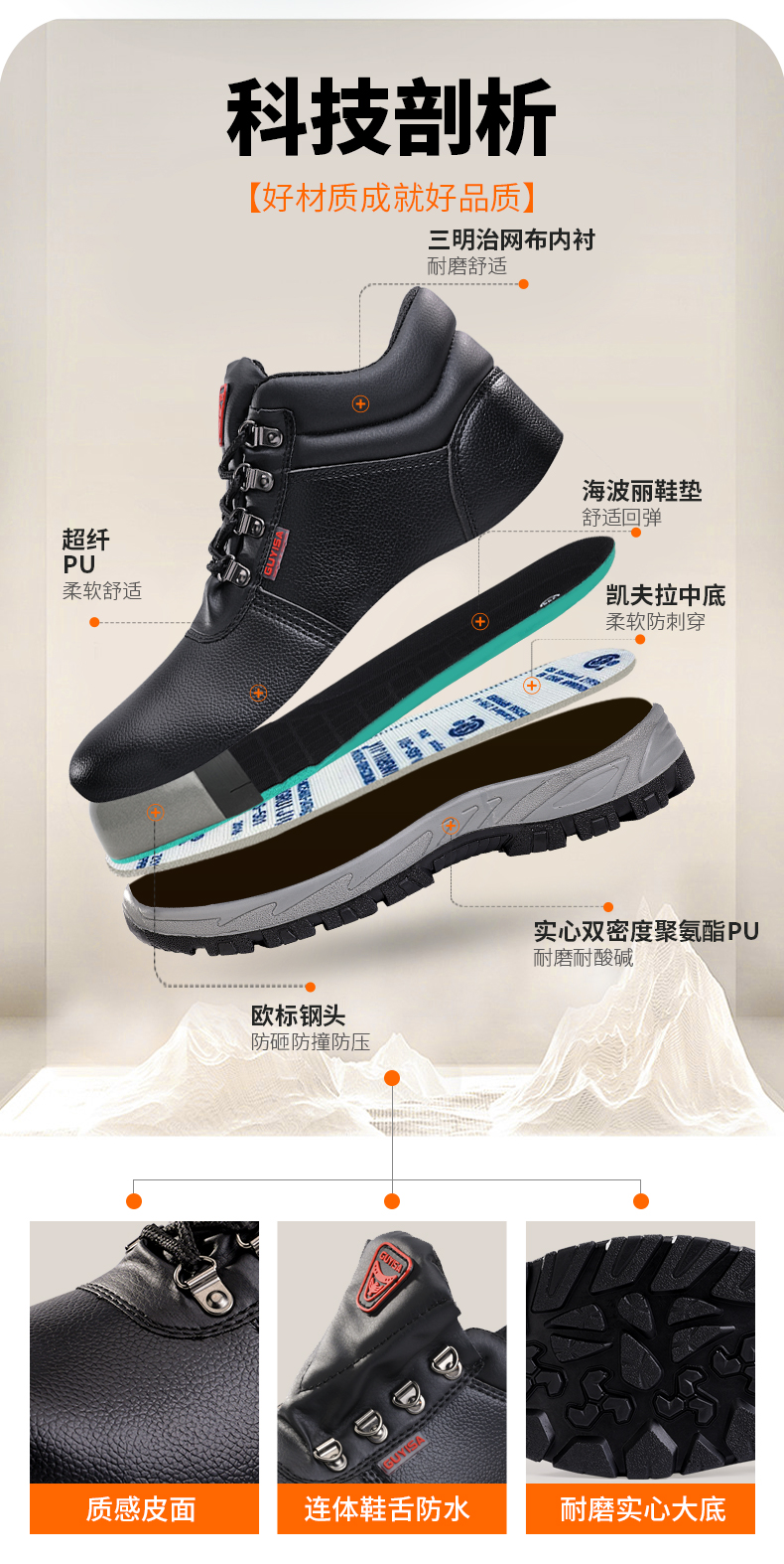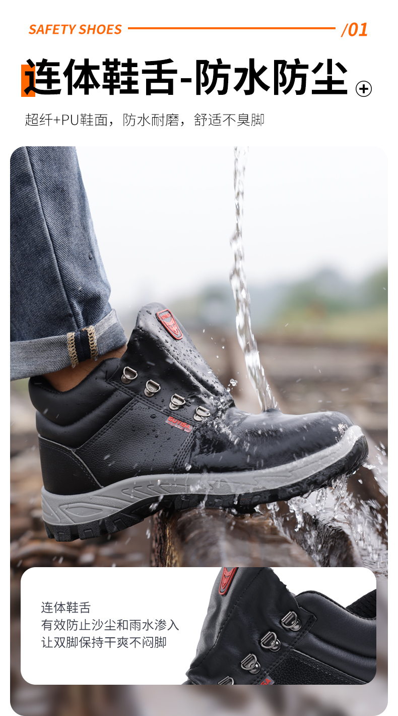 四季款新品防水劳保鞋男安全工作鞋防砸钢包头防刺穿耐磨防护功能鞋