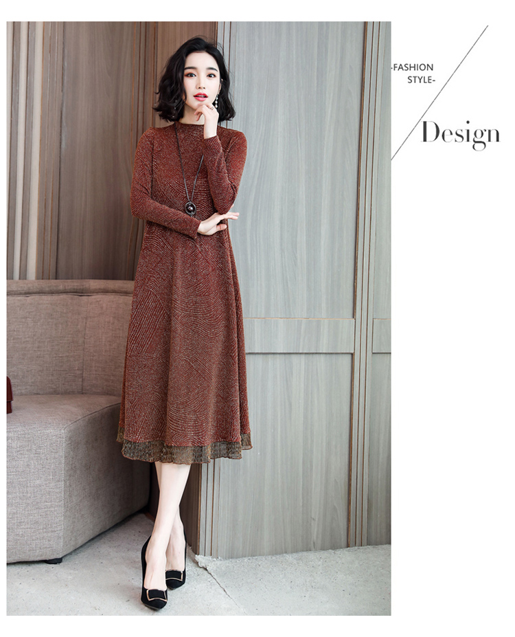 XM-61327新品女装纯色时尚毛衣裙 圆领气质连衣打底裙TZW