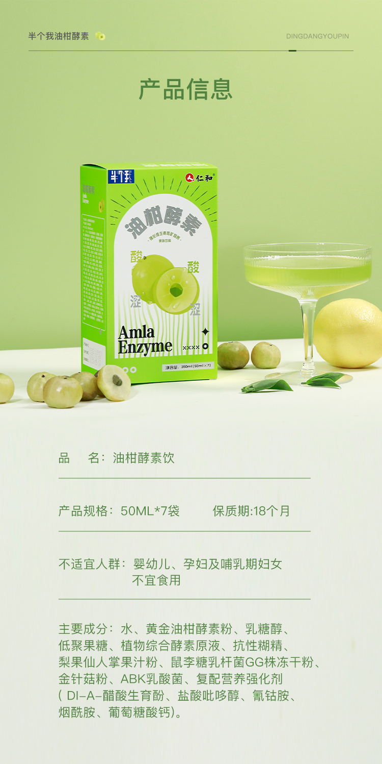 【边喝边瘦!】仁和黄金油柑酵素50ml*7袋/盒油柑发酵刮油神器100多种植物酵素酸爽好味道去油神器躺着瘦