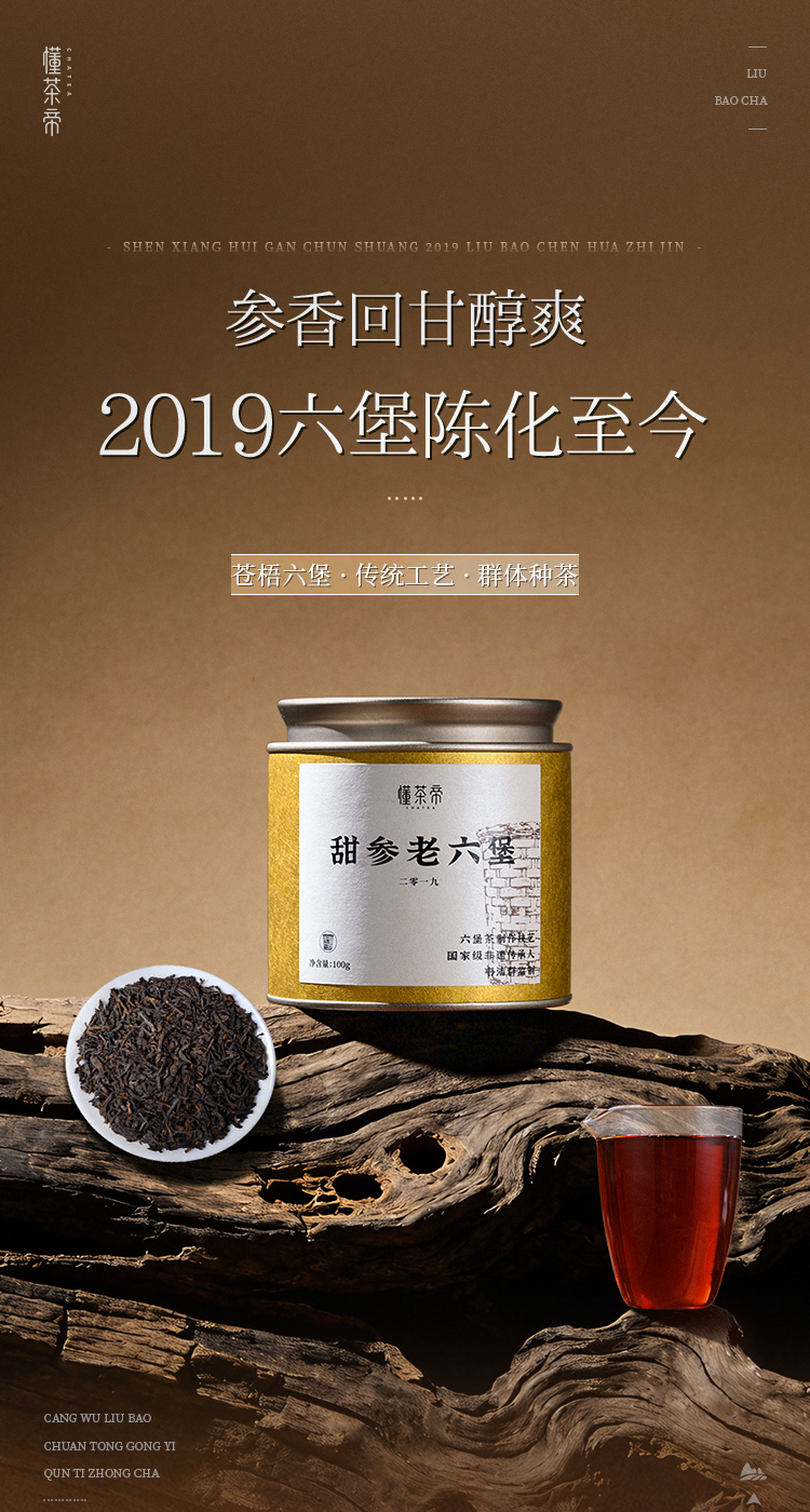 懂茶帝老六堡茶非遗老师韦洁群传统六堡茶工艺2019年甜参100g