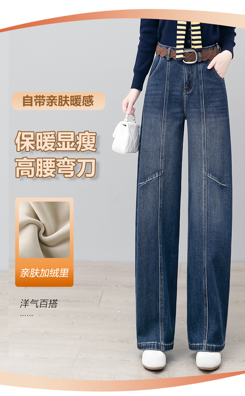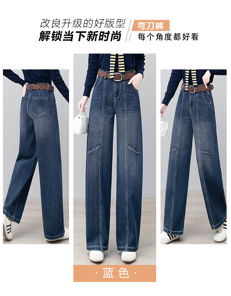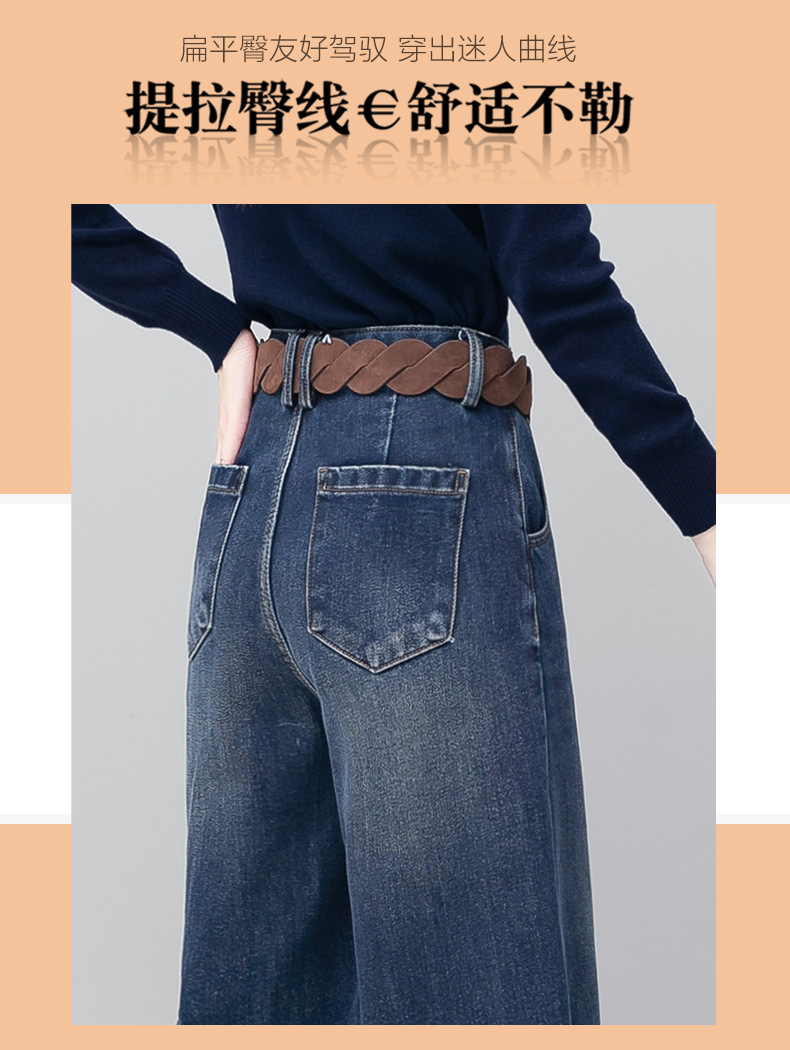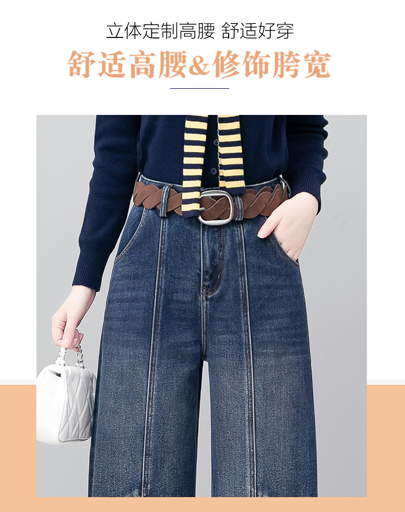 YM 2826高腰弯刀裤加厚保暖牛仔裤宽松镰刀裤显瘦香蕉裤 商品图4