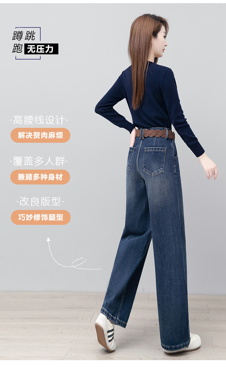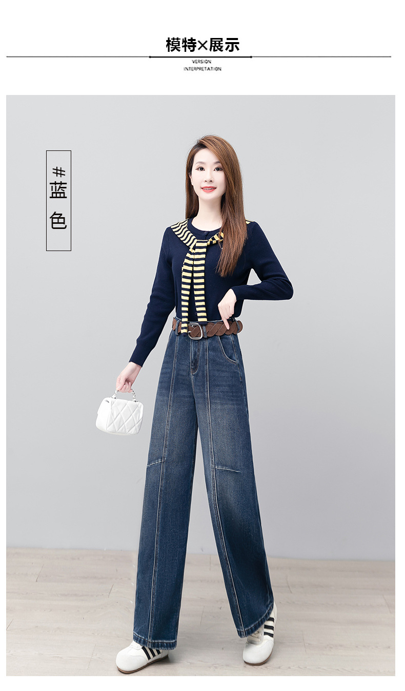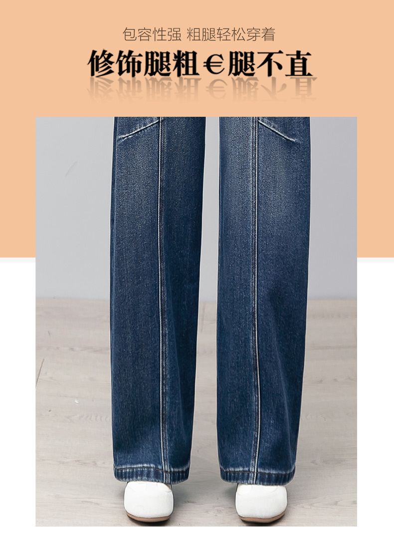 YM 2826高腰弯刀裤加厚保暖牛仔裤宽松镰刀裤显瘦香蕉裤 商品图4