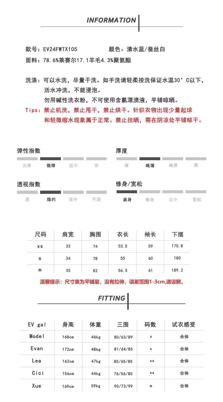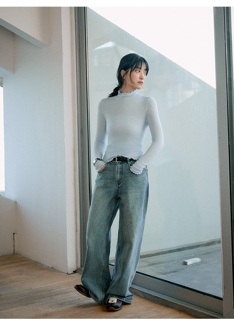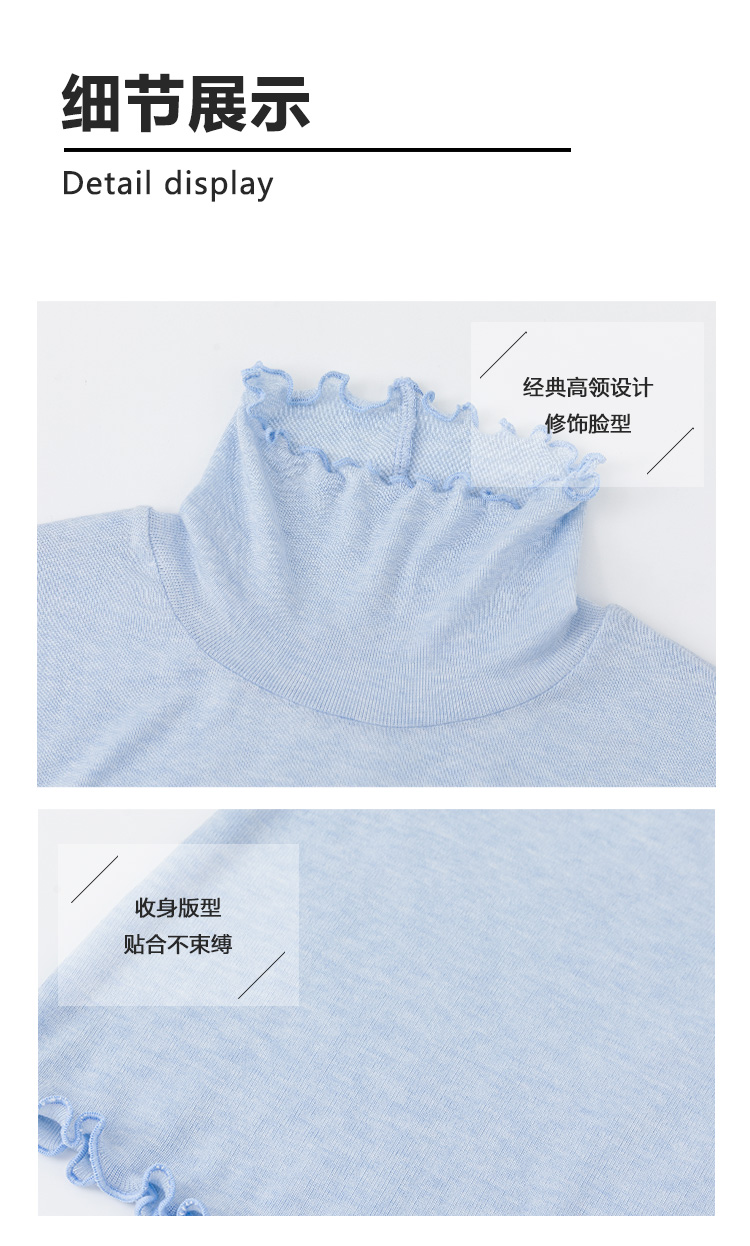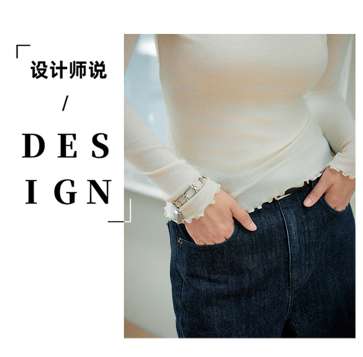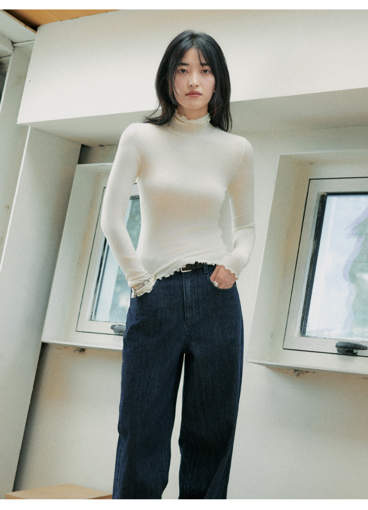 Even Vintage|天丝羊毛混纺 木耳边堆堆领修身微透高领针织打底衫