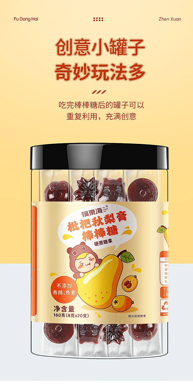 福东海 秋梨膏棒棒糖160g【20支】枇杷棒棒糖糖 添加百合甘草杏仁 糖果儿童零食