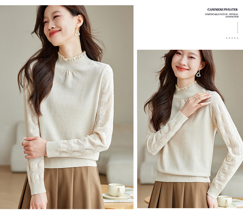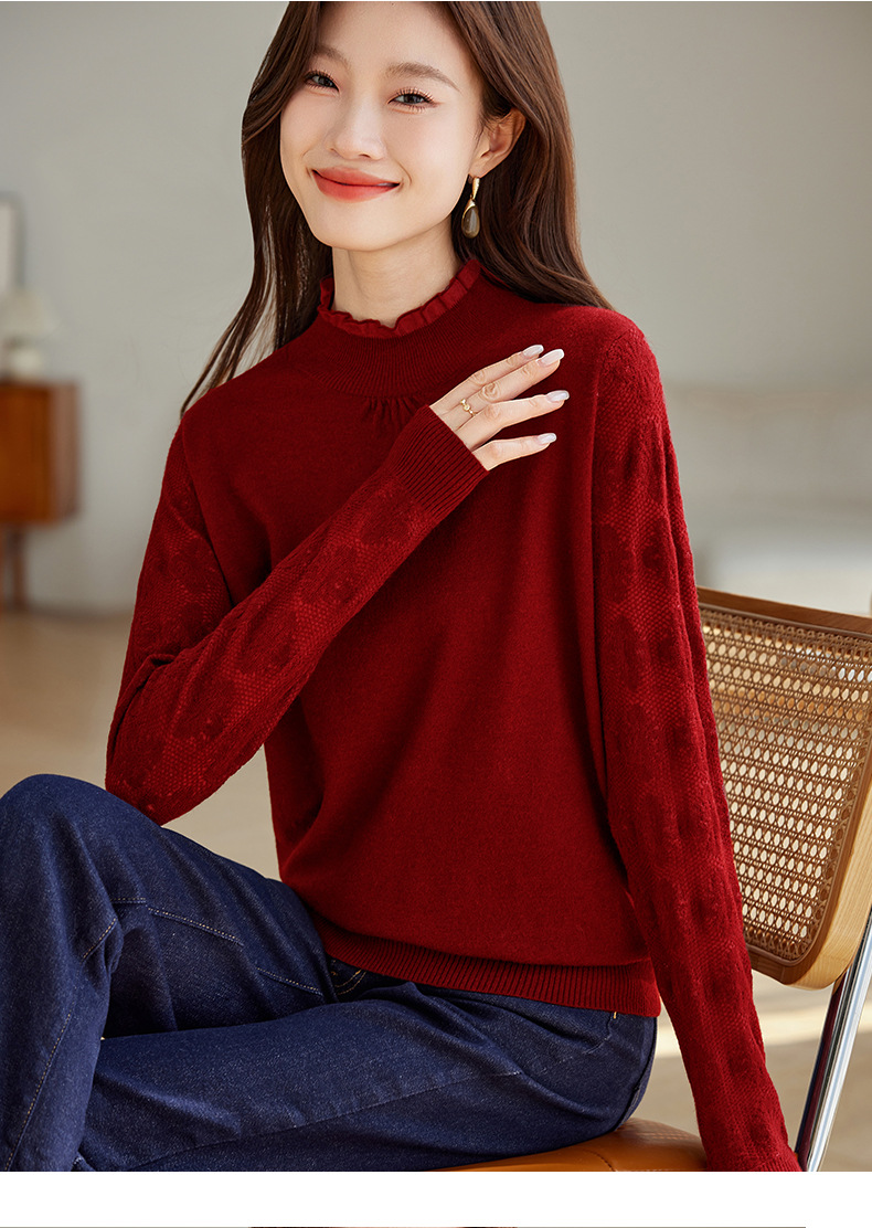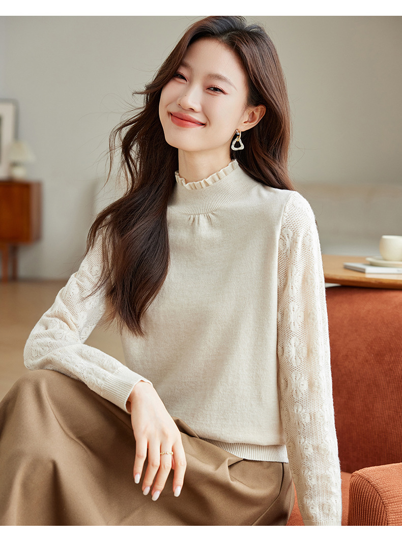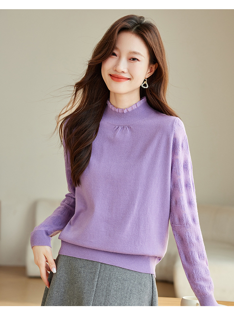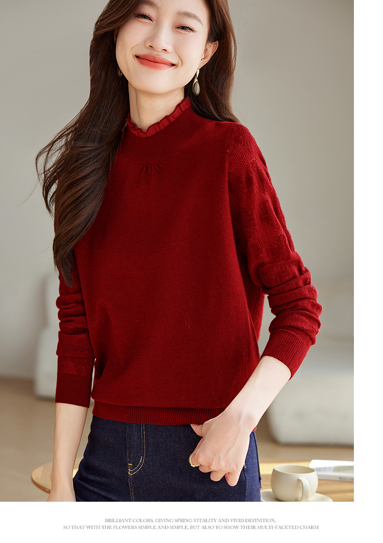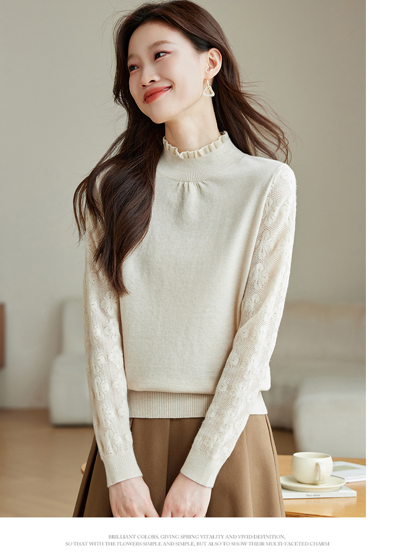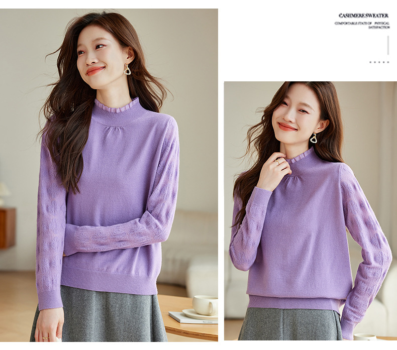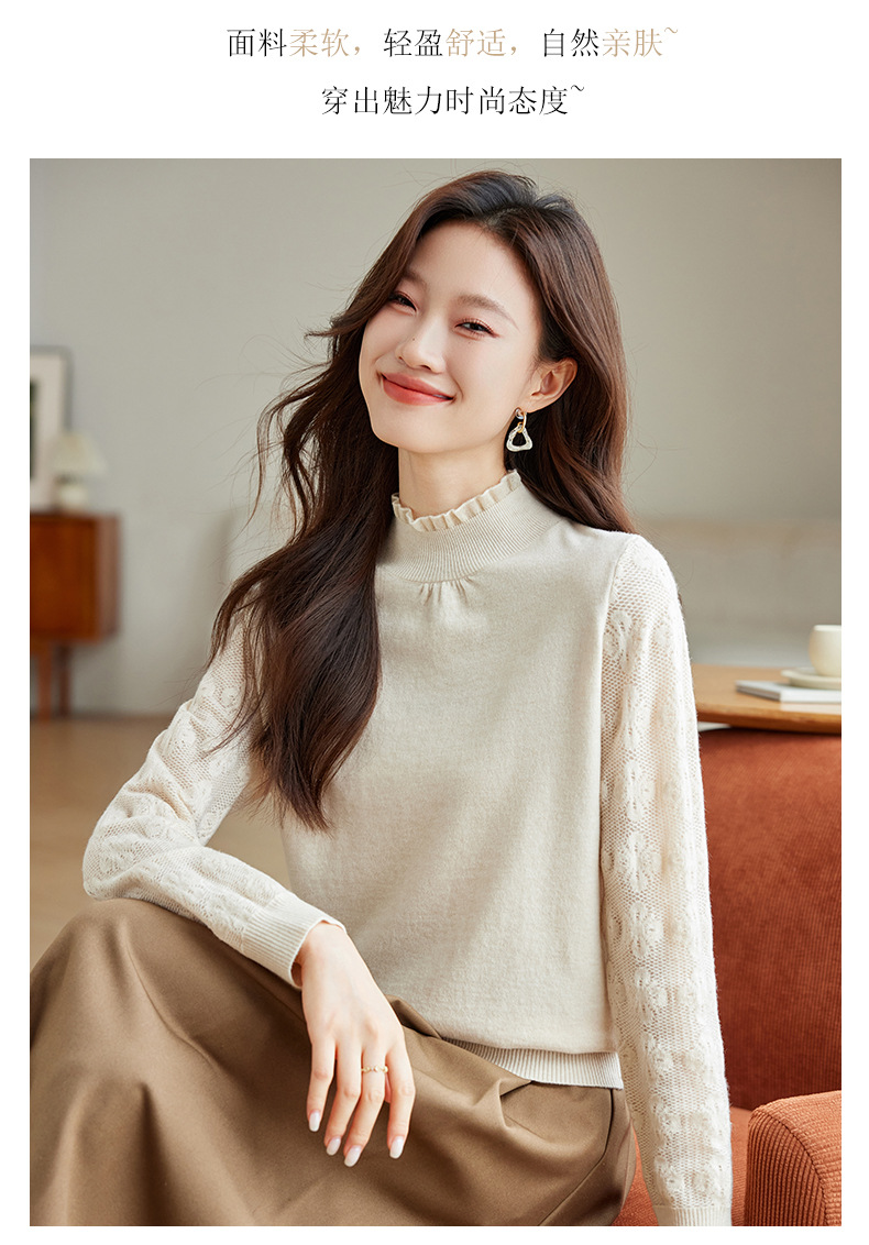 CC-J891半高领打底衫女2024新款春秋冬内搭木耳边修身薄款毛衣针织上衣