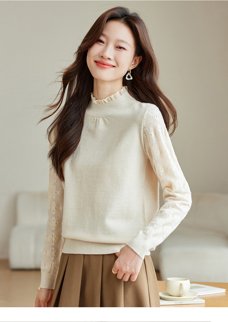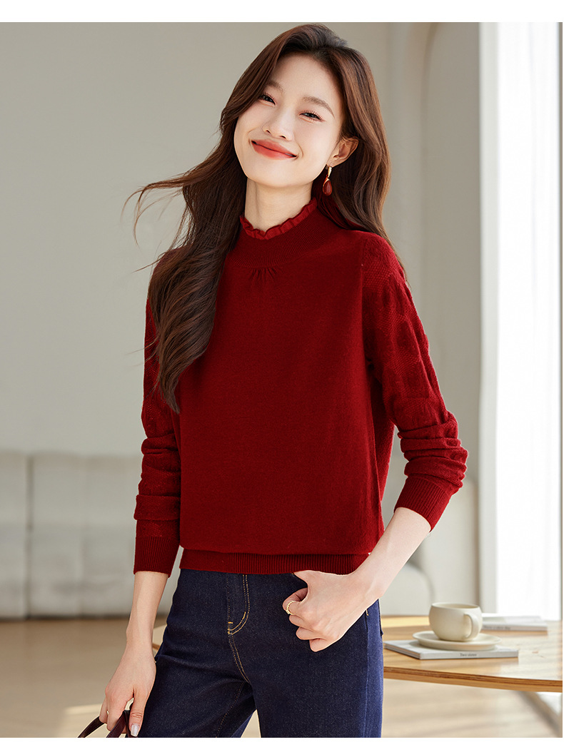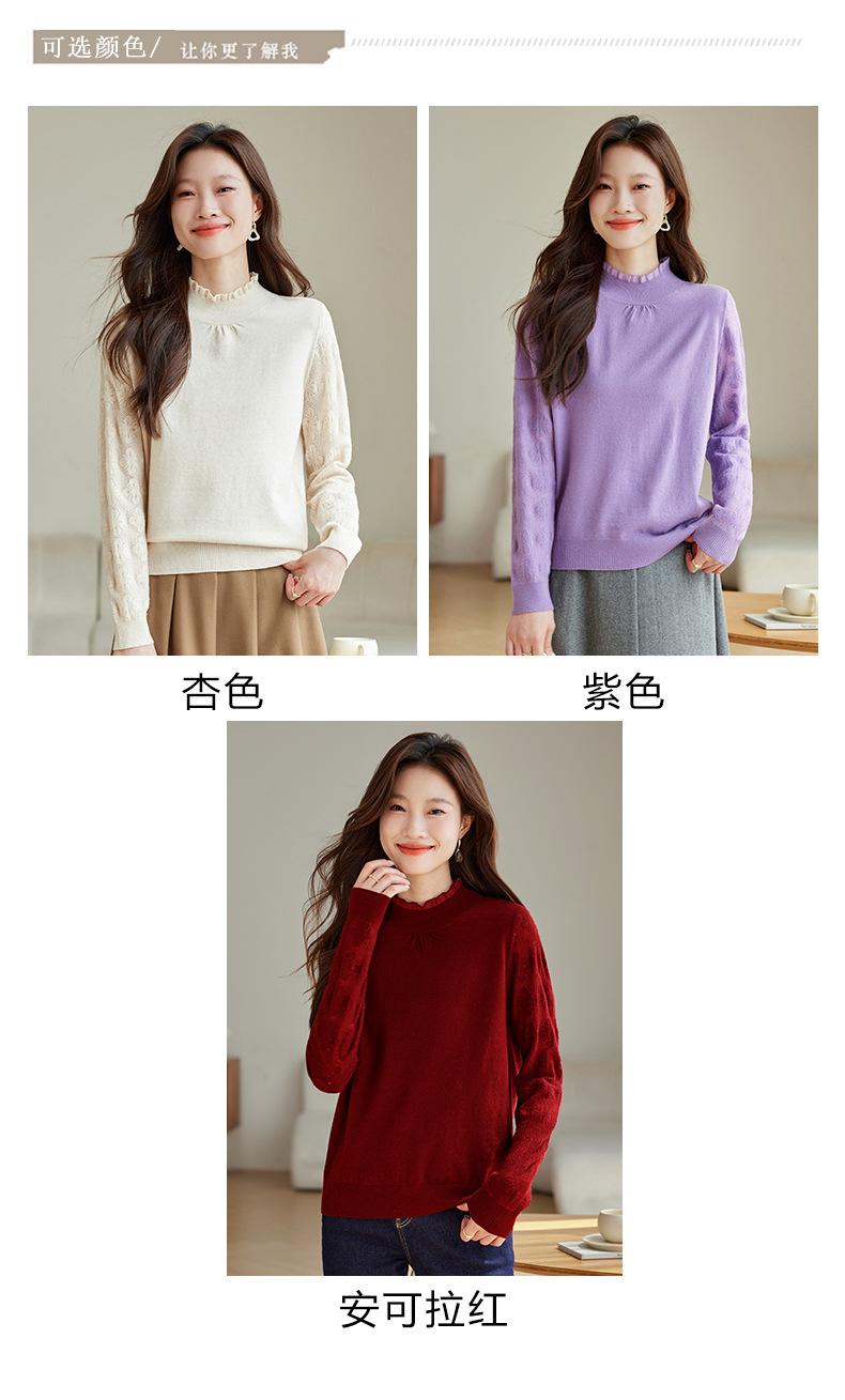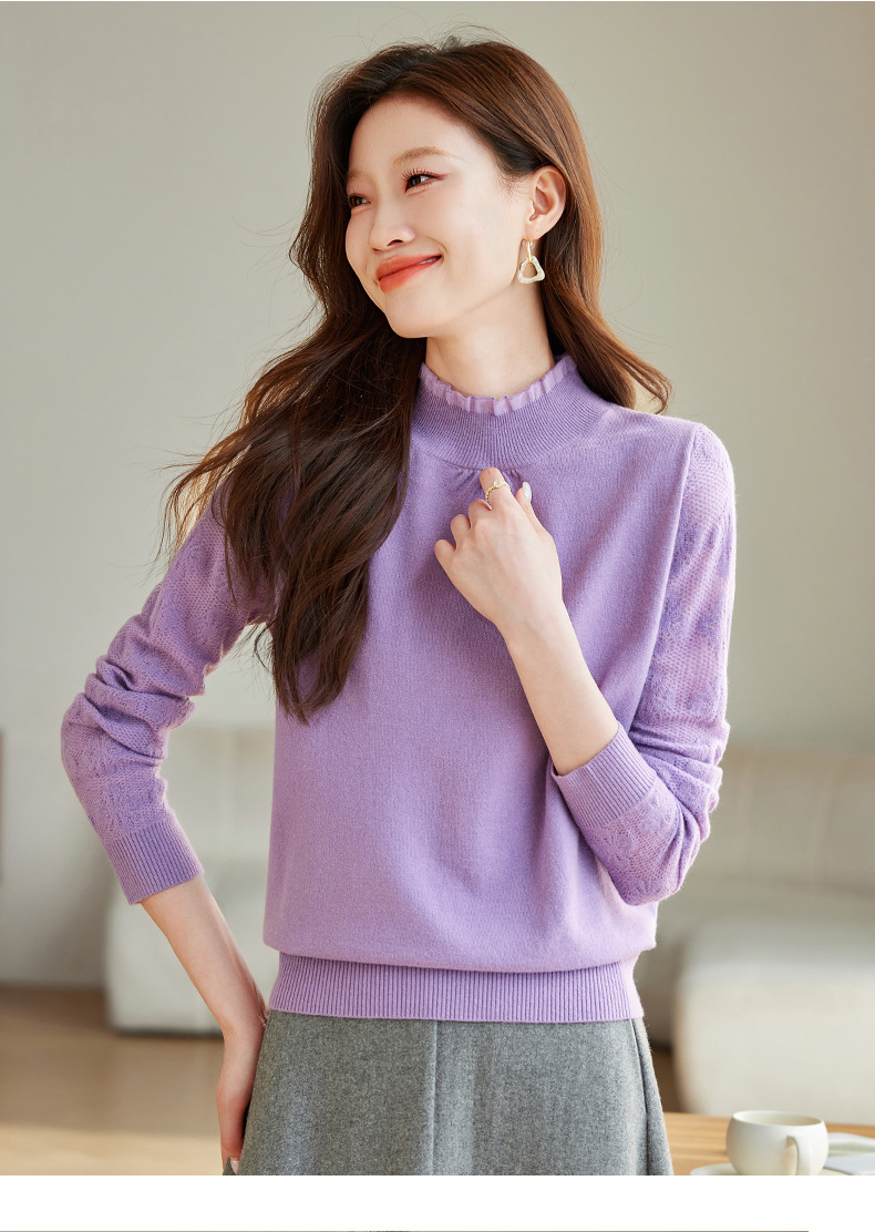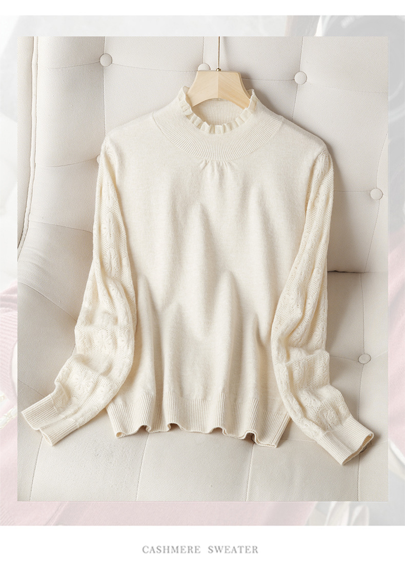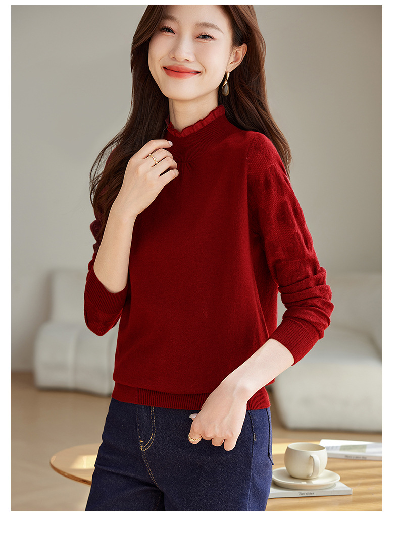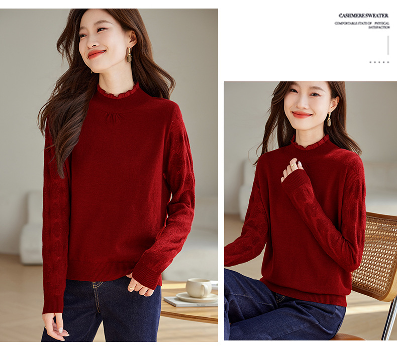 CC-J891半高领打底衫女2024新款春秋冬内搭木耳边修身薄款毛衣针织上衣