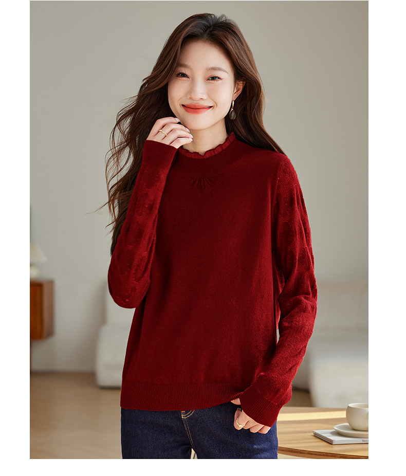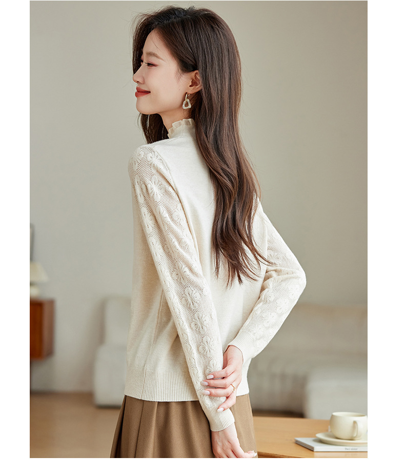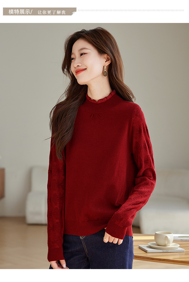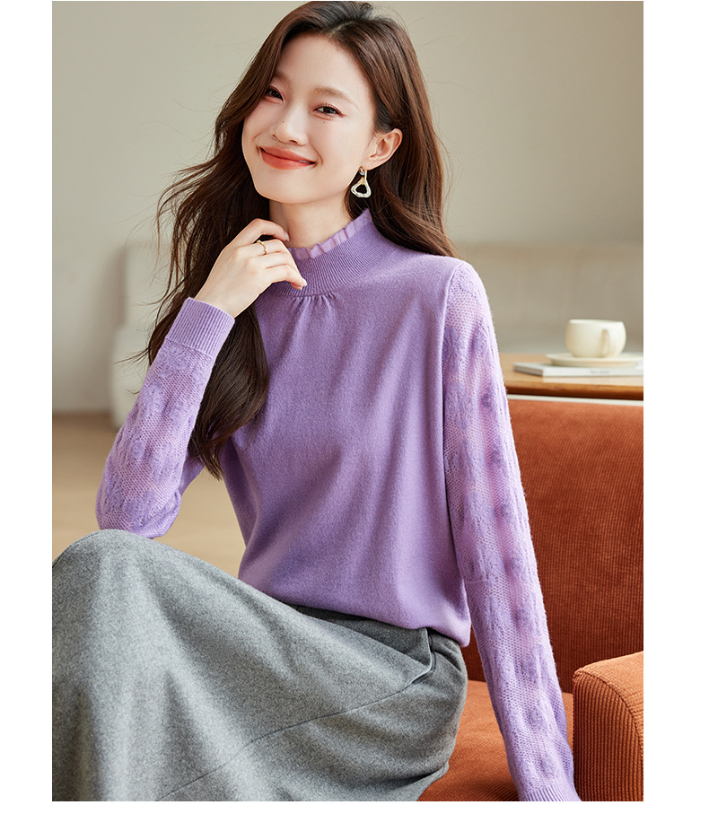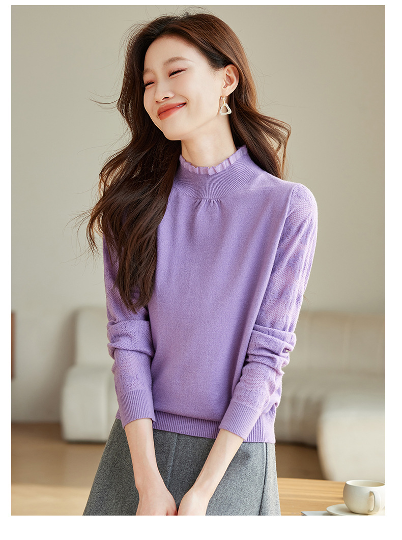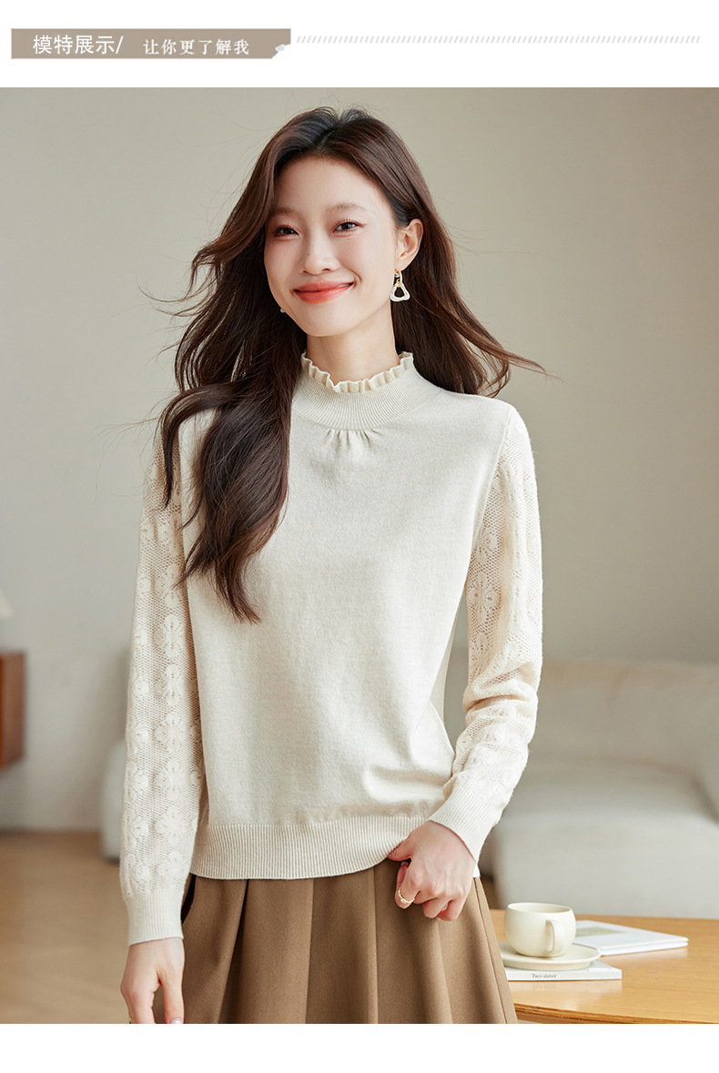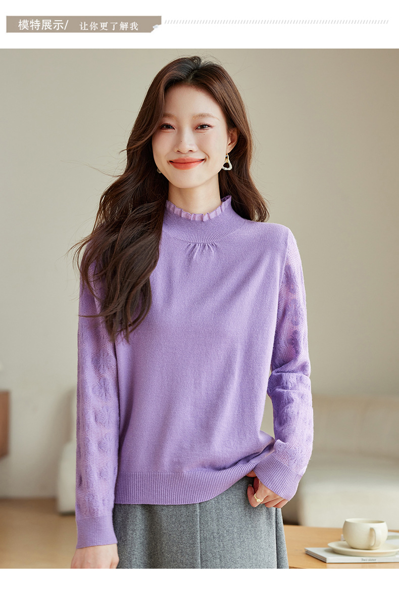 CC-J891半高领打底衫女2024新款春秋冬内搭木耳边修身薄款毛衣针织上衣