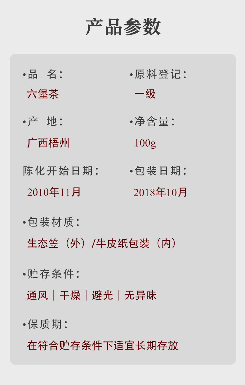 湖畔居广西特产2010年正宗六堡茶正品一级原料十五年陈经典口粮茶100g