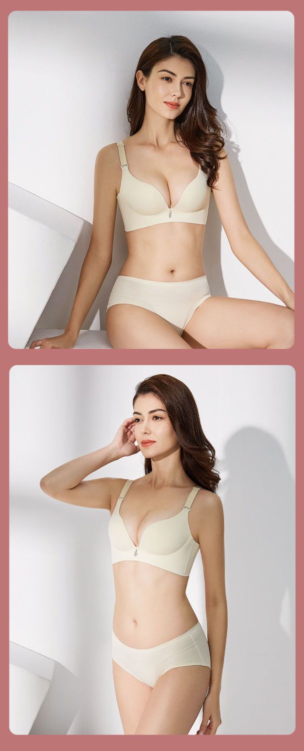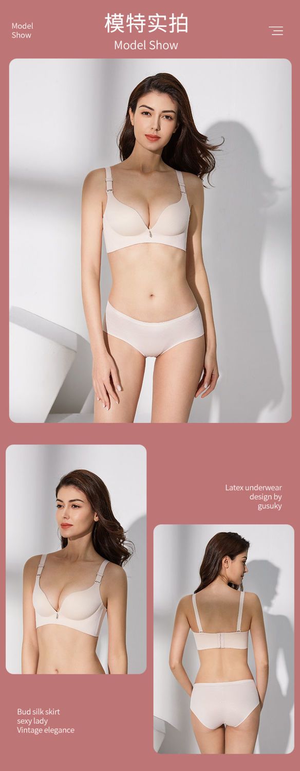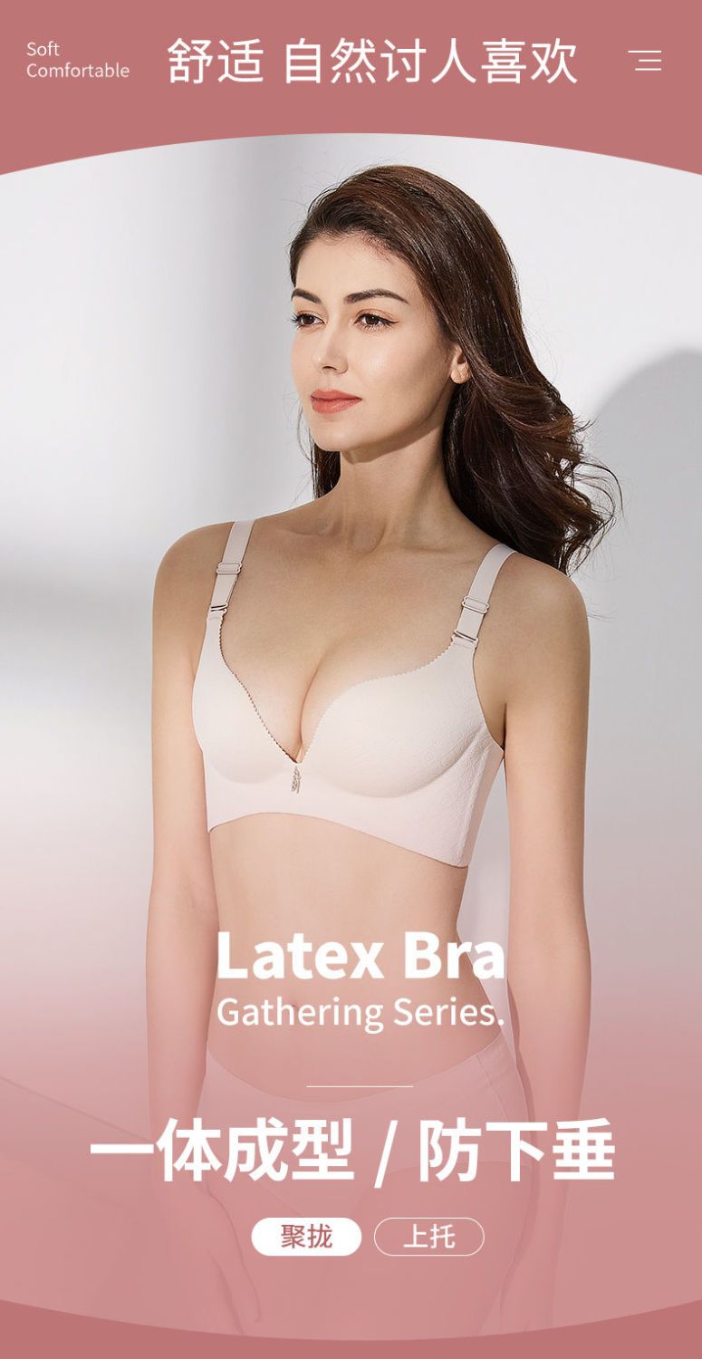 DD-多拉美一片式文胸一体式乳胶内衣女无痕无钢圈厚性感文胸罩套装
