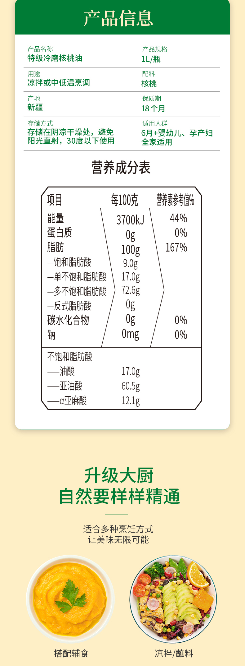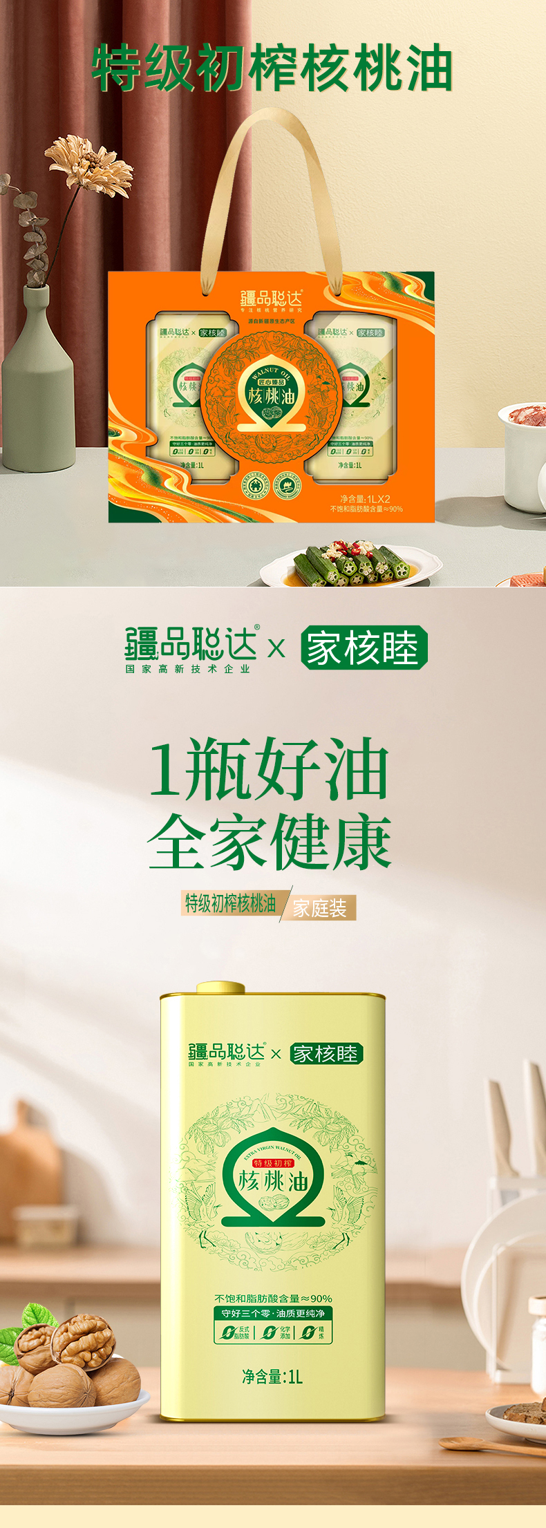疆品聪达·特级初榨核桃油礼盒1升*2 守好三个零·油质更纯净