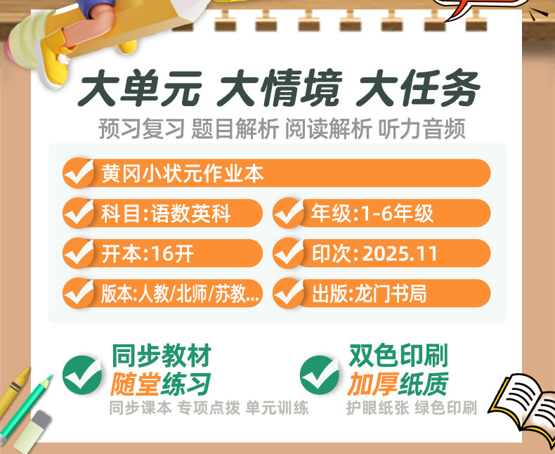 2026春黄冈小状元作业本、达标卷小学语文数学英语科学123456年级下册任选小学同步作业本单元试卷