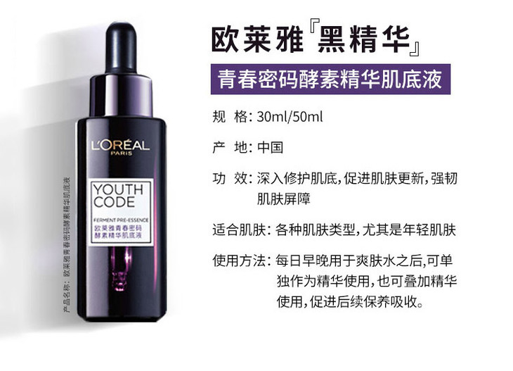 欧莱雅黑精华酵素面部精华液小黑瓶75ml
