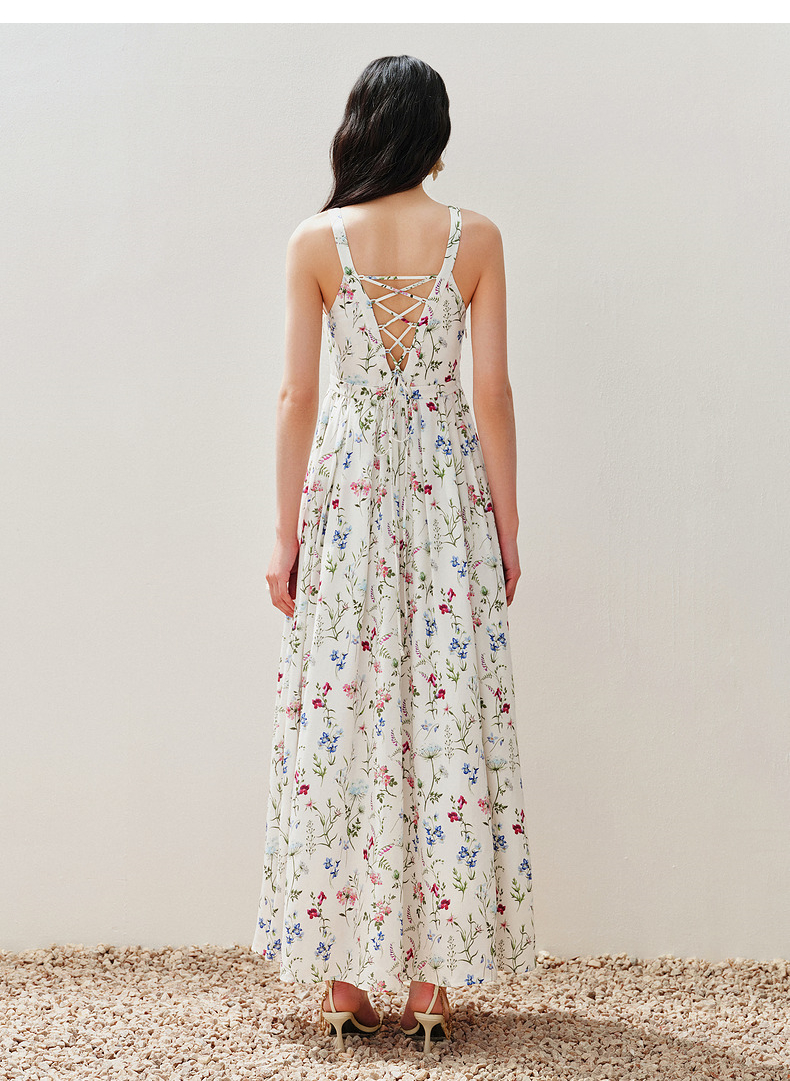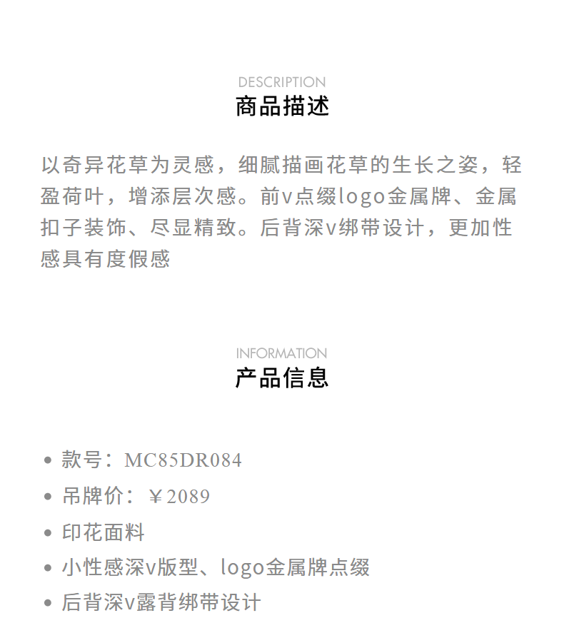 玛克门店发货:MAXRIENY城市度假风绑带深v连衣裙露背裙子(货号:MC85DR084)