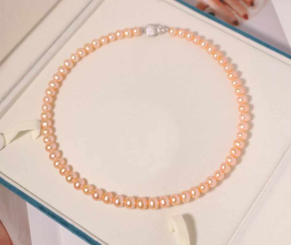 甄珠贝 国风 福禄款天然日出色项链 无核淡水7mm 近圆无暇,ji强光 很显皮肤白