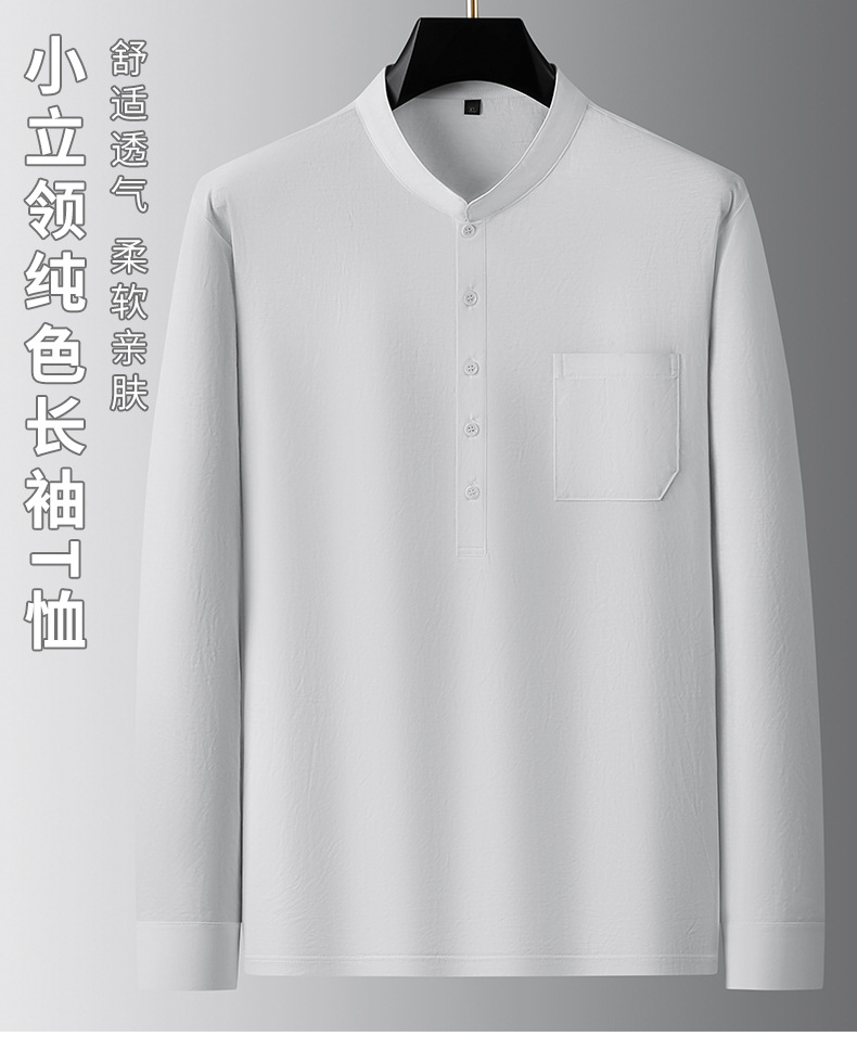 【牛津麻料】【DDA】大依优型大码长袖衫休闲立领棉质衬衣服男士加肥加大码简约胖子春款
