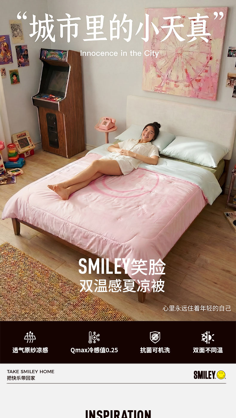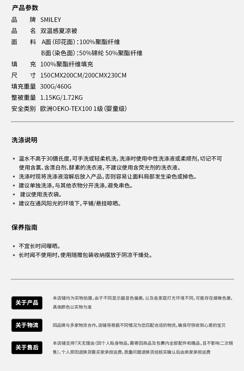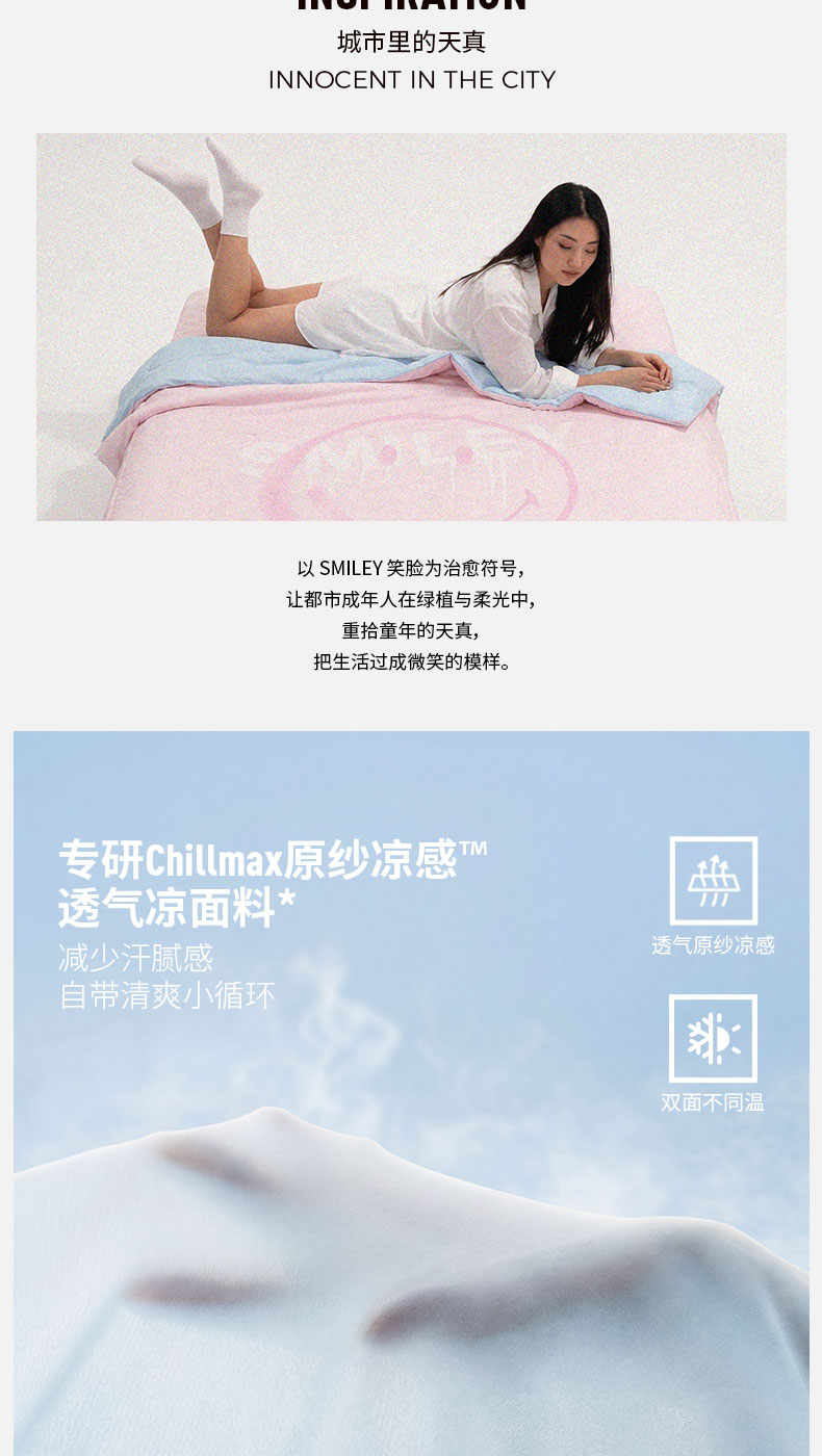 SMILEY 冰蓝冰粉笑脸单面凉冷感被原纱凉感【本商品不支持用券】