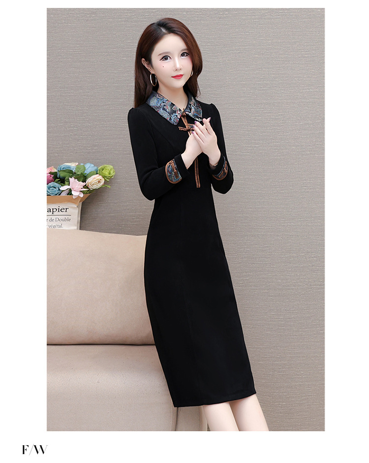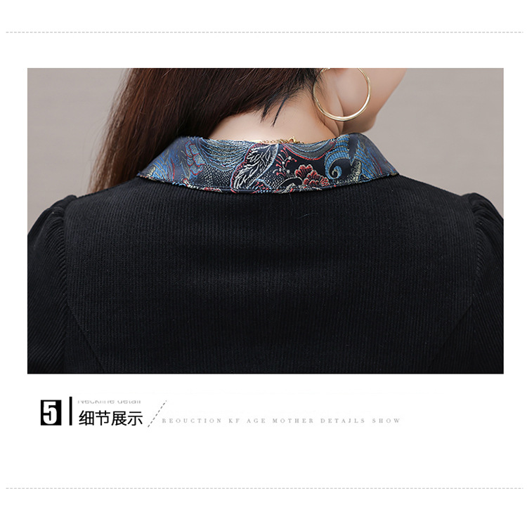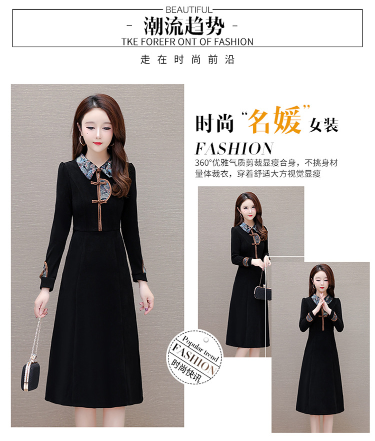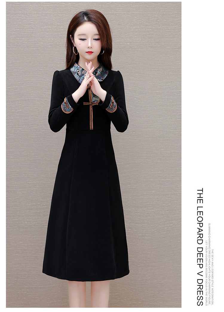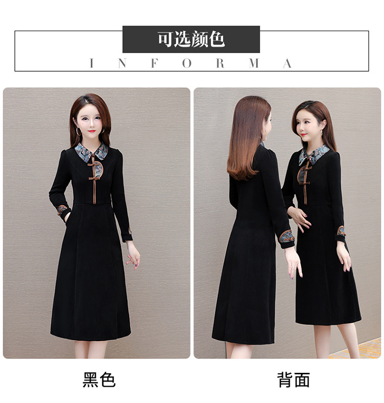 灯芯绒长袖裙,春秋季新款时尚女装长款A字裙复古盘扣连衣裙QYM-XY-23D901-Y