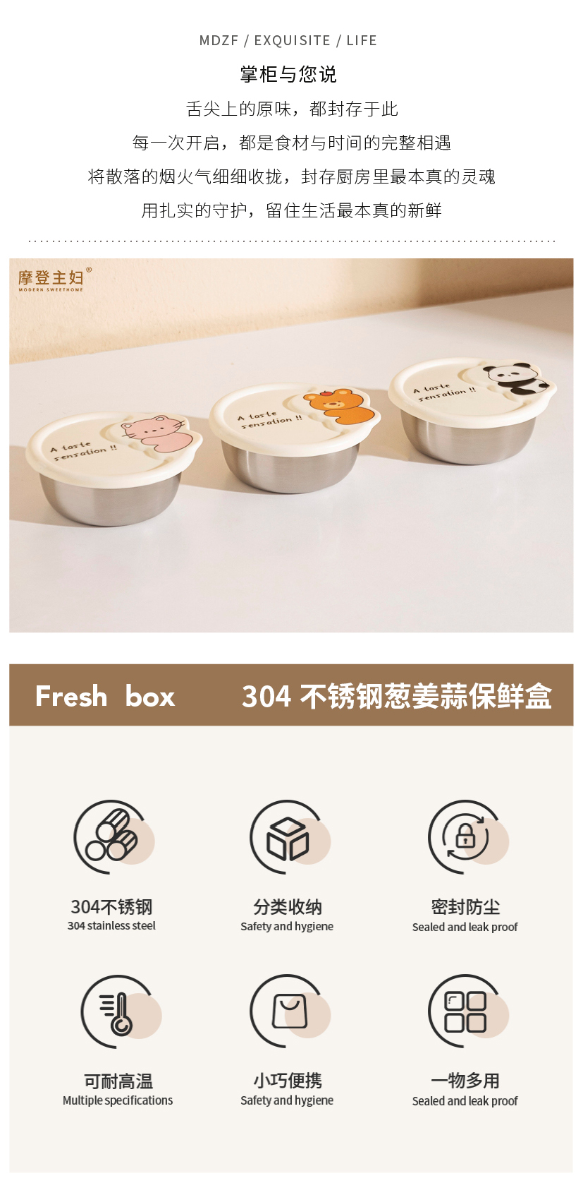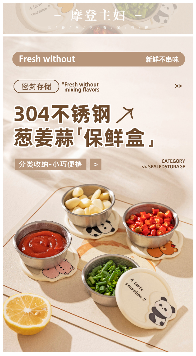 摩登主妇304不锈钢调料罐厨房家用迷你香料葱姜蒜分装收纳保鲜盒